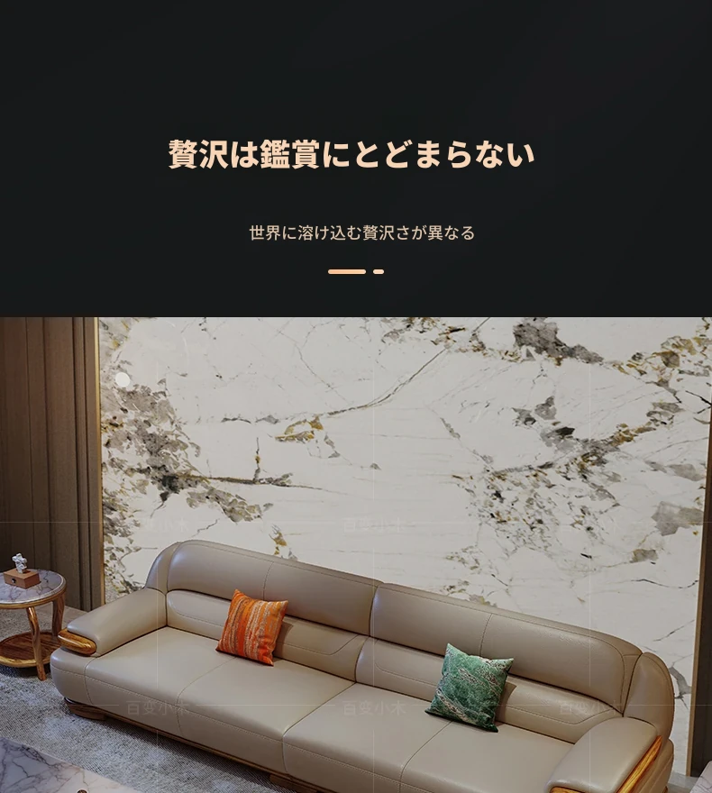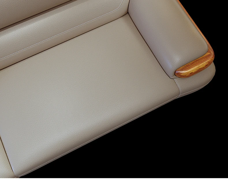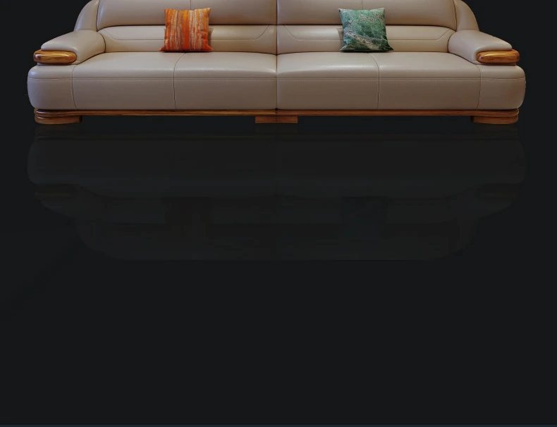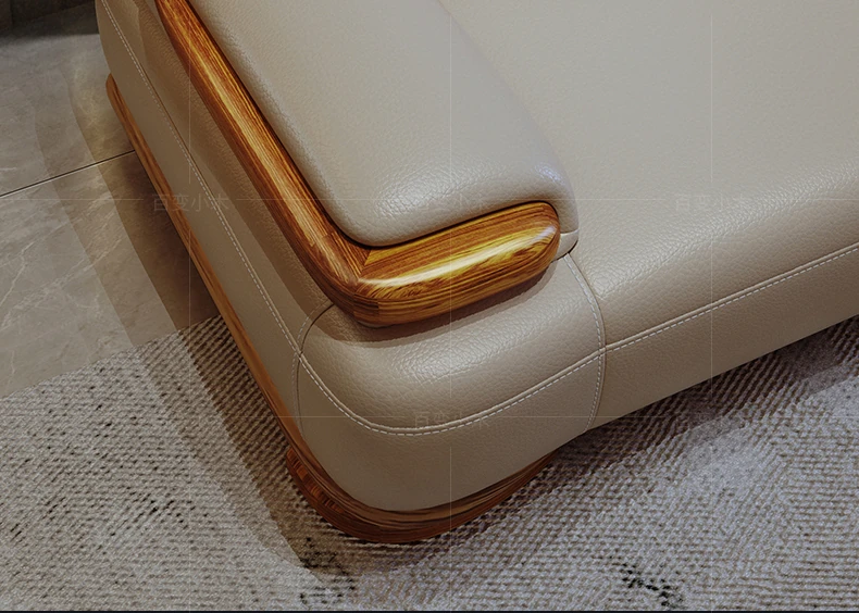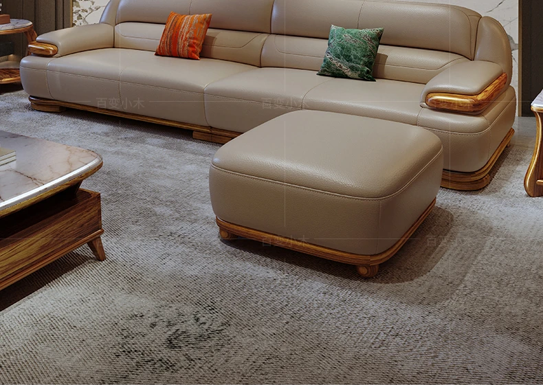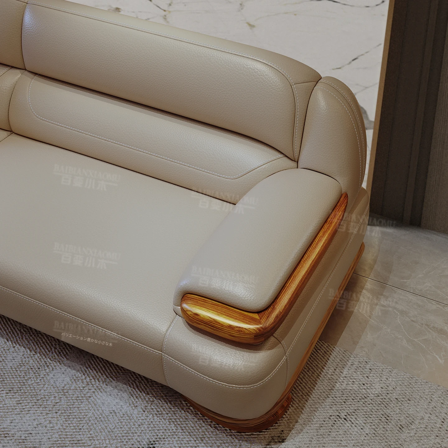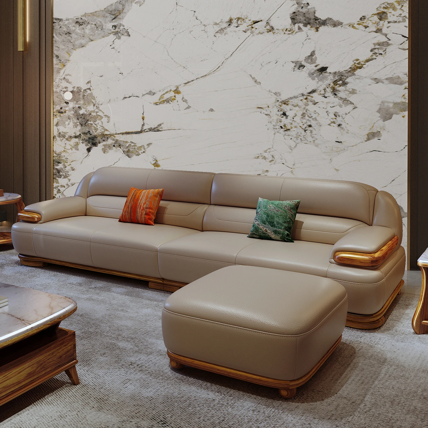 モダンミニマリストのウ木無垢材と本革製ソファー - ヴィラリビングにぴったりなデザイナー創造的レザーソファ、洗練された直線的デザインでスタイリッシュな空間を演出!