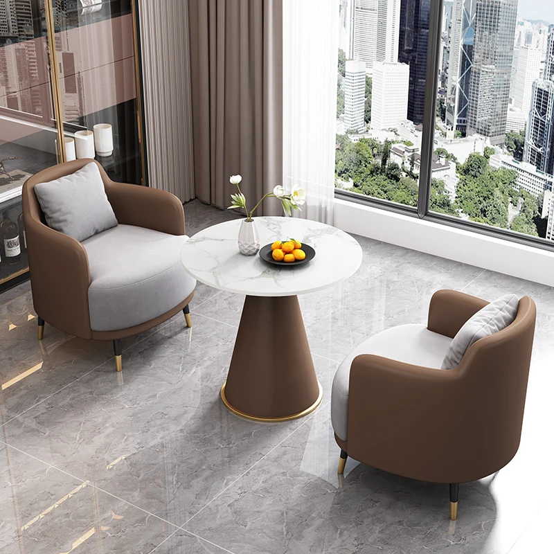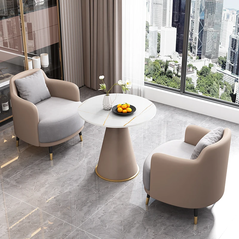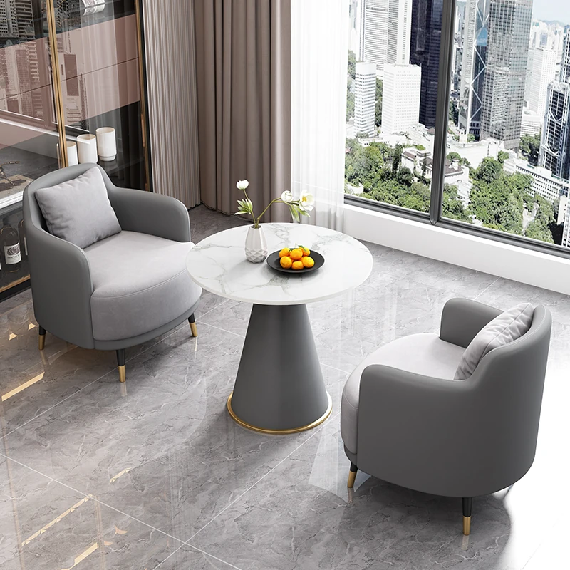 外浅灰皮内浅灰のファブリック2+1 60直径のラウンドテーブル