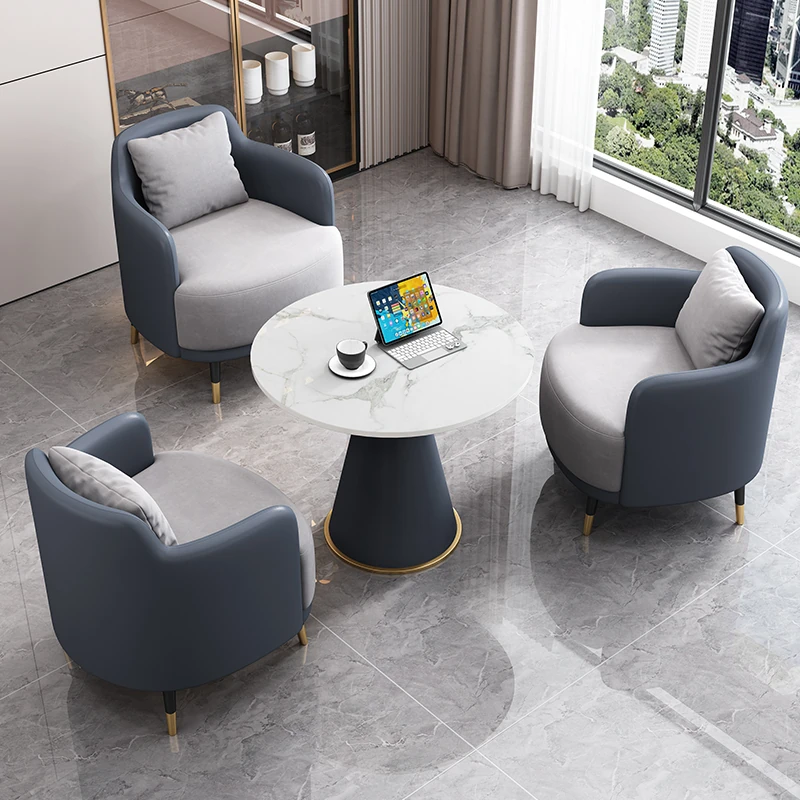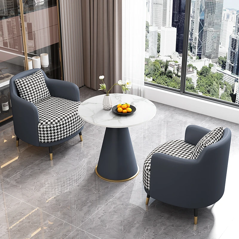 外深青皮内浅灰のファブリック2+1 60直径のラウンドテーブル