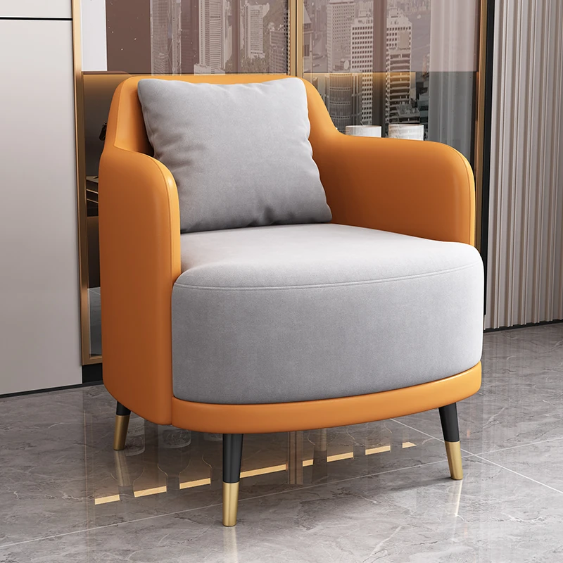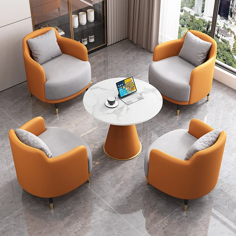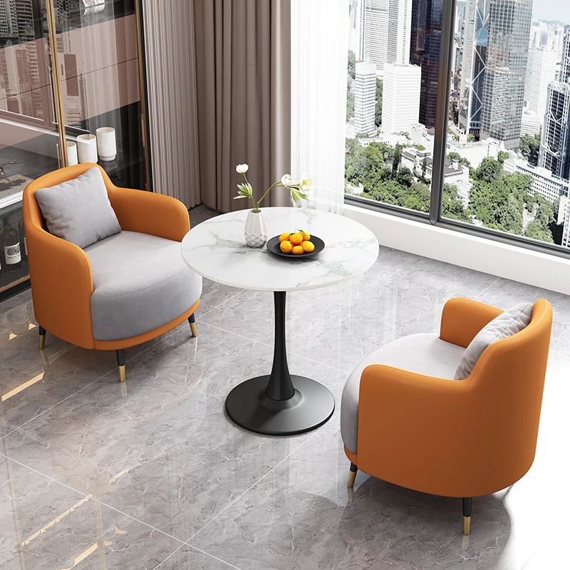 外オレンジ皮内浅灰のファブリック2+1 60直径のラウンドテーブル