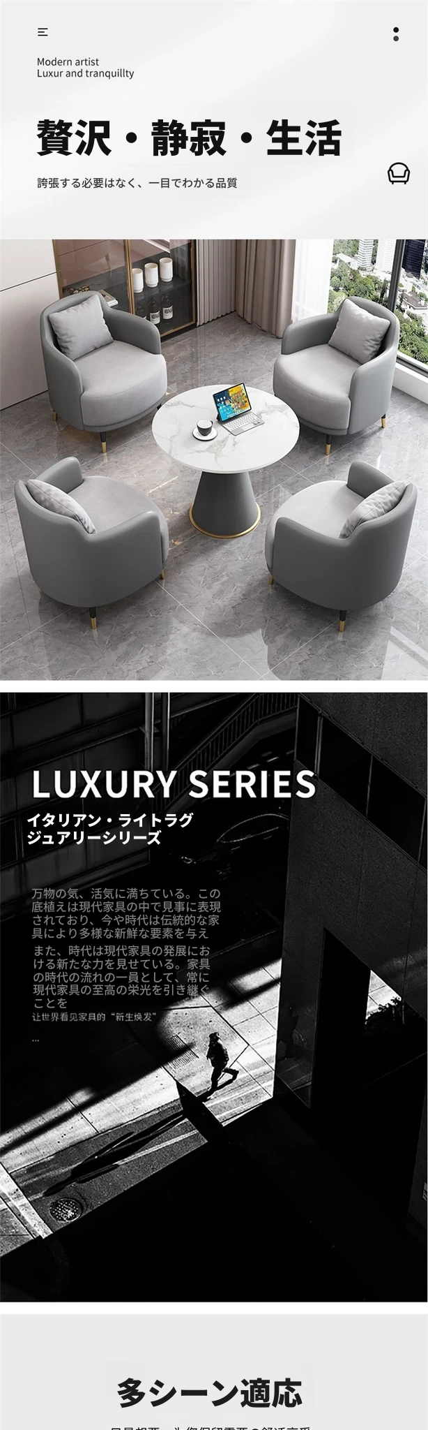外黒皮内浅灰のファブリック2+1 60直径のラウンドテーブル