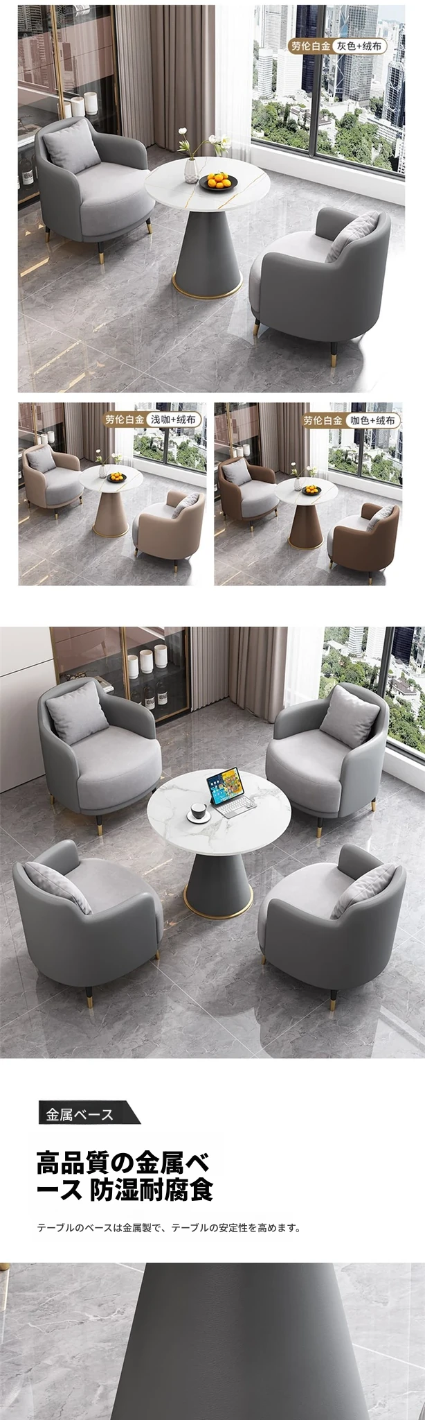 外浅灰皮内灰のファブリック3+1 60直径のラウンドテーブル