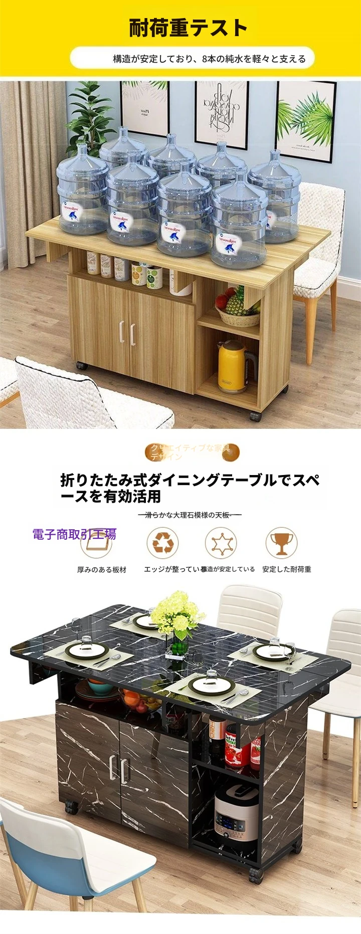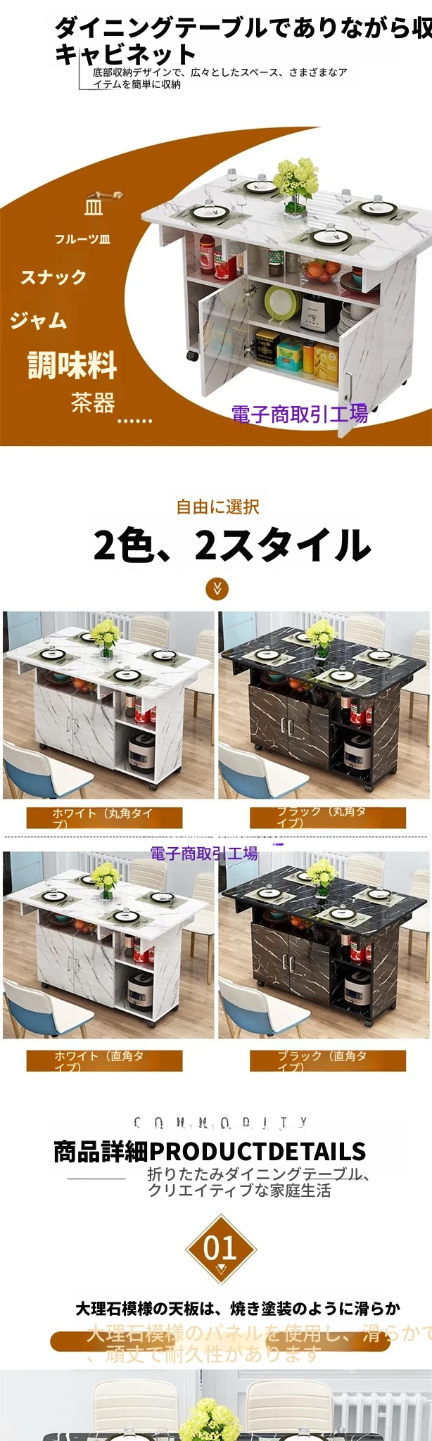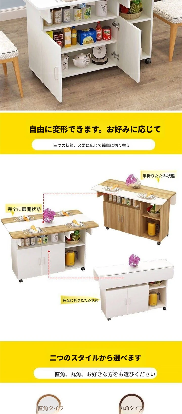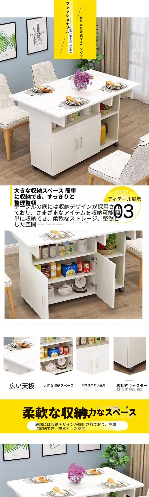 モダンな収納キャビネット付き折りたたみダイニングテーブル - 丸型・長方形デザイン、引き出し付き、キャスター付きで便利な家庭用テーブルセット!食事を豊かにするスタイリッシュなアイテムです。