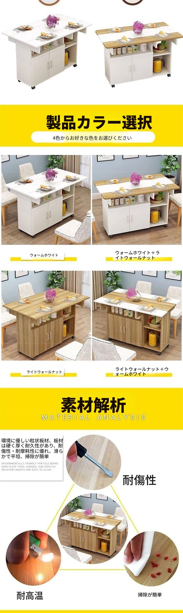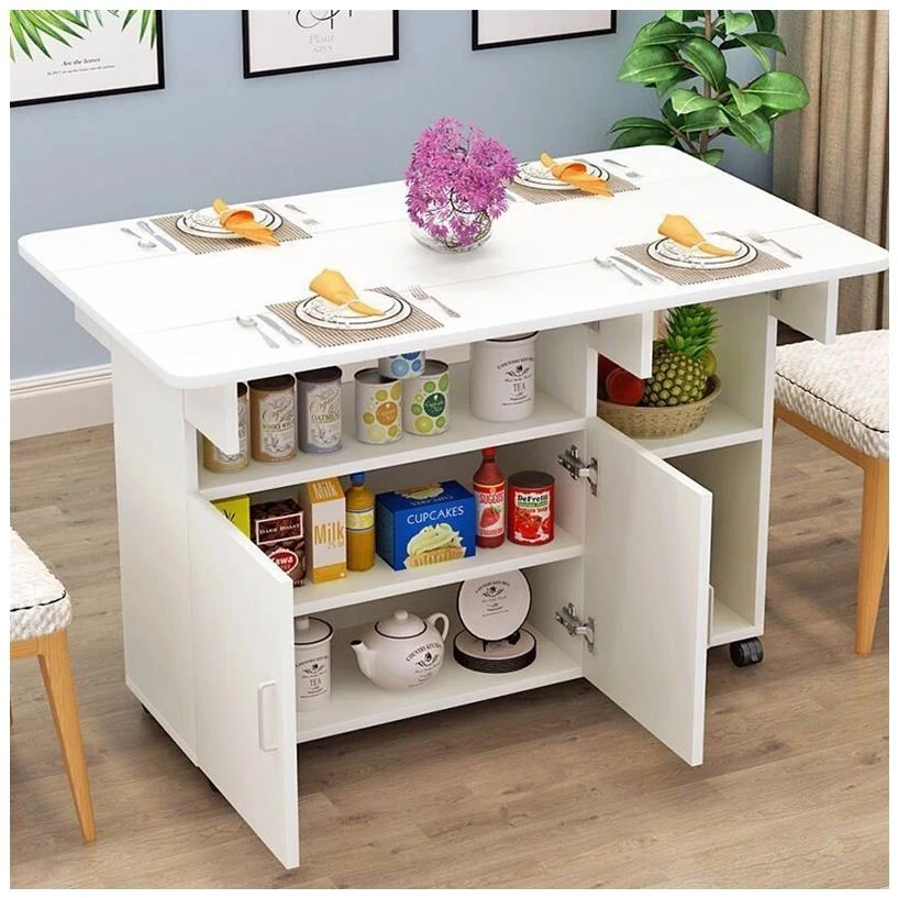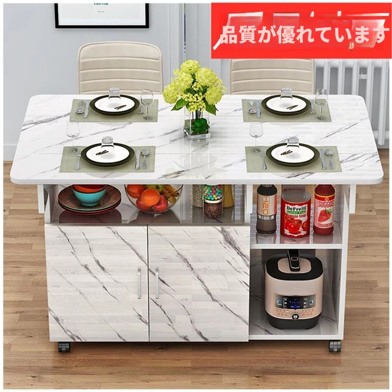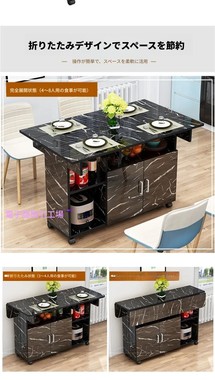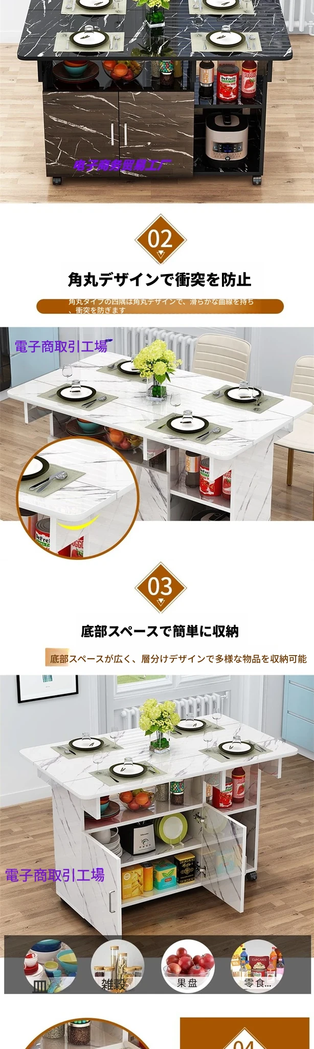 モダンな収納キャビネット付き折りたたみダイニングテーブル - 丸型・長方形デザイン、引き出し付き、キャスター付きで便利な家庭用テーブルセット!食事を豊かにするスタイリッシュなアイテムです。