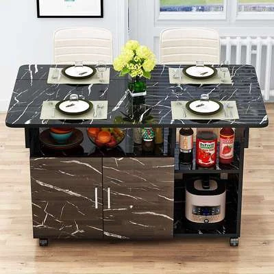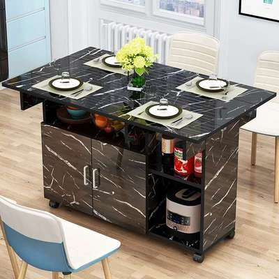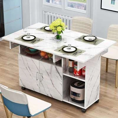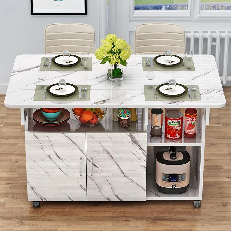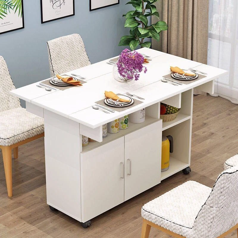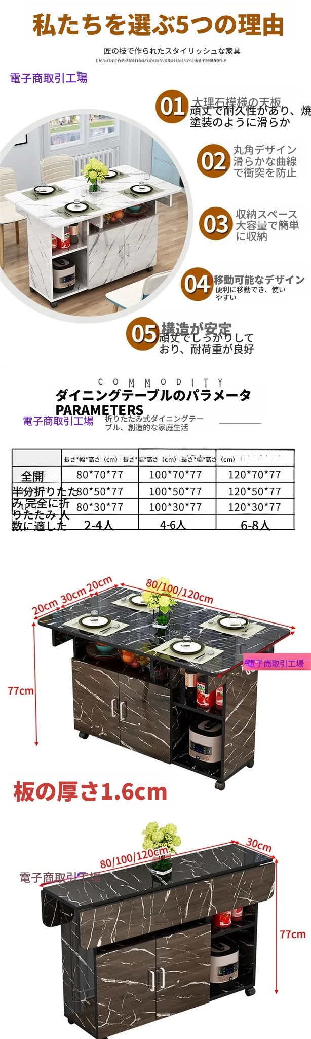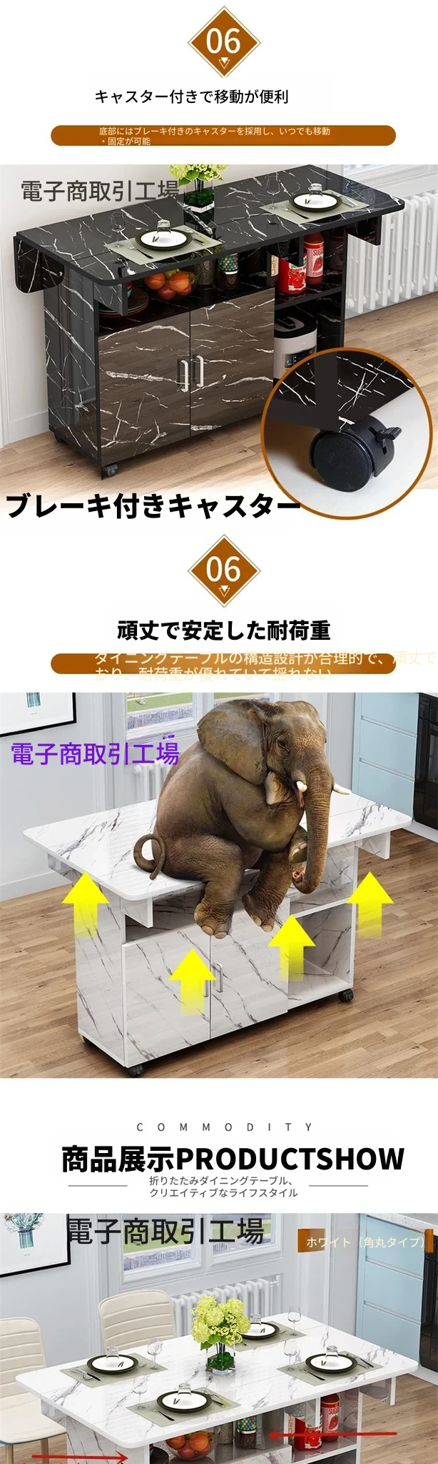 モダンな収納キャビネット付き折りたたみダイニングテーブル - 丸型・長方形デザイン、引き出し付き、キャスター付きで便利な家庭用テーブルセット!食事を豊かにするスタイリッシュなアイテムです。