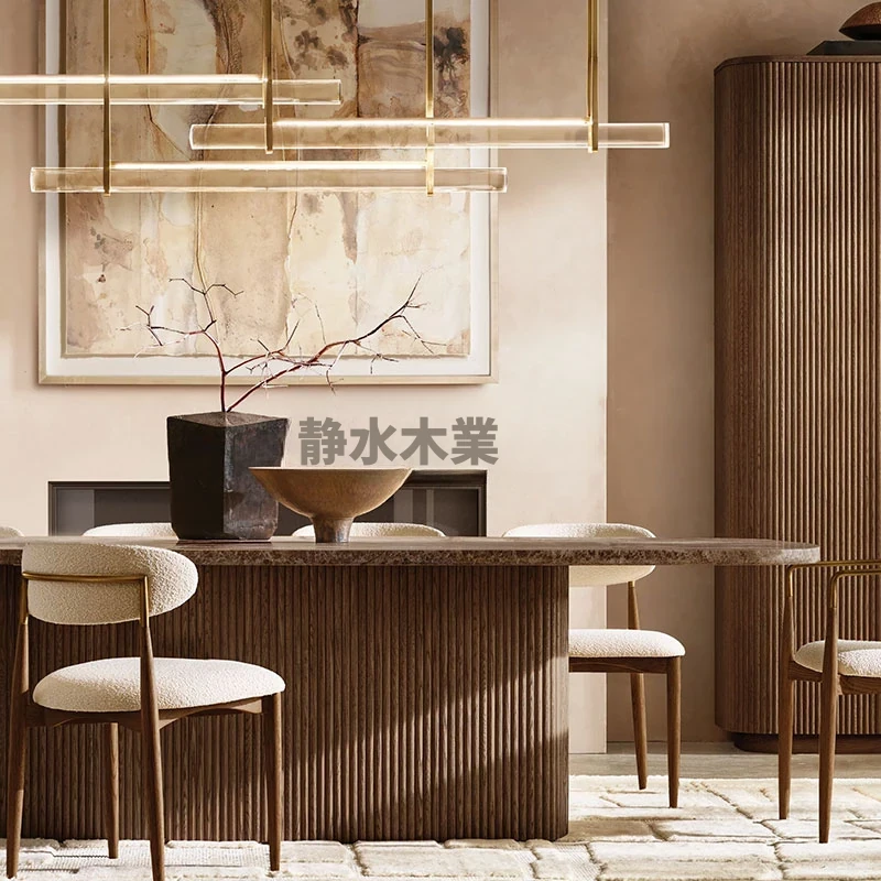 ムーハン道アメリカンカントリースタイル高級ライトラグジュアリー大理石長方形デザイナーダイニングテーブルヴィラ用ロングテーブル - 洗練されたデザインで、特別な食事のひとときを演出します!