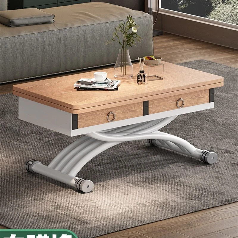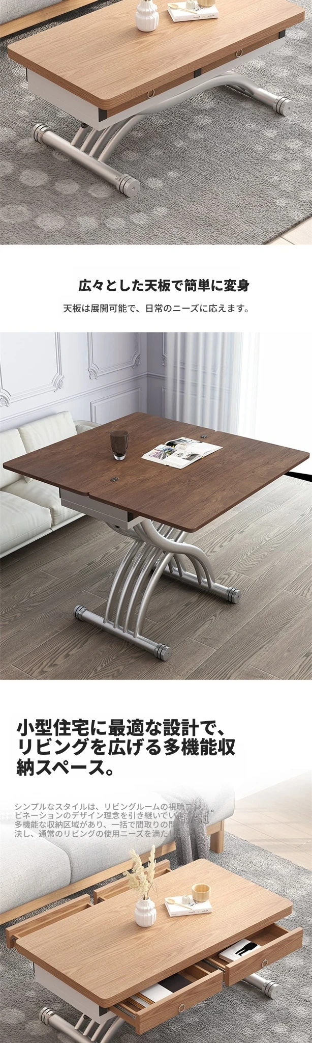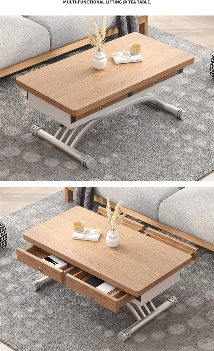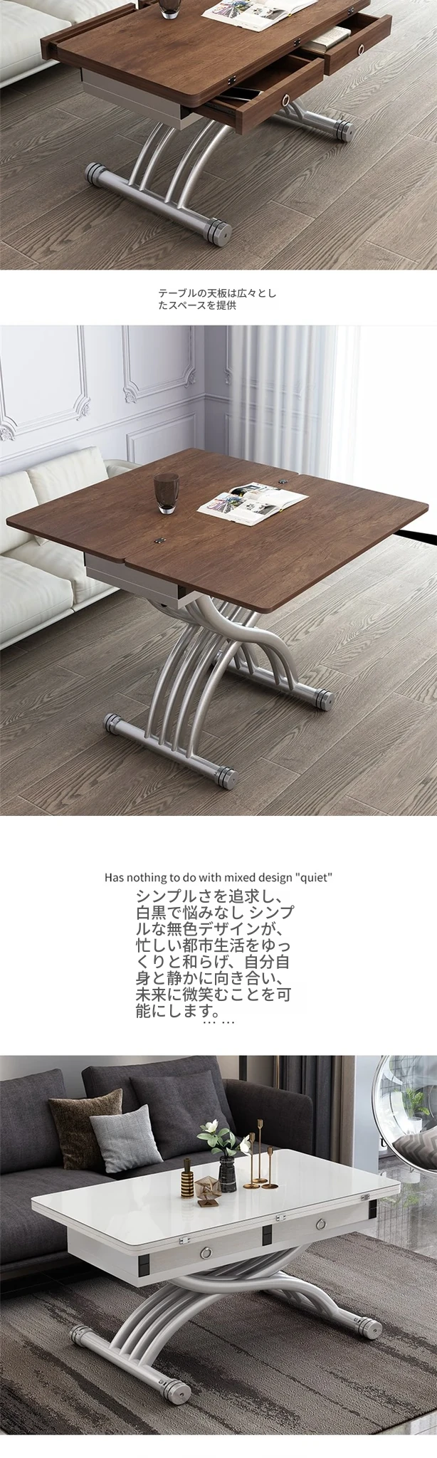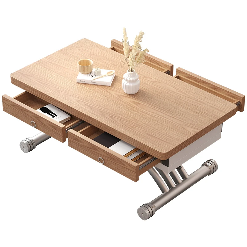 100*57【ホワイトウッドパターン+4引き出し】昇降式コーヒーテーブルダイニングテーブル /ゼロホルムアルデヒドオスモーズ