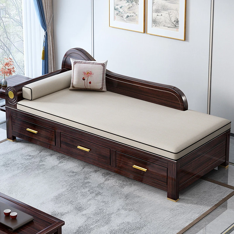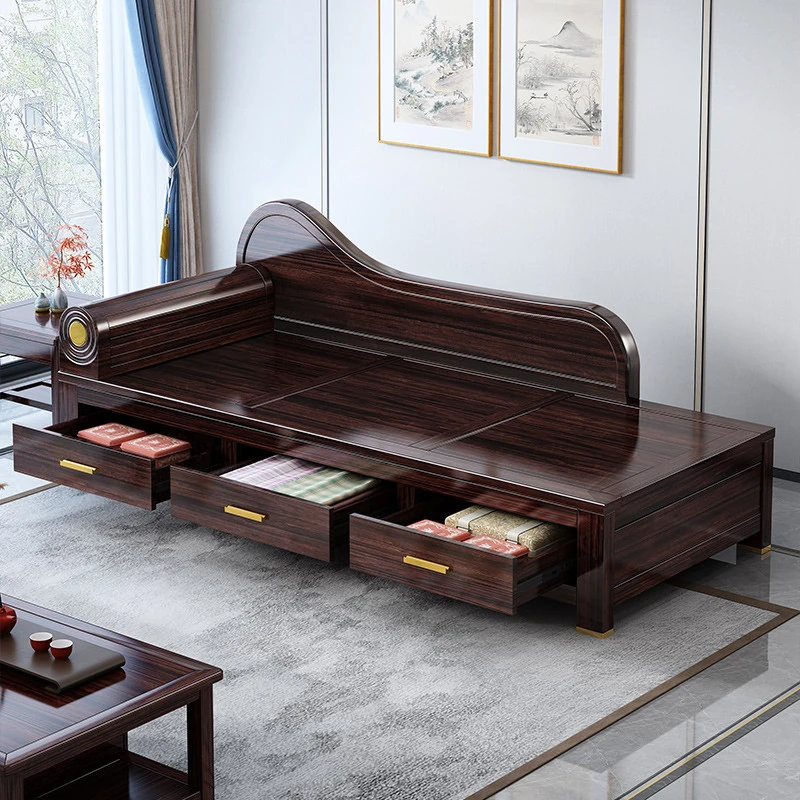 新中式スタイルの無垢材製の貴妃椅子 - 小型リビングにぴったりな紫金檀木の収納付きリクライニングソファ、午後のひとときを贅沢に演出する美人床です。