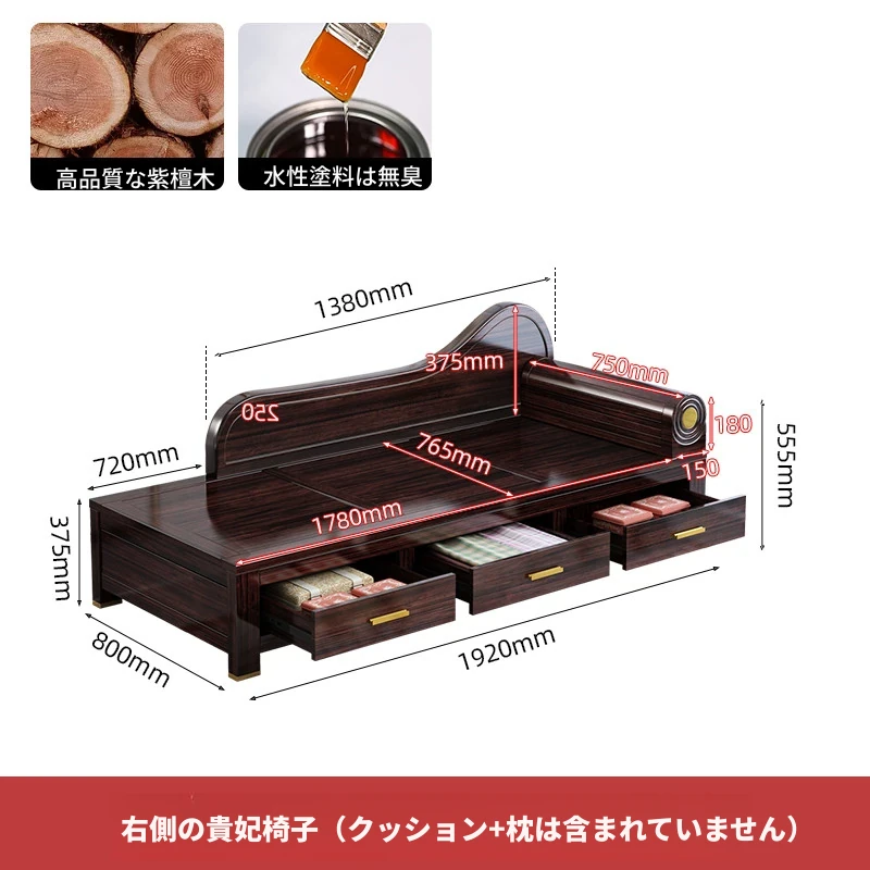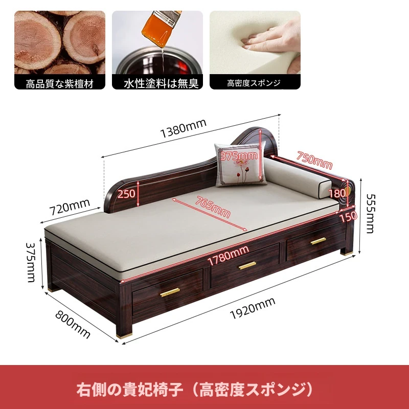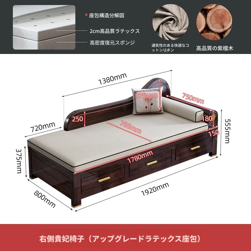 [紫金檀木]右貴妃ソファ(アップグレードラテックスシートパック)