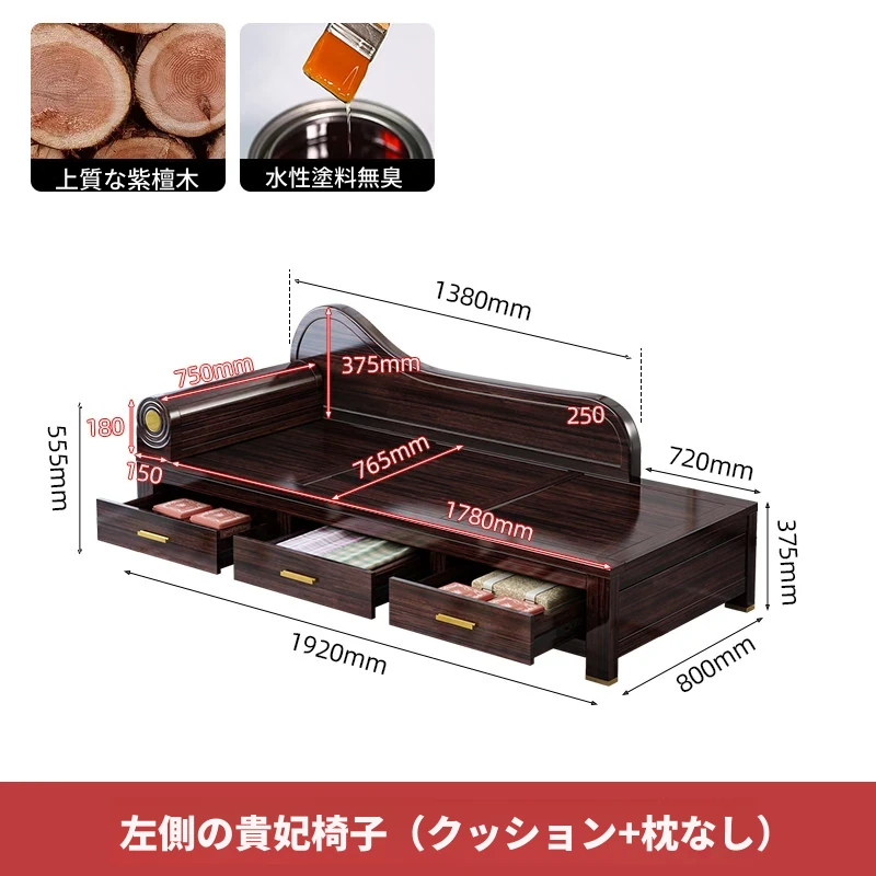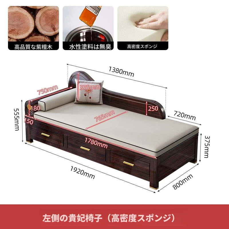 [紫金檀木]左貴妃ソファ(高密度スポンジ)