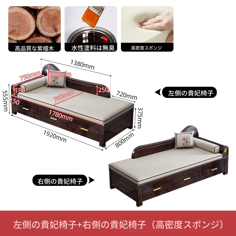 [紫金檀木]左貴妃ソファ+右貴妃ソファ(高密度スポンジ)