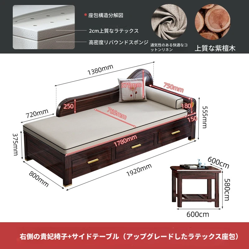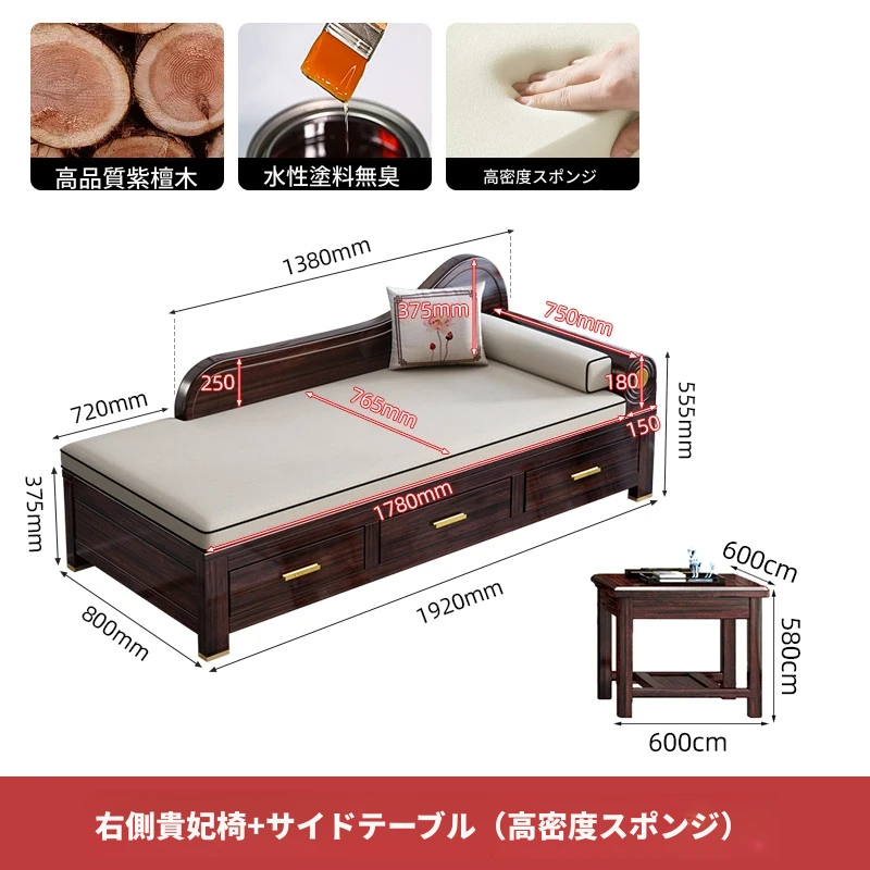 [紫金檀木]右貴妃ソファ+サイドテーブル(アップグレードラテックスシートパック)