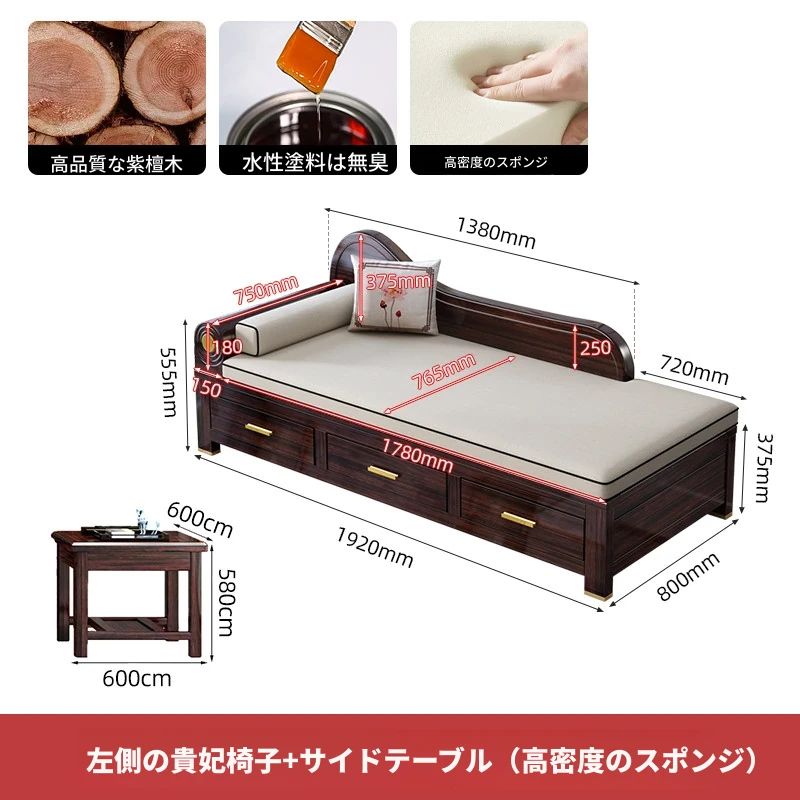 [紫金檀木]左貴妃ソファ+サイドテーブル(高密度スポンジ)