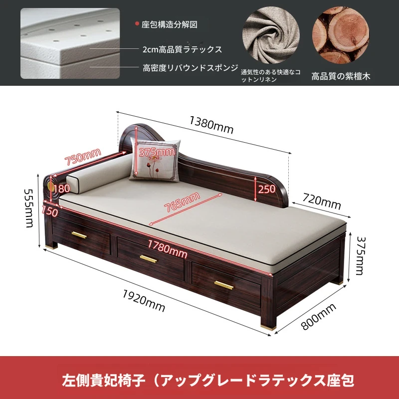 [紫金檀木]左貴妃ソファ(アップグレードラテックスシートパック)