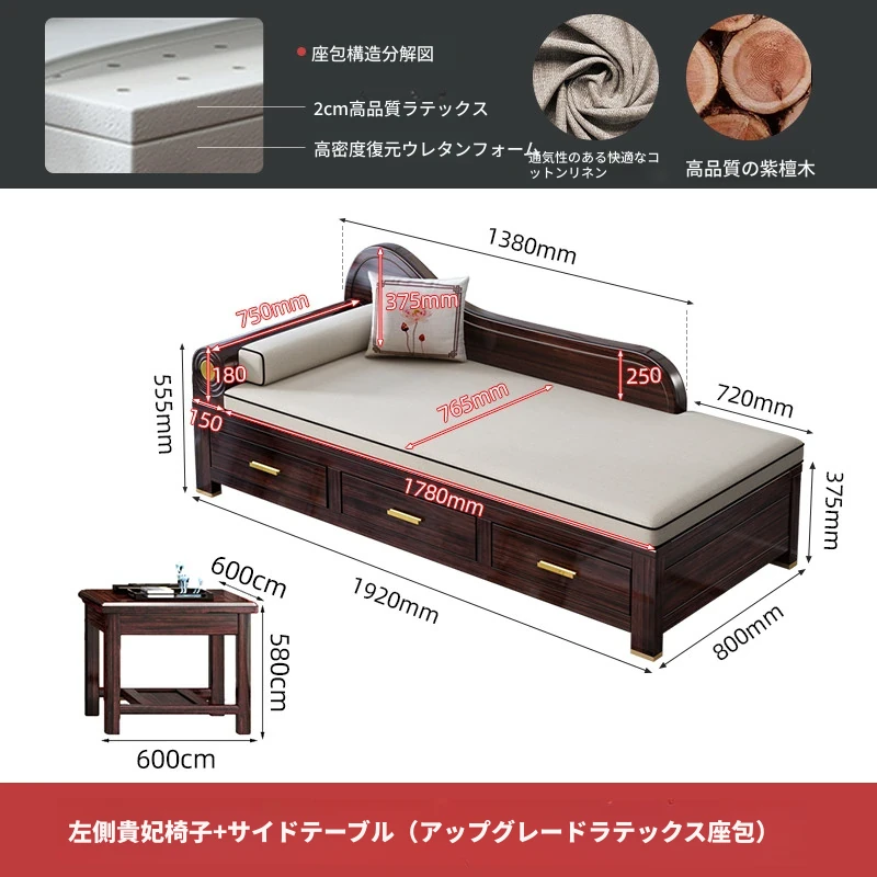 [紫金檀木]左貴妃ソファ+サイドテーブル(アップグレードラテックスシートパック)