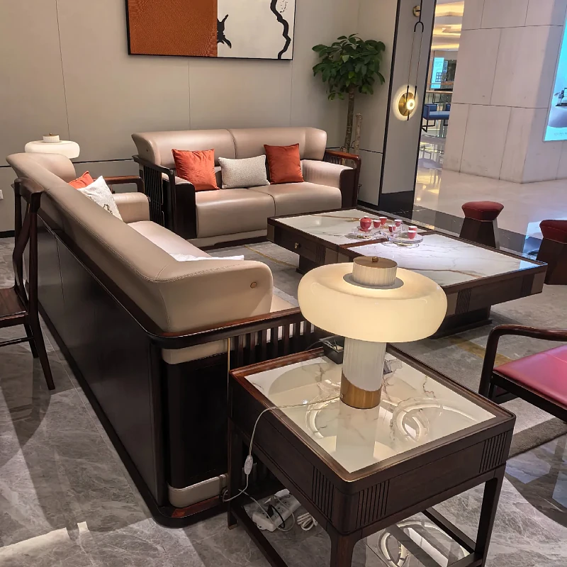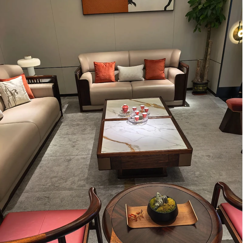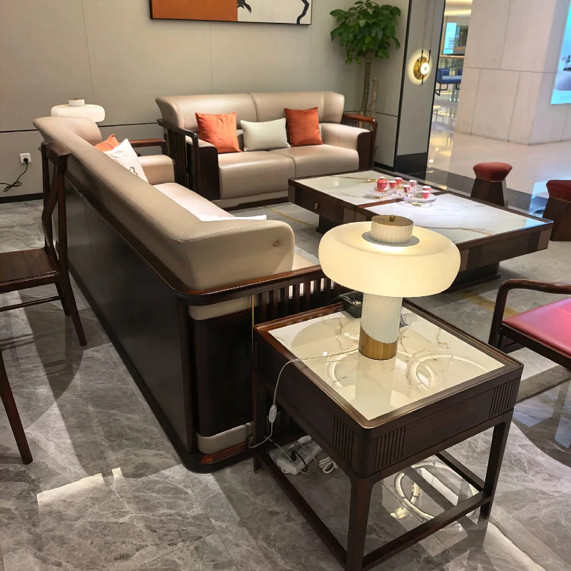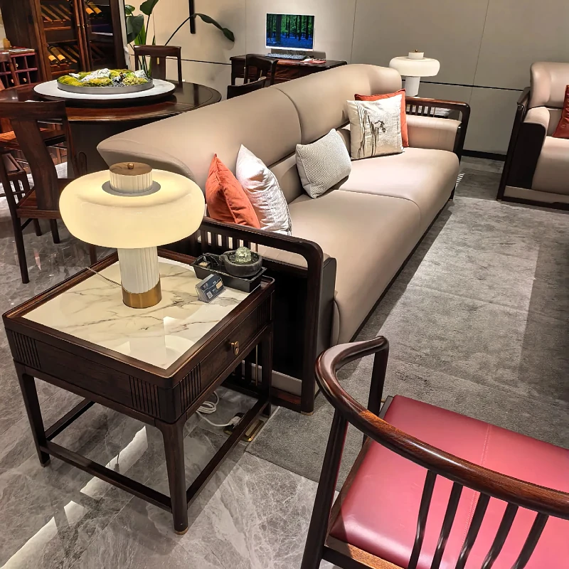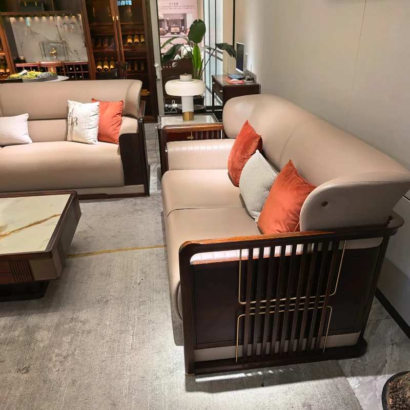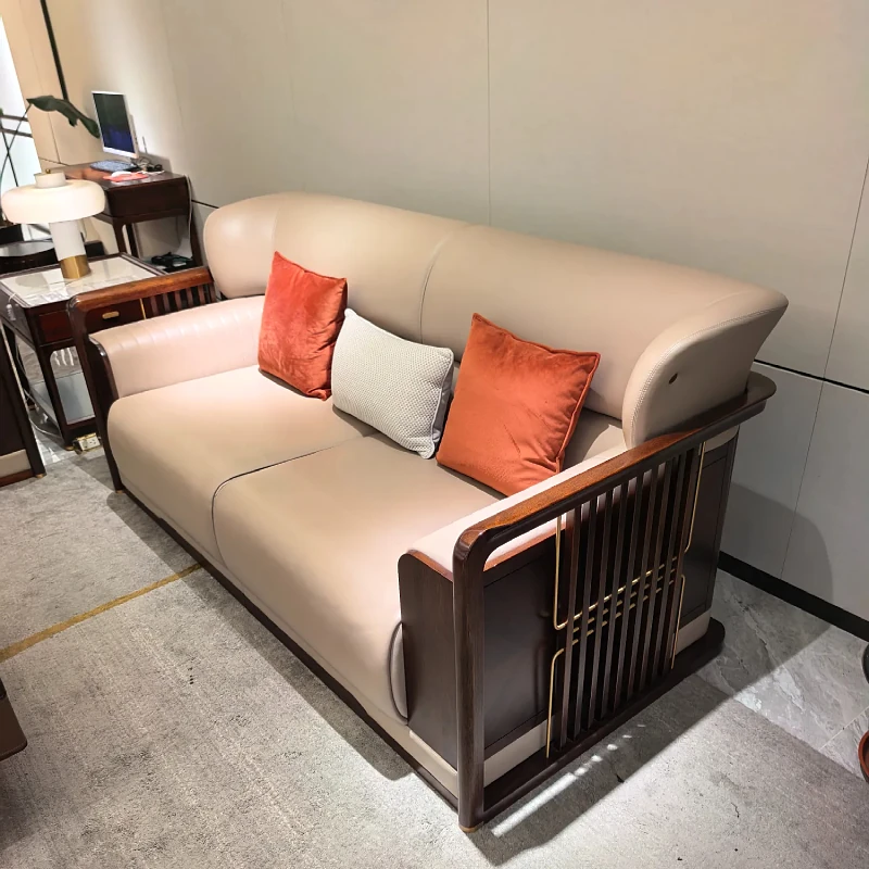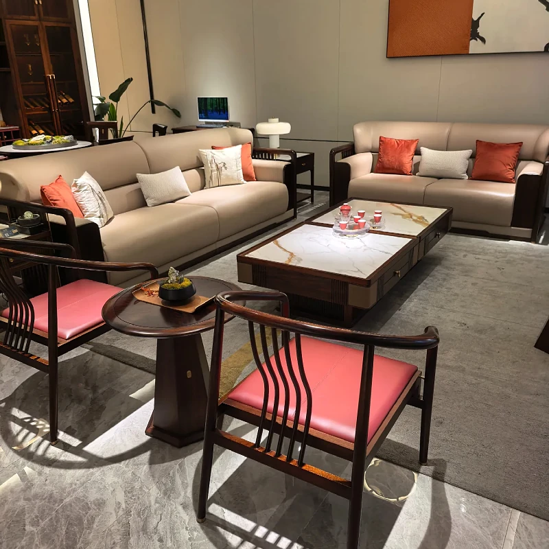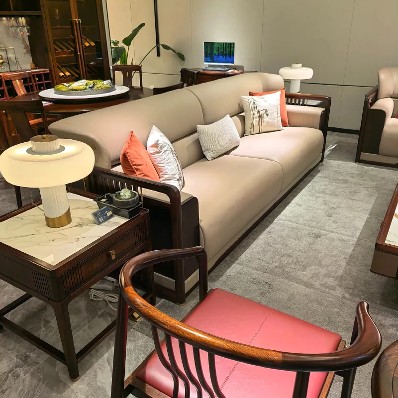 新中式実木ソファ 新作!軽奢感溢れる別荘リビングにぴったりのモダン簡約デザイン。大小あらゆるタイプの住居にフィットするウッディなブラックウッドソファ。快適なひとときをお届けします!