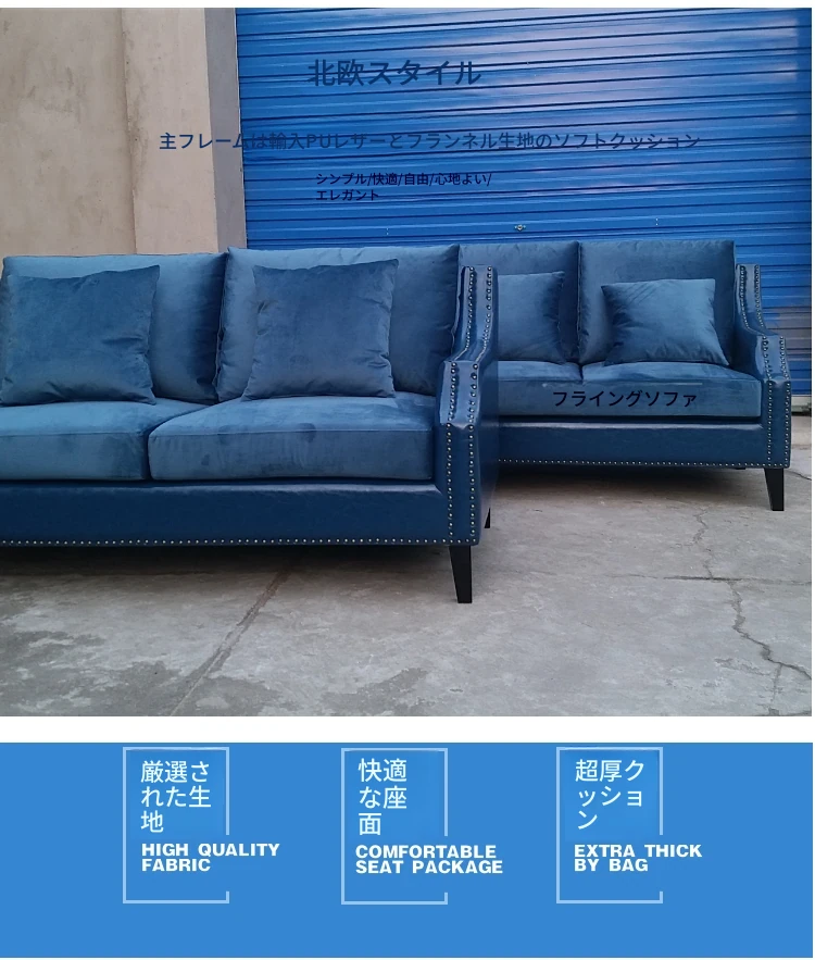 北欧モダンシンプルデザインの輸入PUレザーとフランネル布製ソファ - リビングにぴったりな一人掛け、二人掛け、三人掛けのコンビネーションソファで、快適さとスタイルを両立!