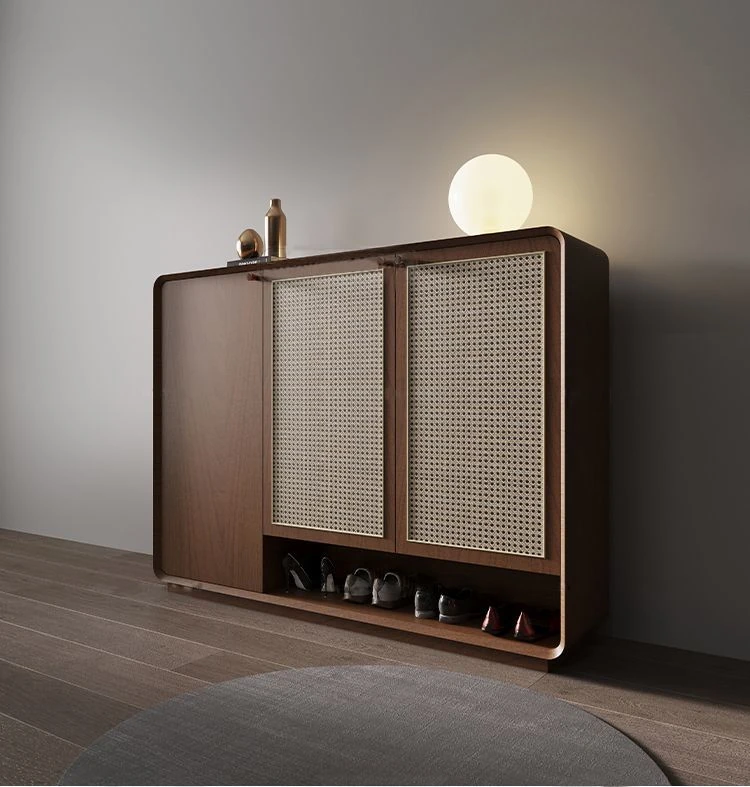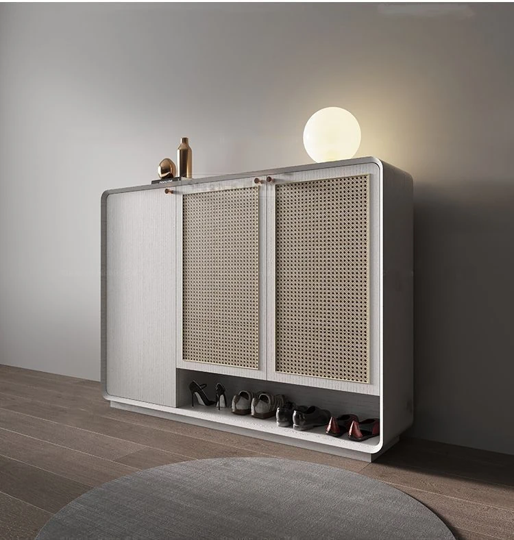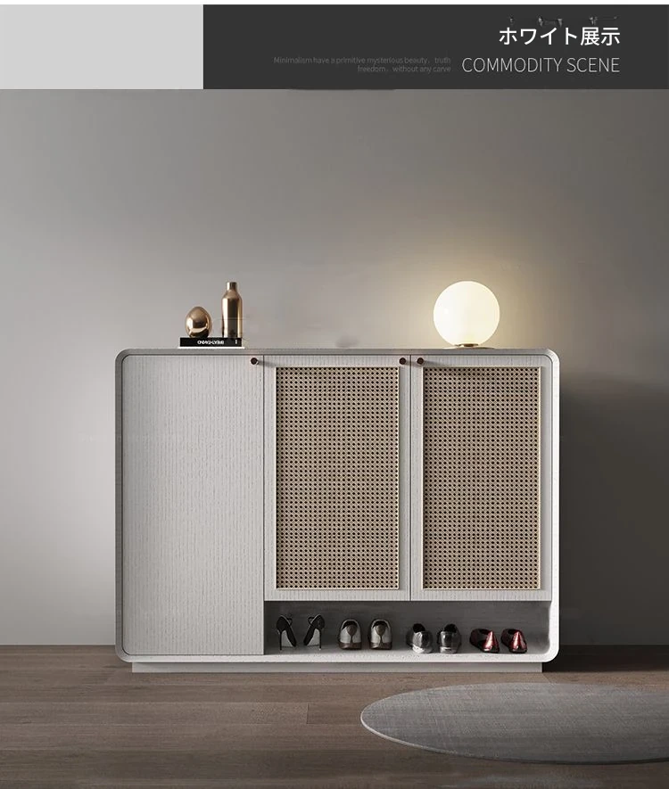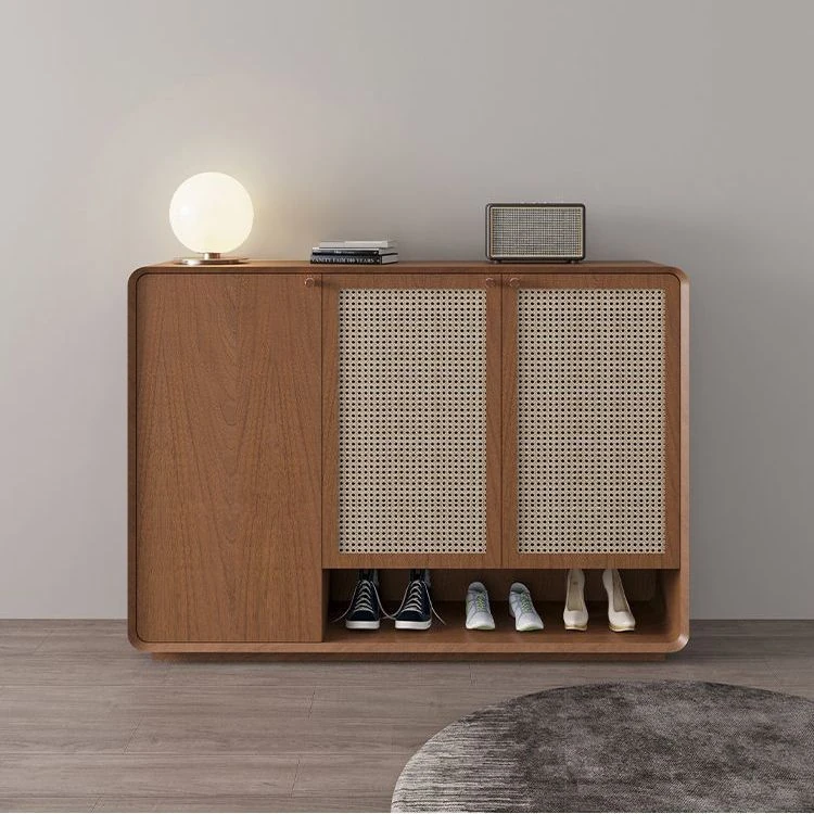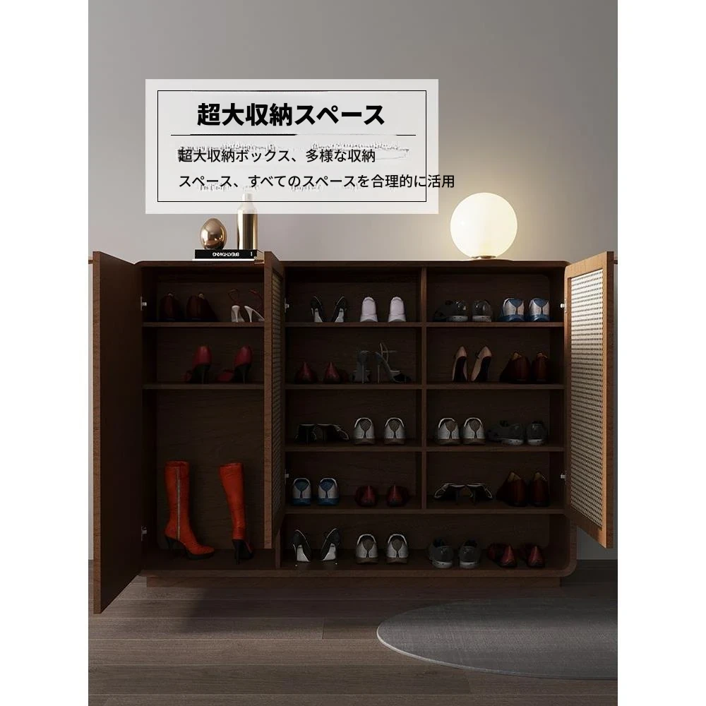 北欧風モダンミニマリスト玄関収納!レトロ中華風ラタンシューズキャビネット、リビングと一体化したコンパクトな小型玄関家具。おしゃれで実用的な収納ソリューション、狭いスペースにも最適!