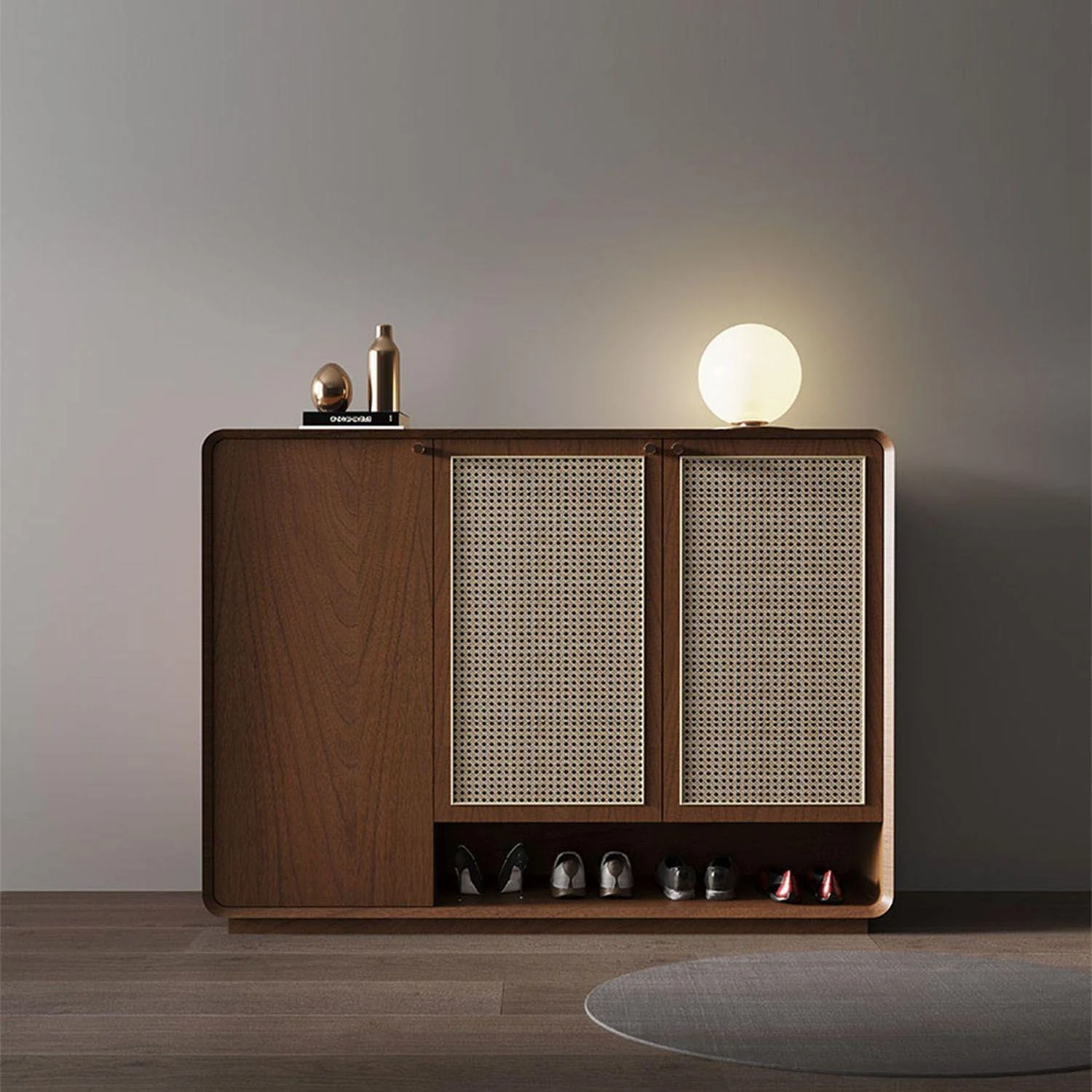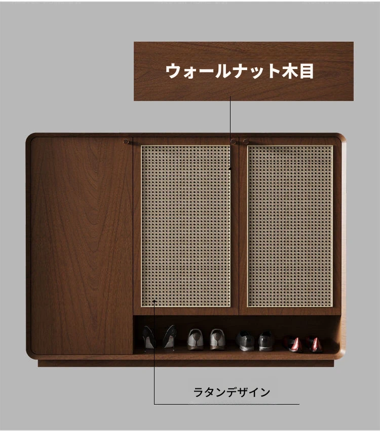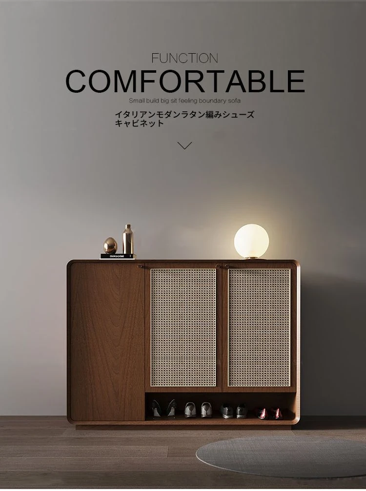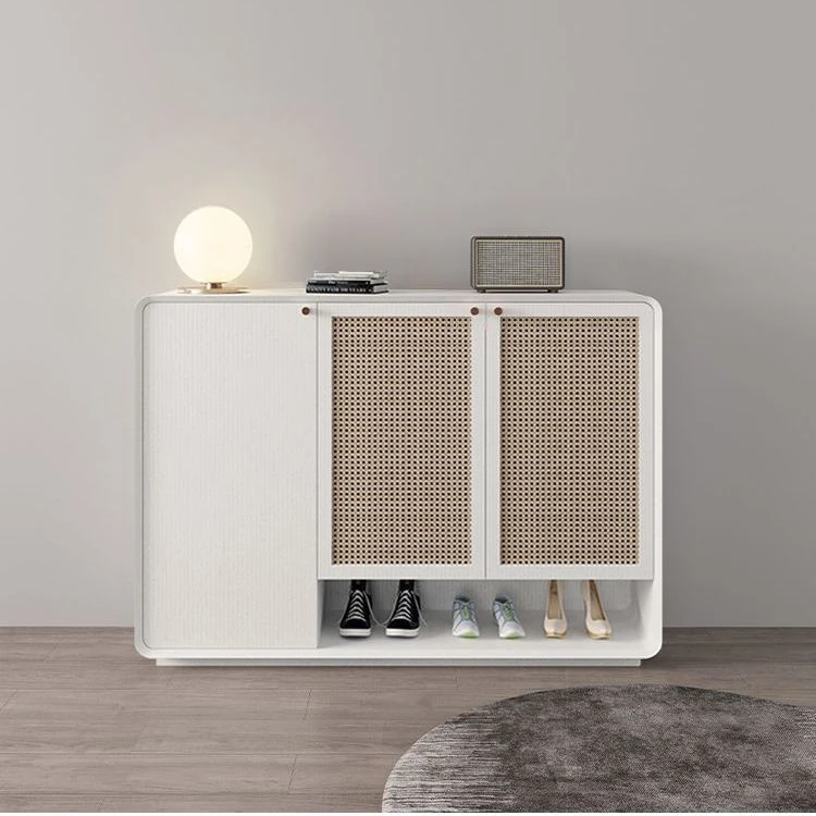 北欧風モダンミニマリスト玄関収納!レトロ中華風ラタンシューズキャビネット、リビングと一体化したコンパクトな小型玄関家具。おしゃれで実用的な収納ソリューション、狭いスペースにも最適!