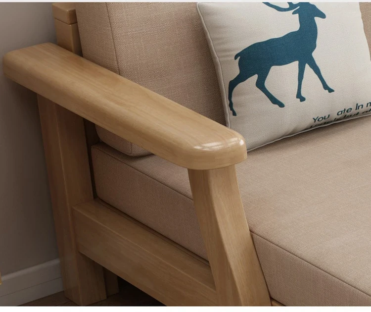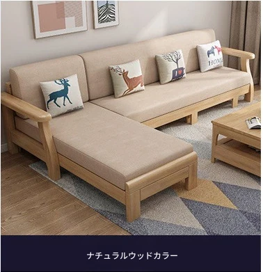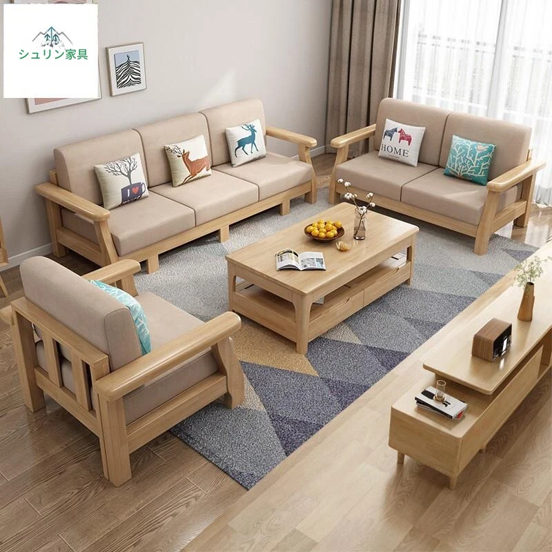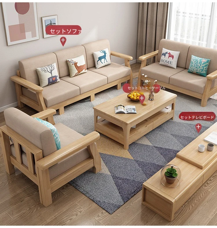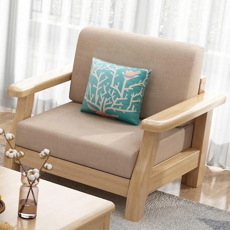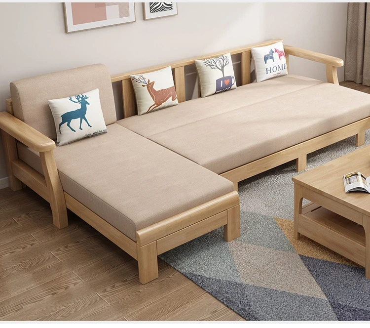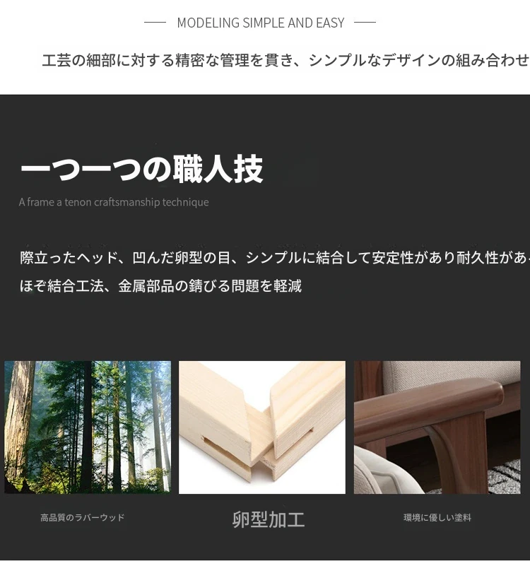 北欧スタイルのリビングソファー - 木と布のコンビネーション、日本風のダブルデイベッドセット、小型住宅に最適な本格的なウッドスリープソファ!快適さとデザイン性を兼ね備えた理想の家具です。