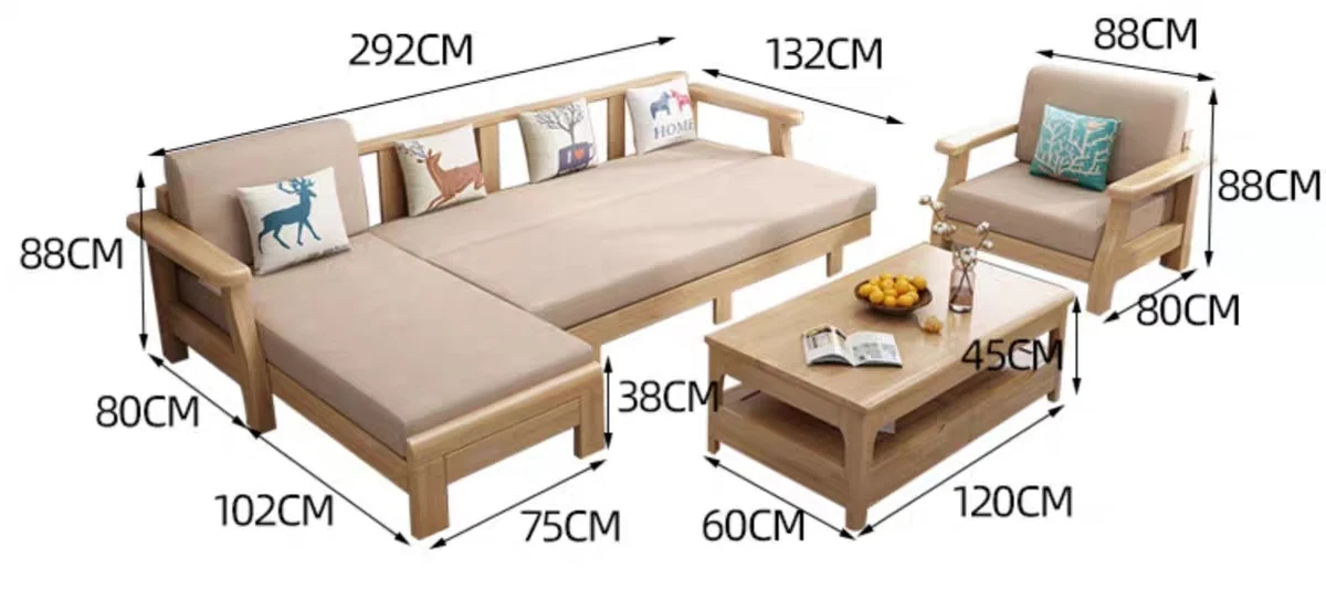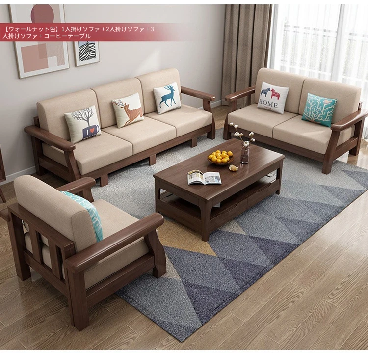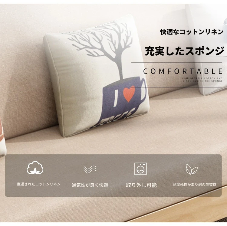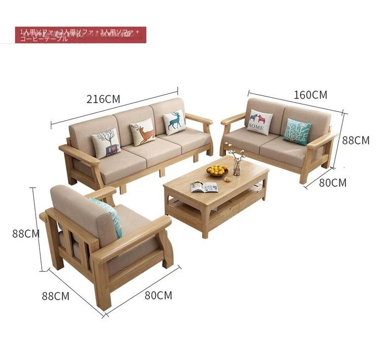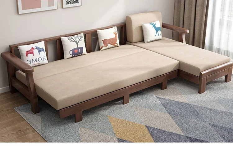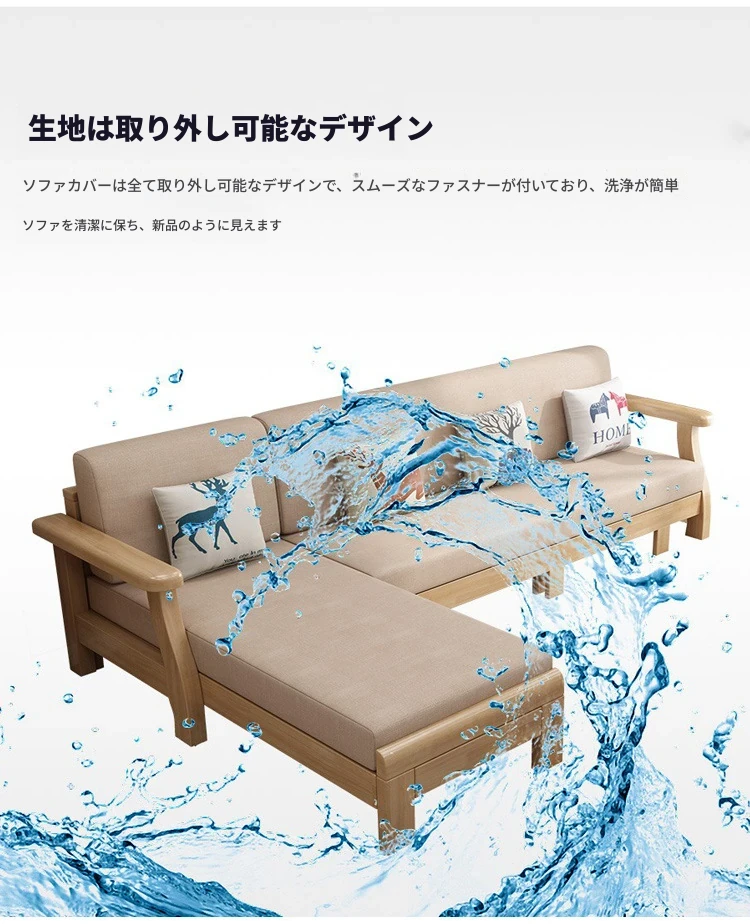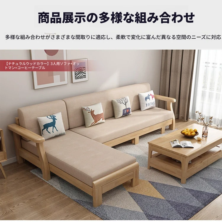北欧スタイルのリビングソファー - 木と布のコンビネーション、日本風のダブルデイベッドセット、小型住宅に最適な本格的なウッドスリープソファ!快適さとデザイン性を兼ね備えた理想の家具です。