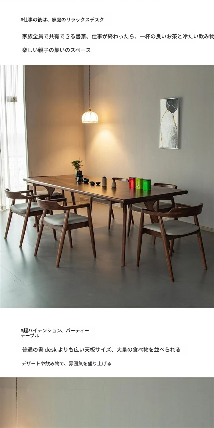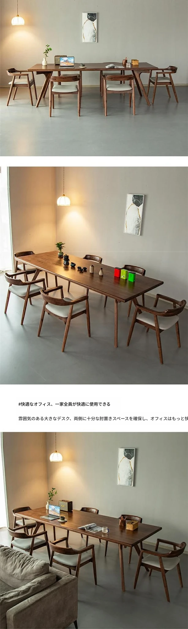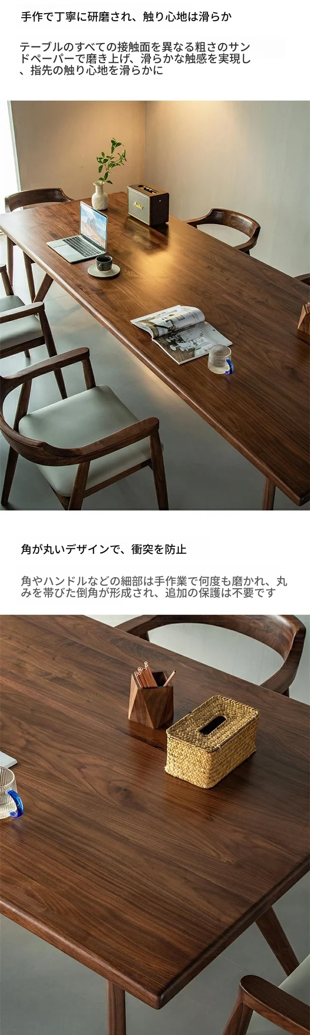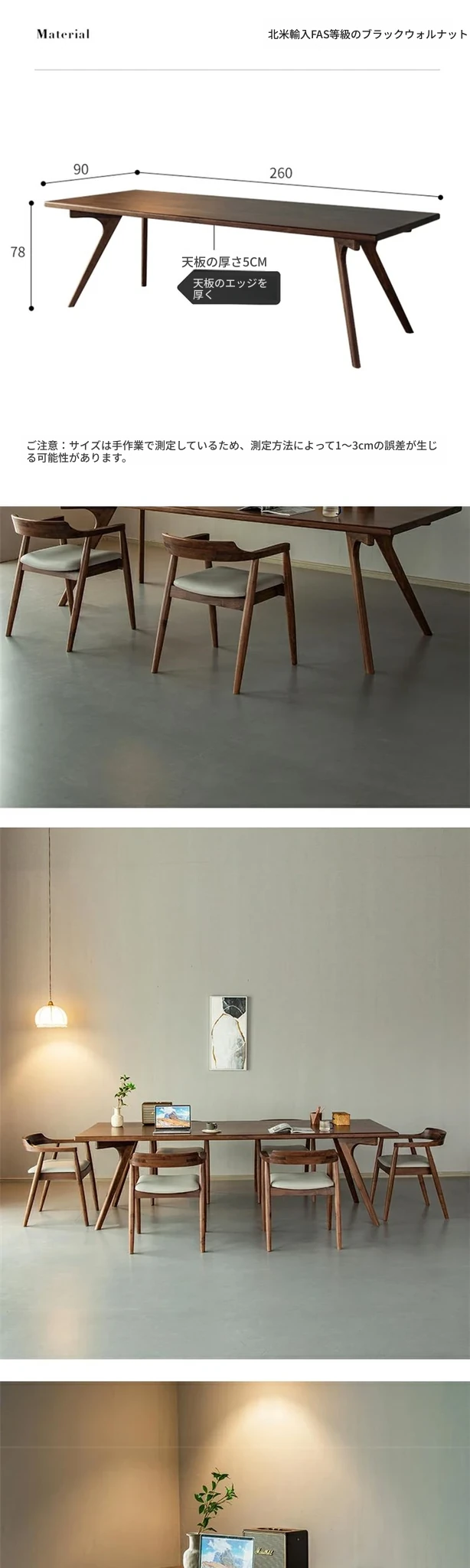 北米産ブラックウォールナット無垢材ダイニングテーブル - 多機能大板D型、和風ミニマリズム2.6メートル厚手会議テーブル!高級感あふれるデザインで、食事や会議に最適、どんな空間にも調和します。