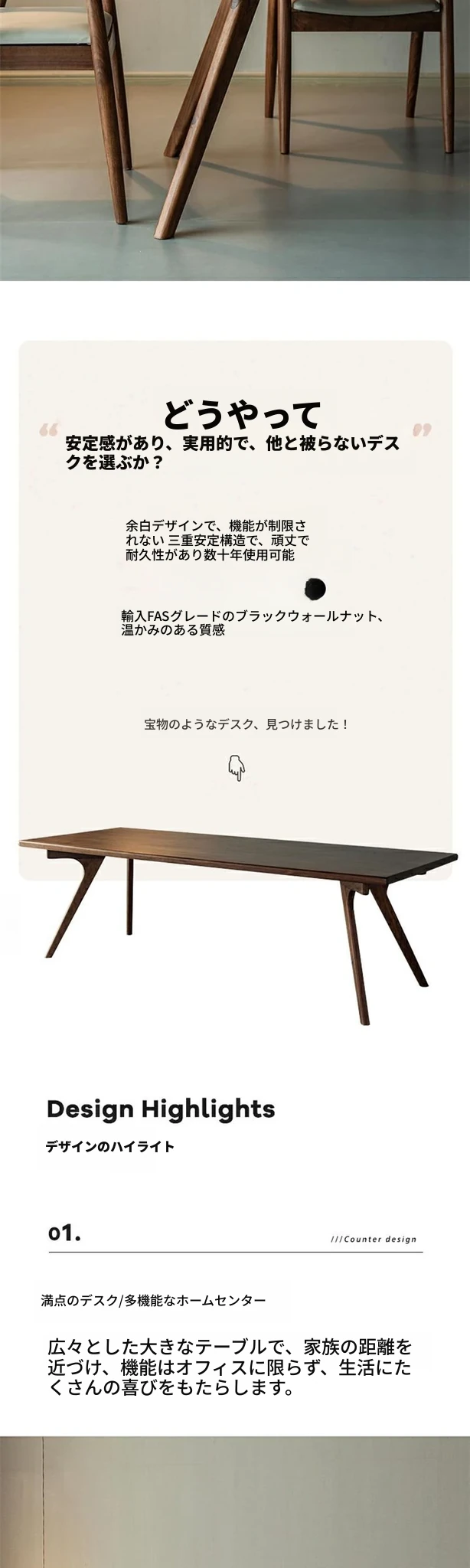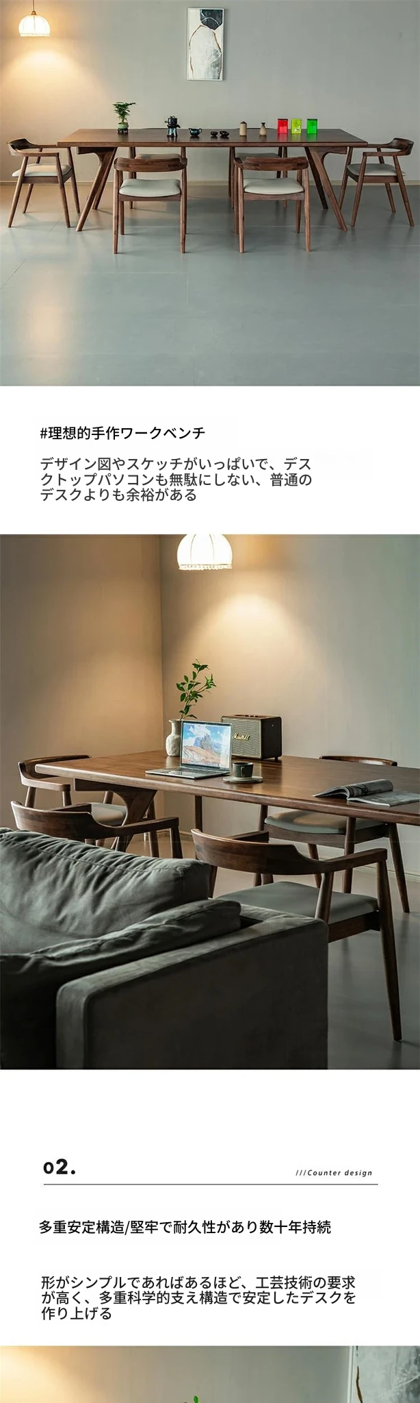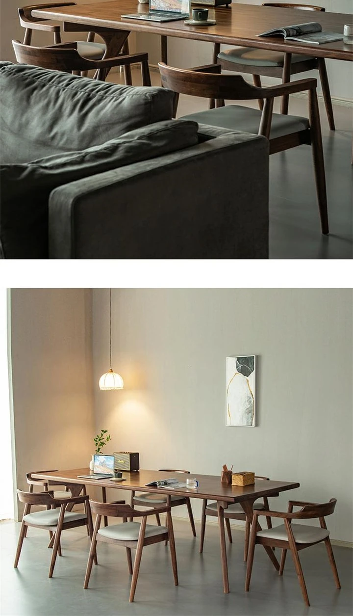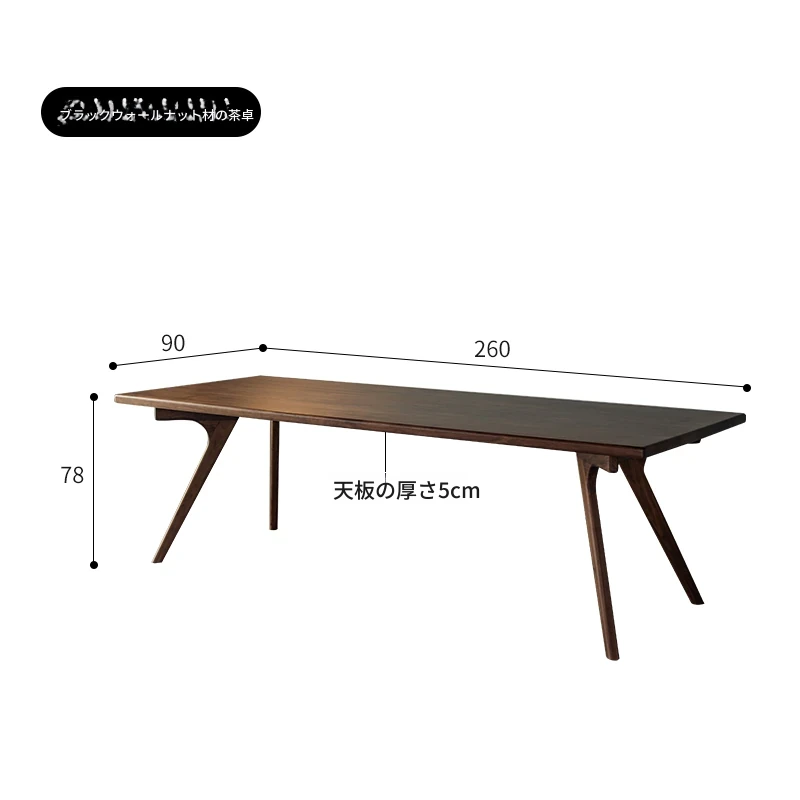 北米産ブラックウォールナット無垢材ダイニングテーブル - 多機能大板D型、和風ミニマリズム2.6メートル厚手会議テーブル!高級感あふれるデザインで、食事や会議に最適、どんな空間にも調和します。