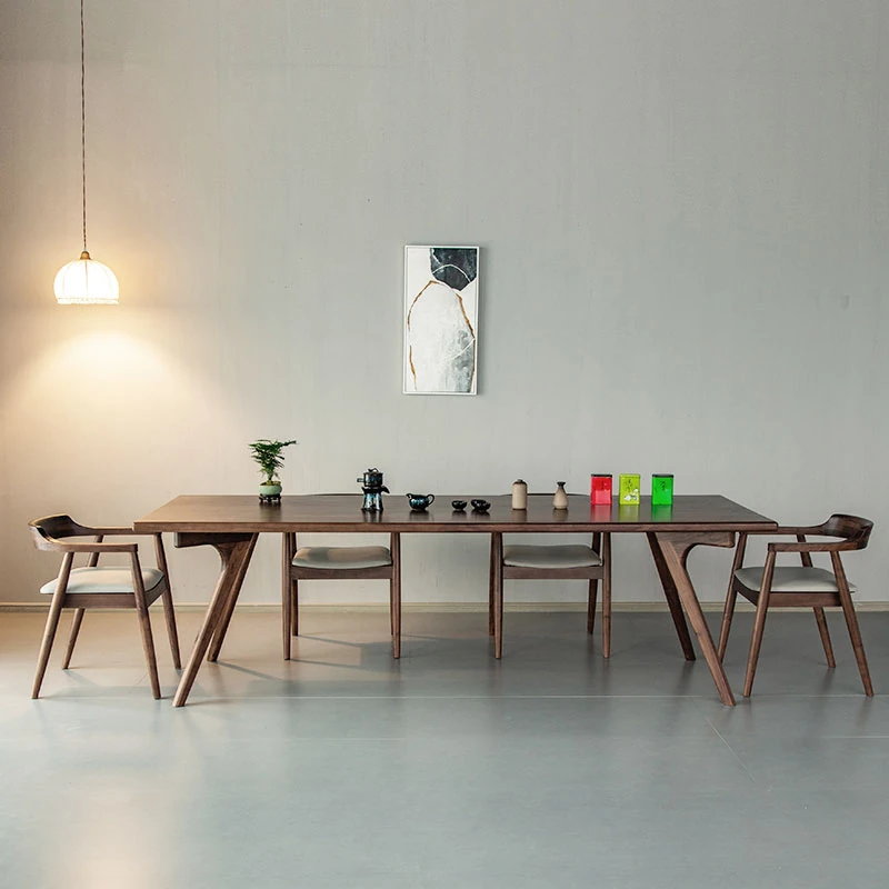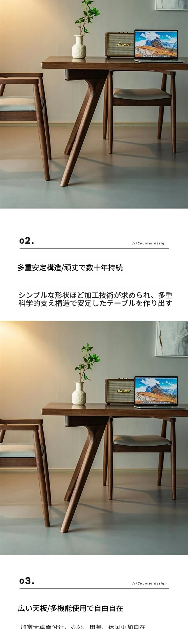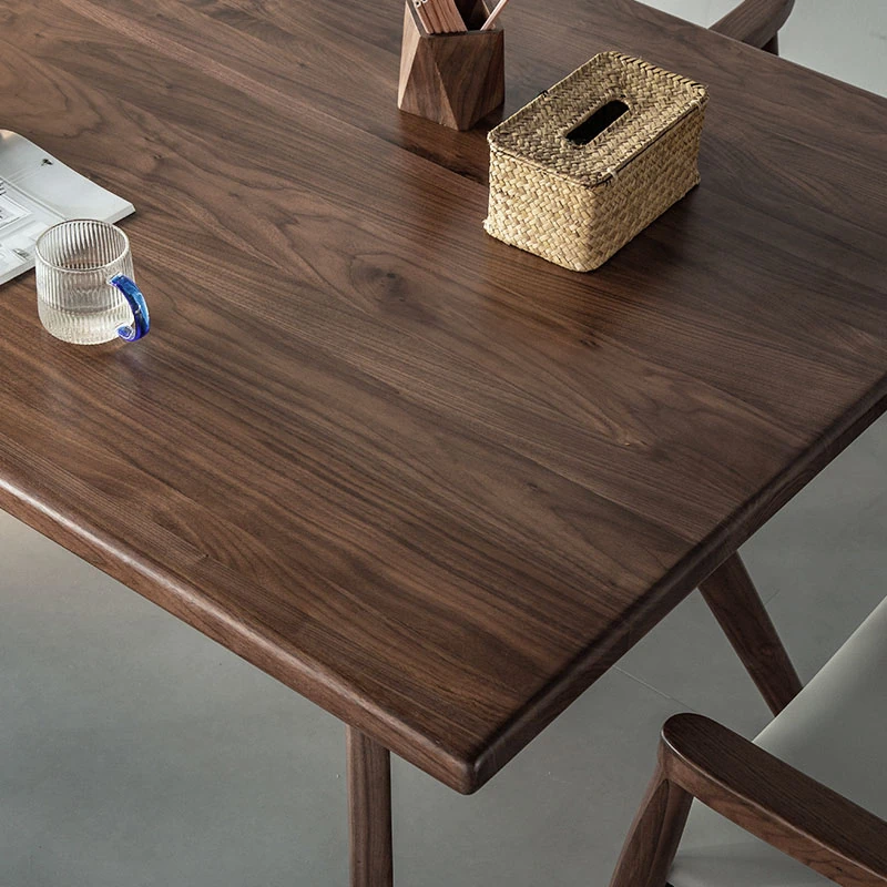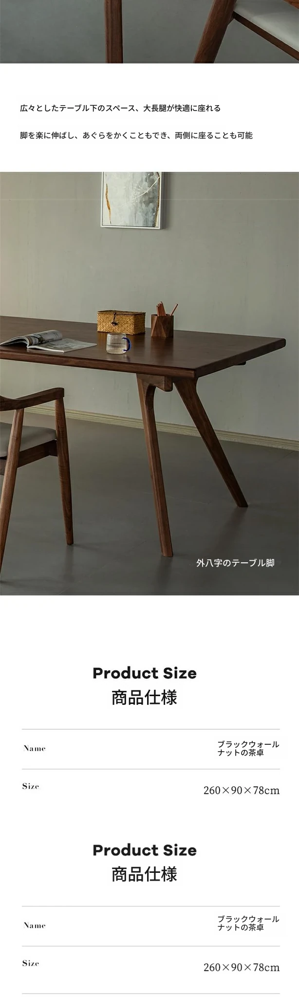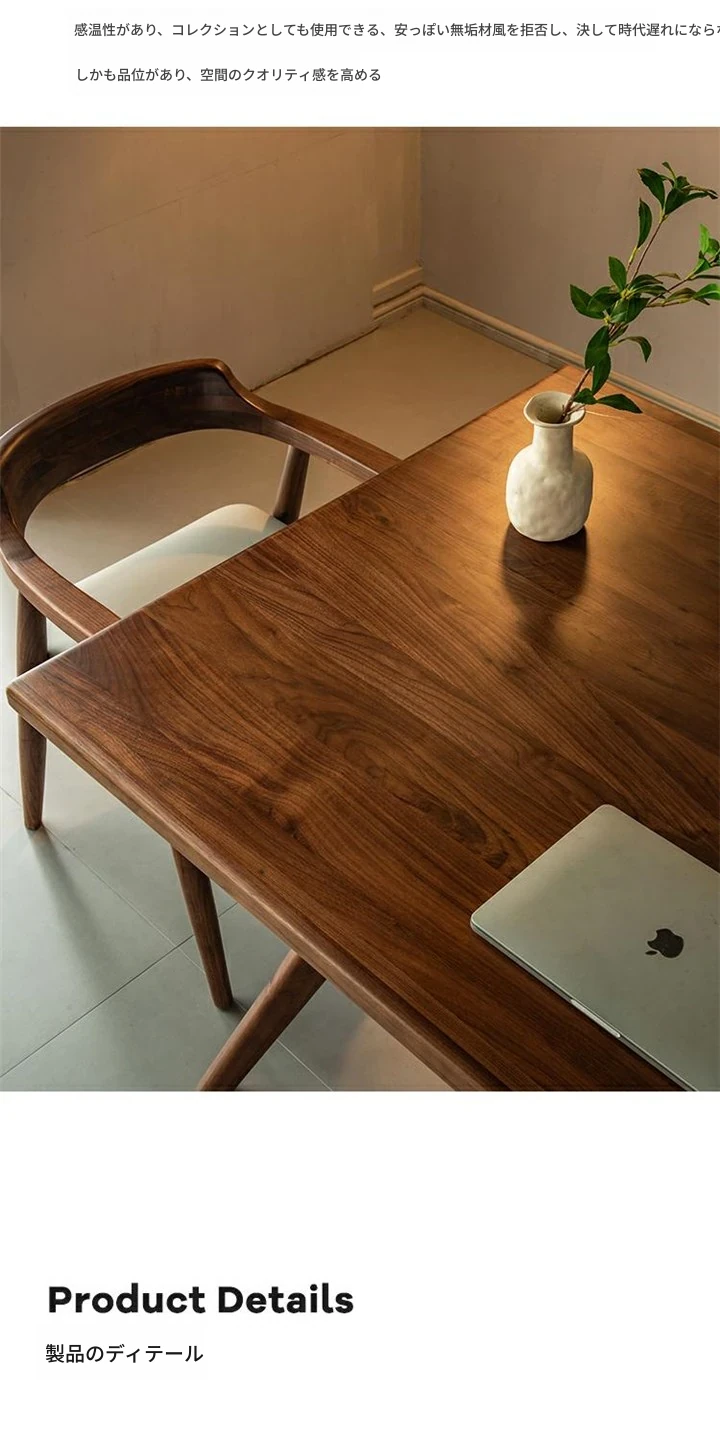 北米産ブラックウォールナット無垢材ダイニングテーブル - 多機能大板D型、和風ミニマリズム2.6メートル厚手会議テーブル!高級感あふれるデザインで、食事や会議に最適、どんな空間にも調和します。