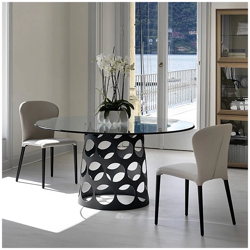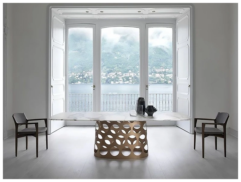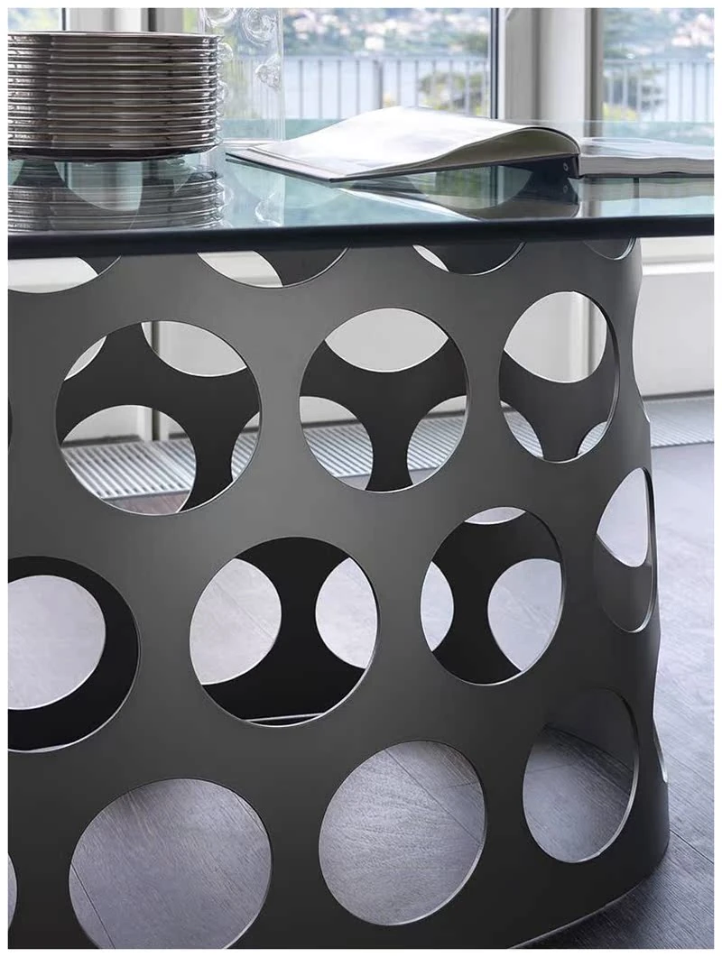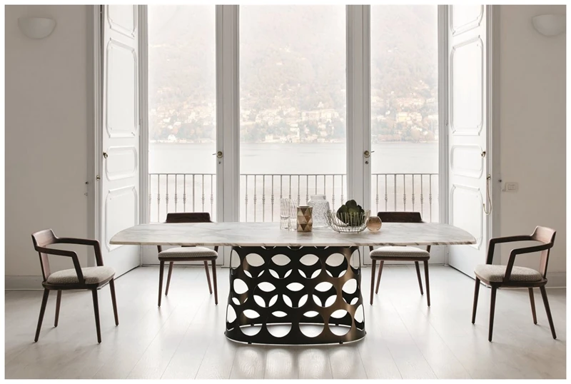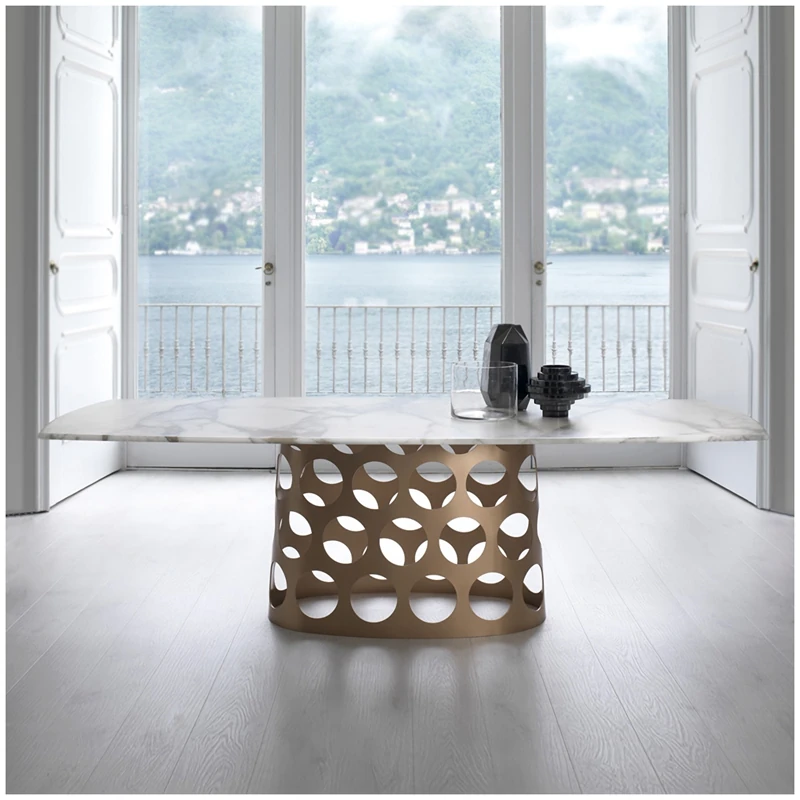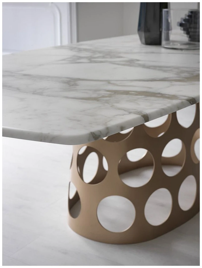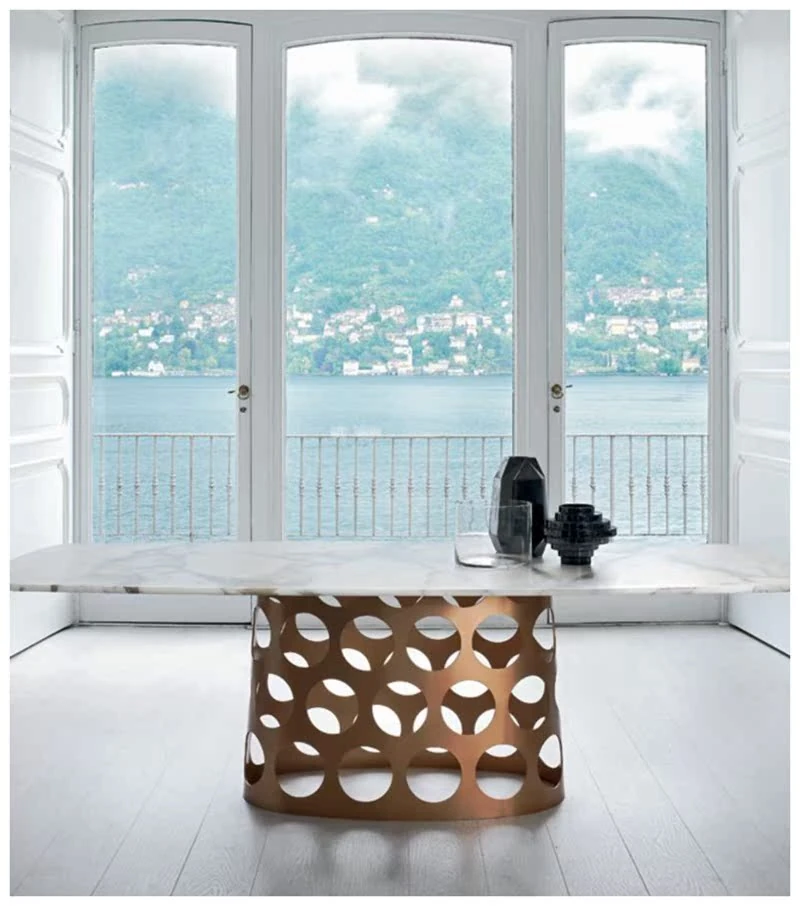 ポラーダ イタリアンラグジュアリー 長テーブル 高級ステンレスレーザー加工 大理石円形ダイニングテーブル - 洗練されたデザインで特別なひとときを演出!