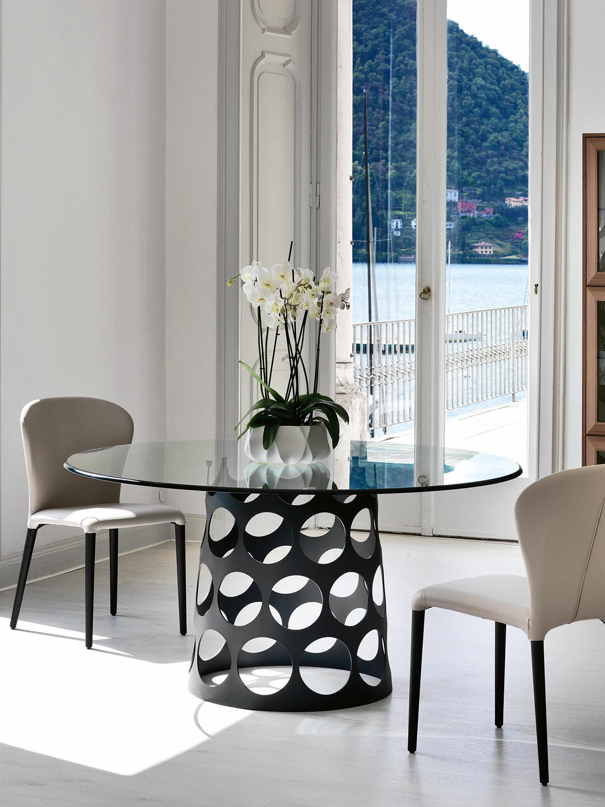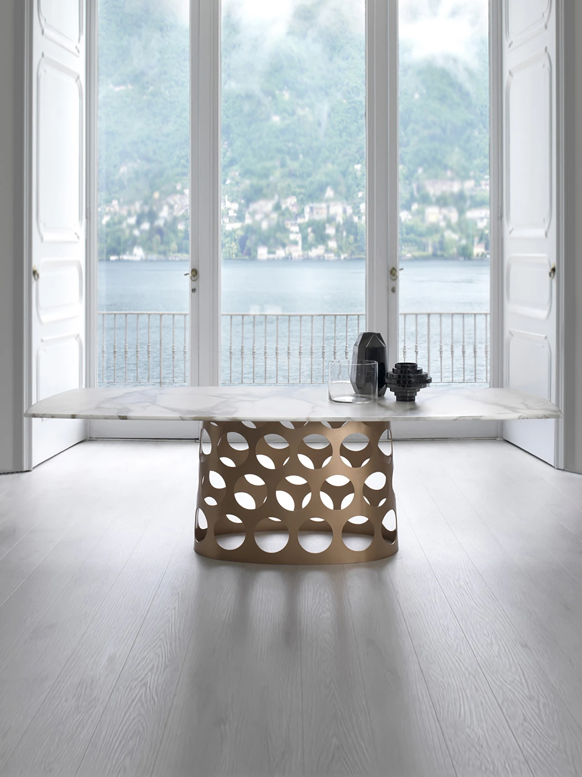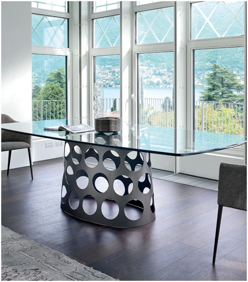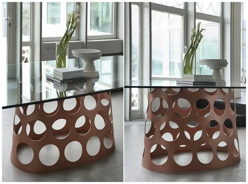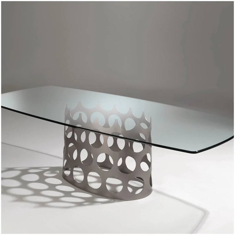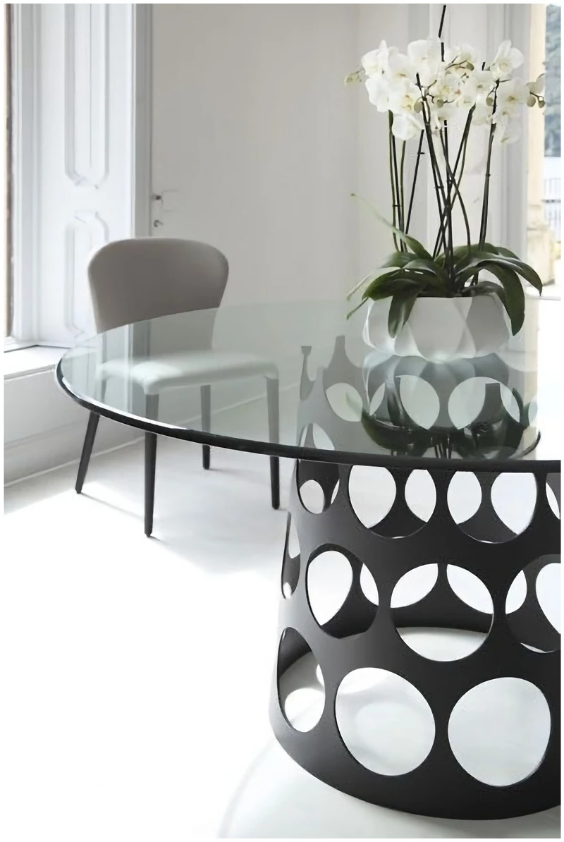 ポラーダ イタリアンラグジュアリー 長テーブル 高級ステンレスレーザー加工 大理石円形ダイニングテーブル - 洗練されたデザインで特別なひとときを演出!