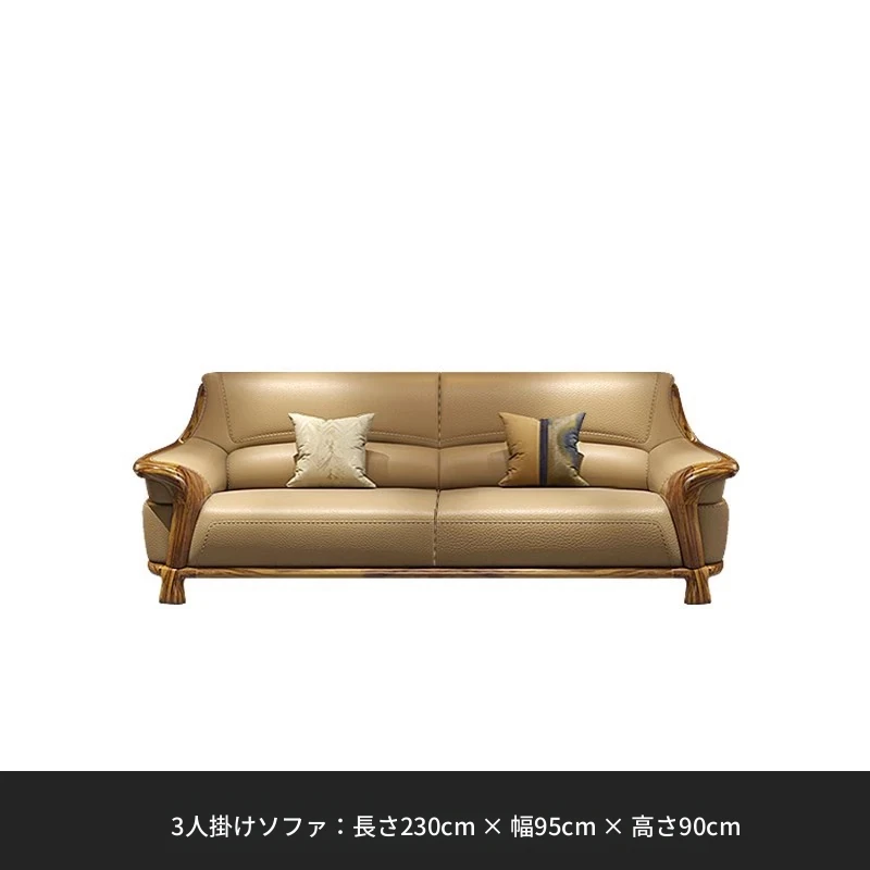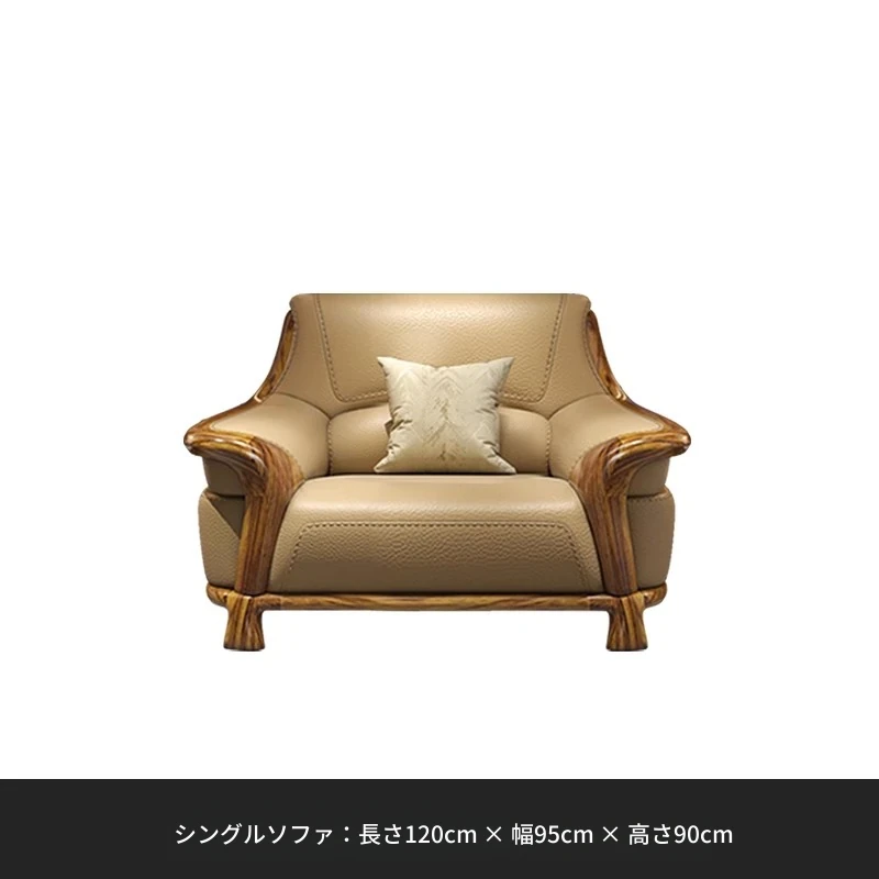 ウッジン材【1人掛け+2人掛け+3人掛け】本革ソファ