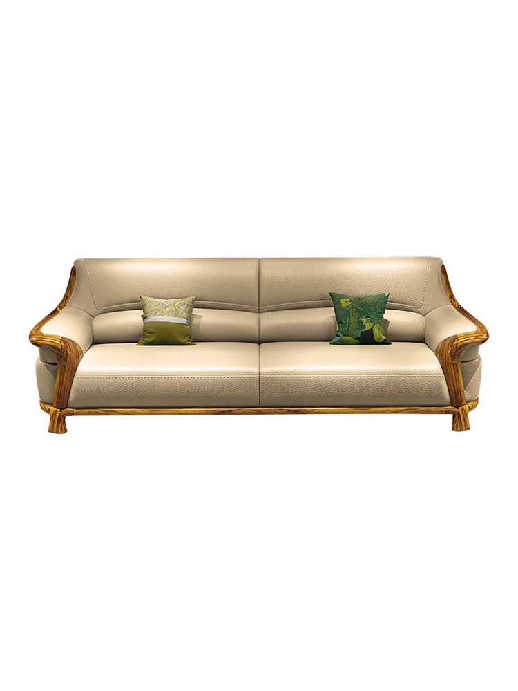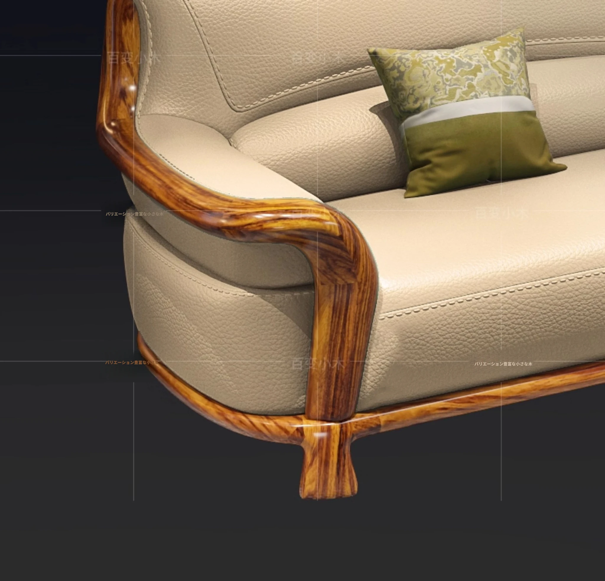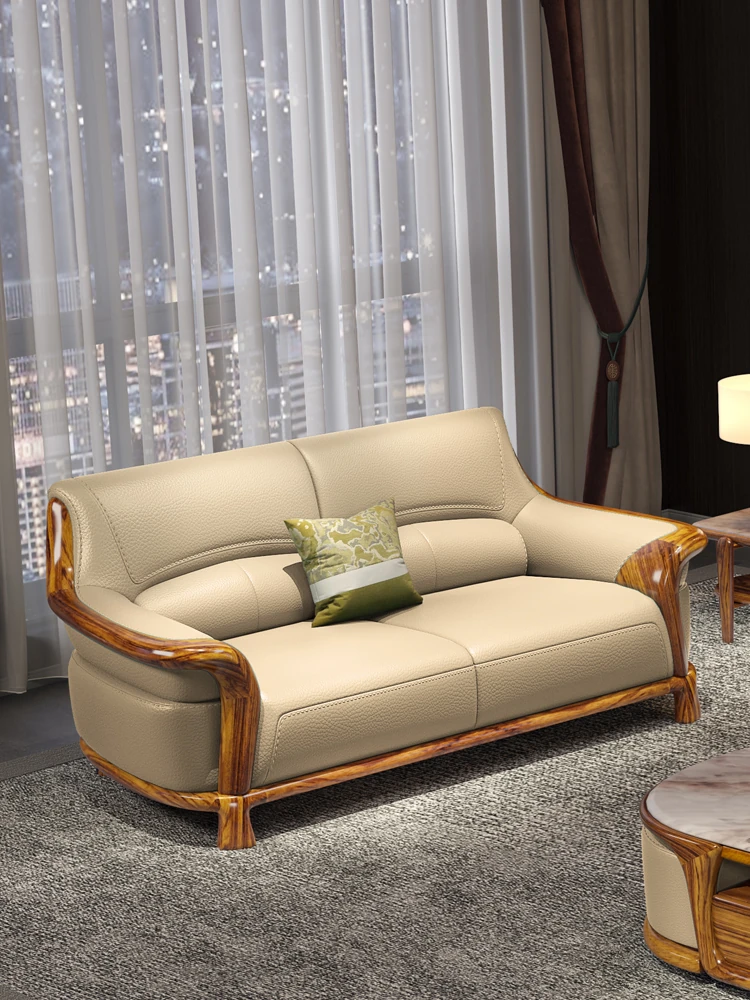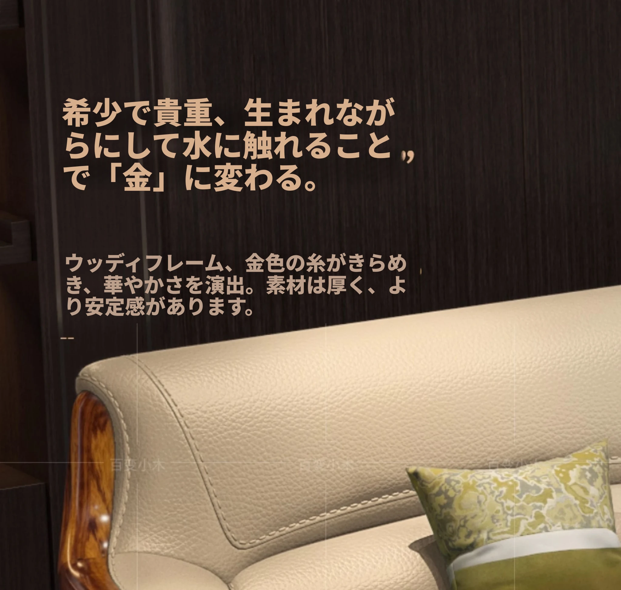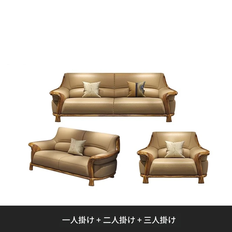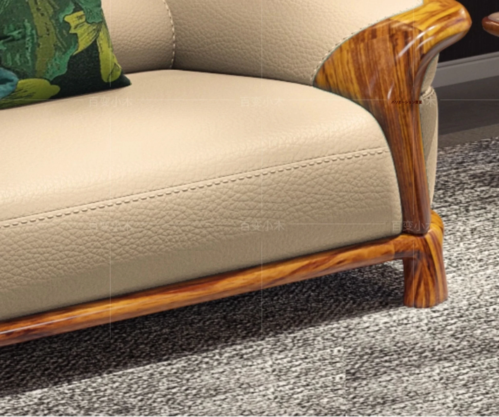 ウコンウッド本革ソファセット現代新中式豪華トップグレード牛革大邸宅用リビング家具 - 贅沢な空間を演出し、心地よいひとときを提供します。