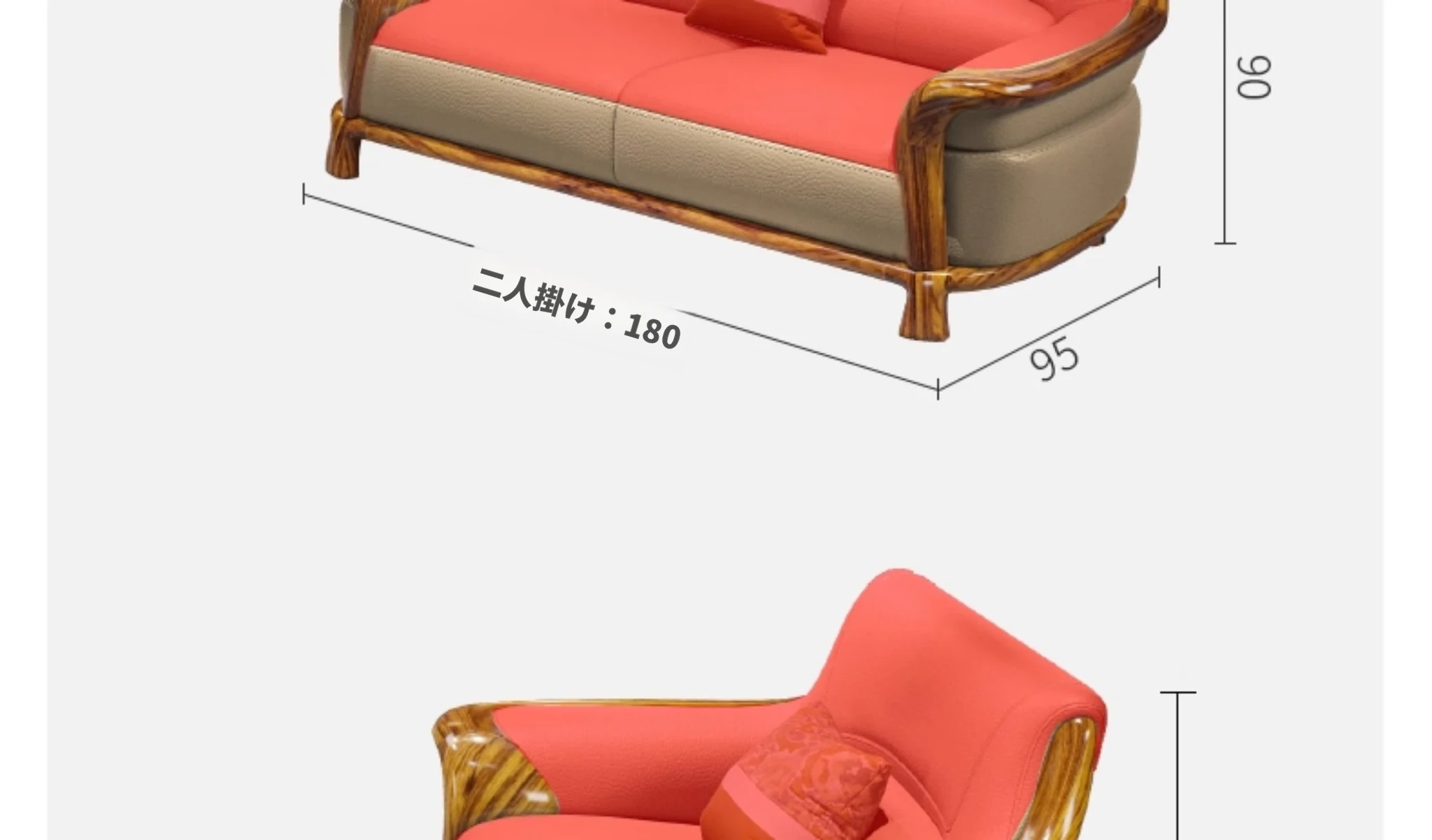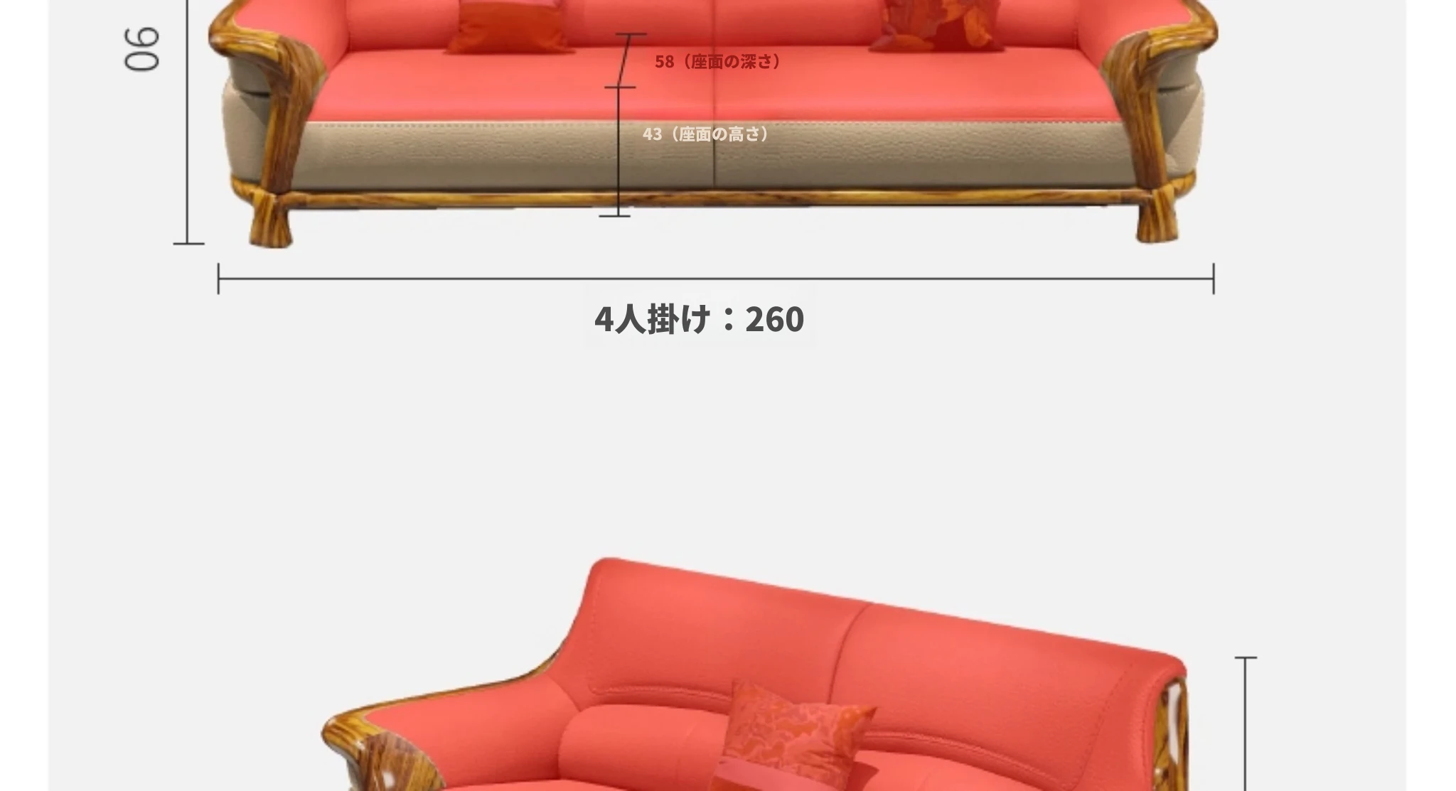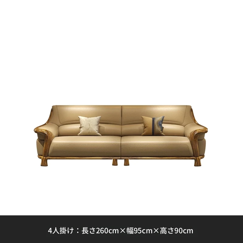 ウッジン材【1人掛け+2人掛け+4人掛け】本革ソファ
