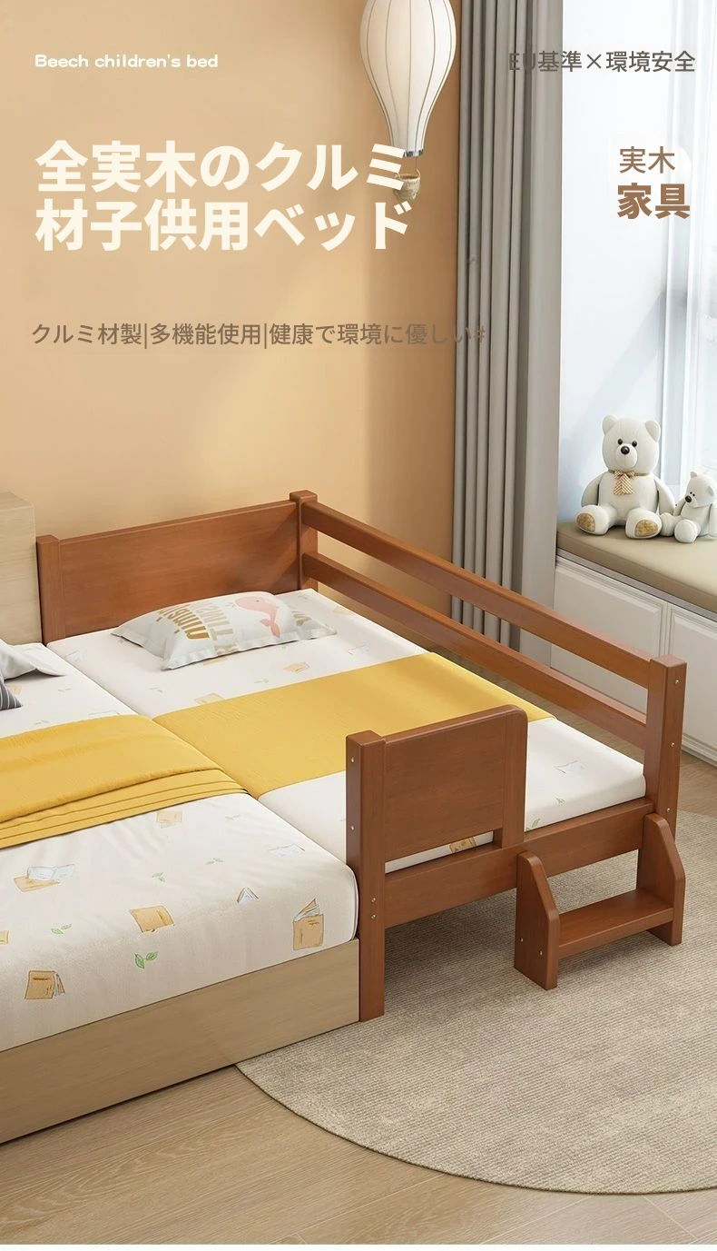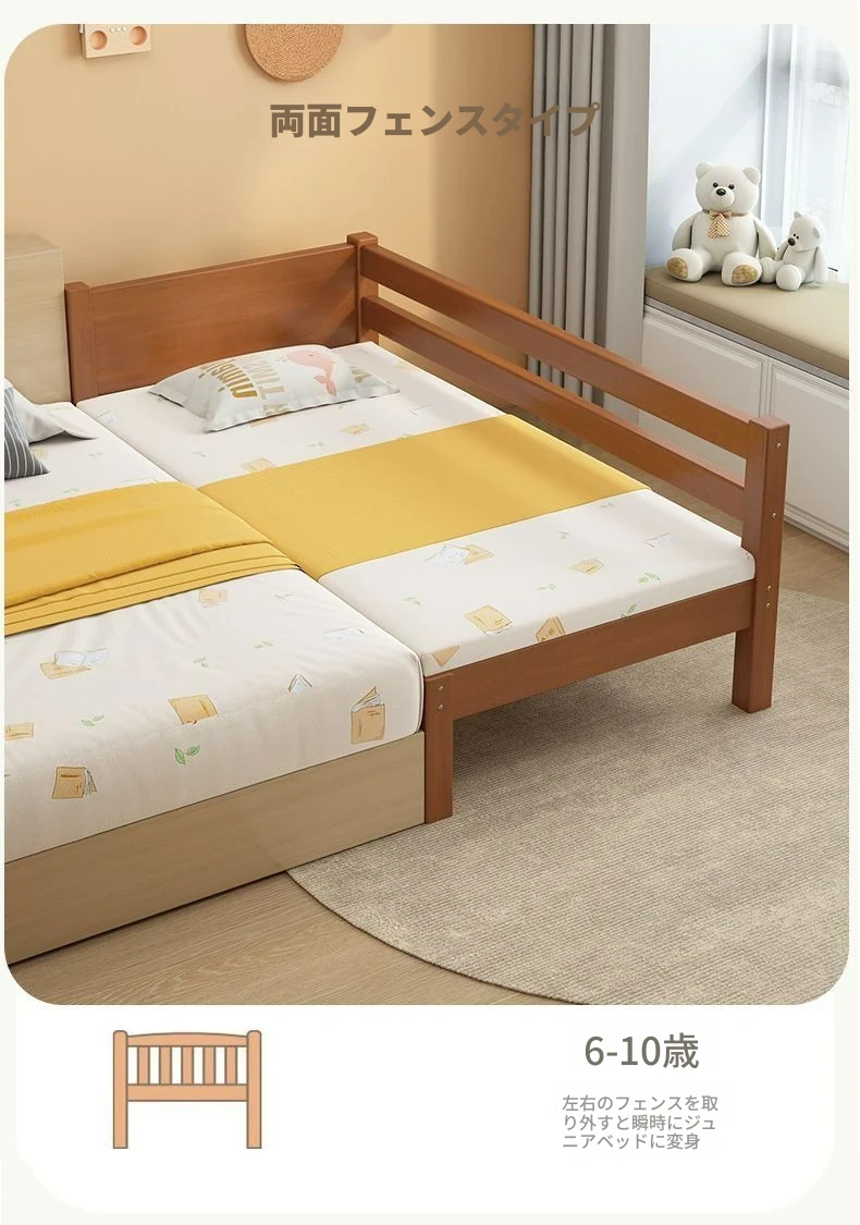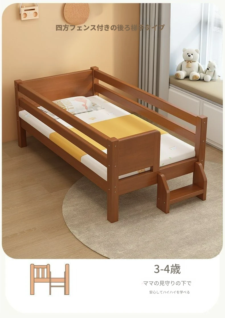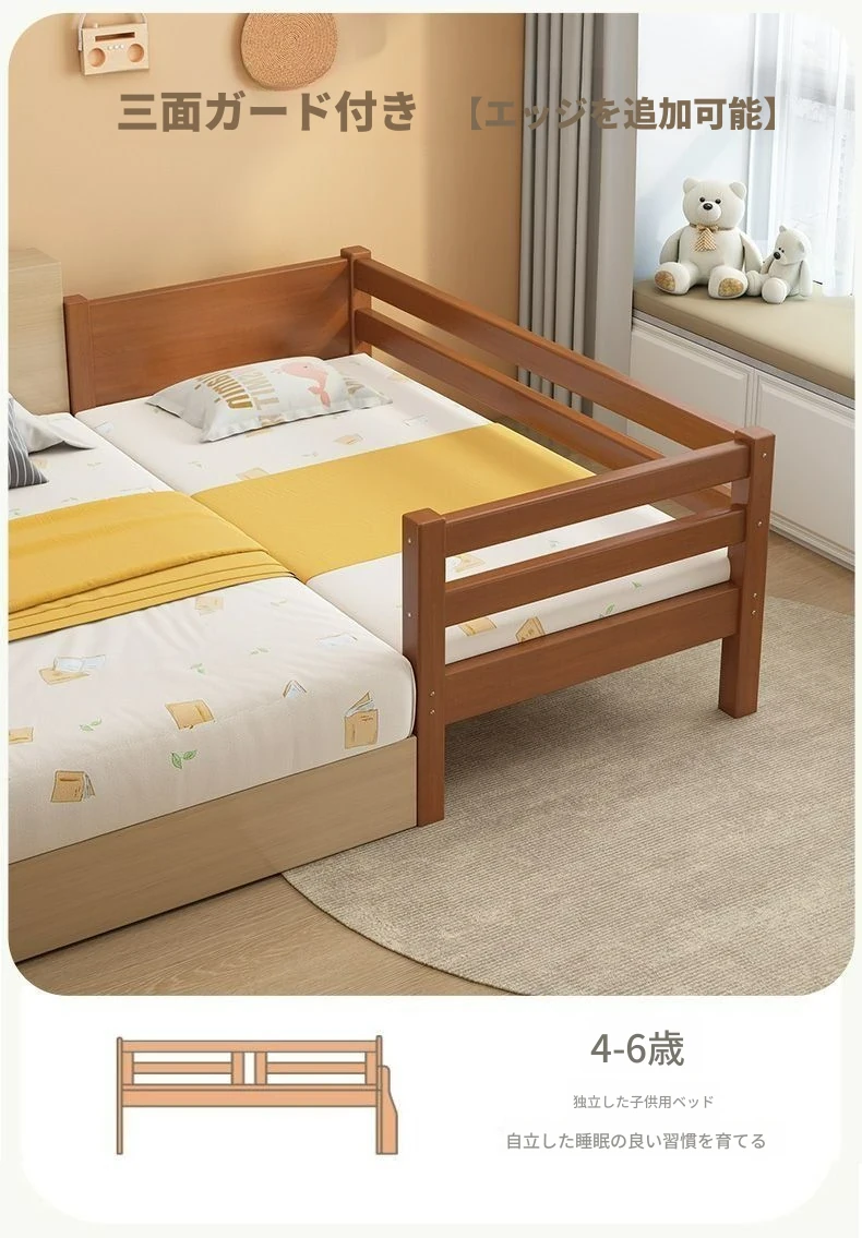 頑丈な無垢材使用!安全ガード付きの厚みのあるクルミ材ベビーベッド。男の子・女の子にぴったりなシングルベッド、子供用パズルベッドとしても最適!安心してお休みいただける快適な寝床をご提供します。