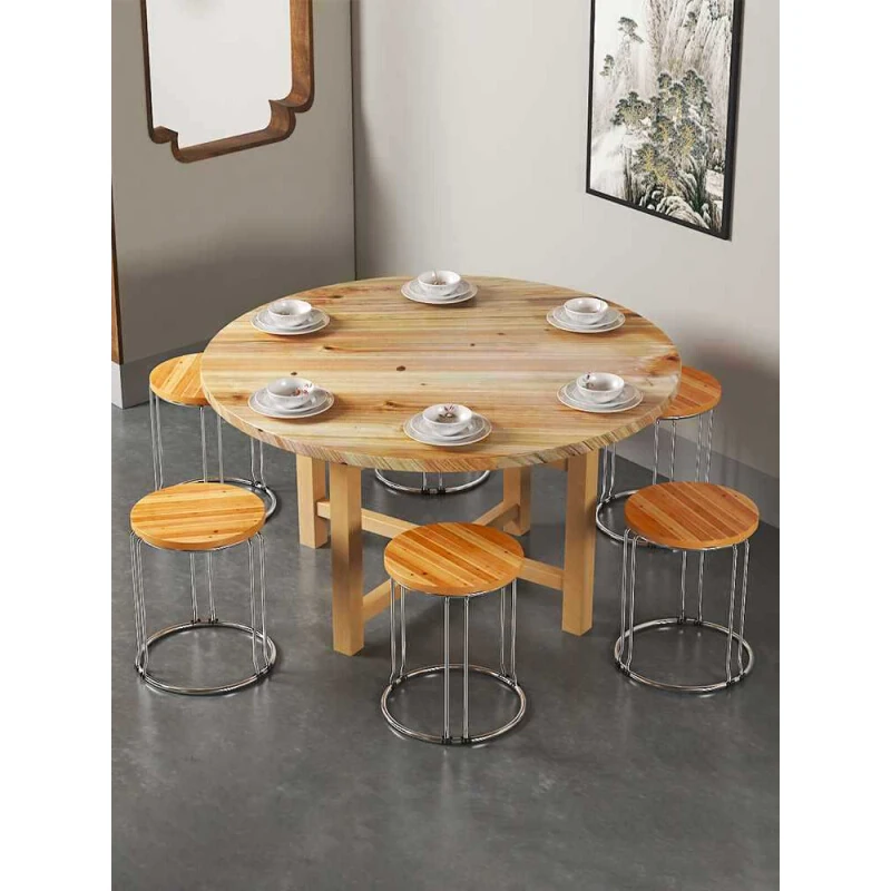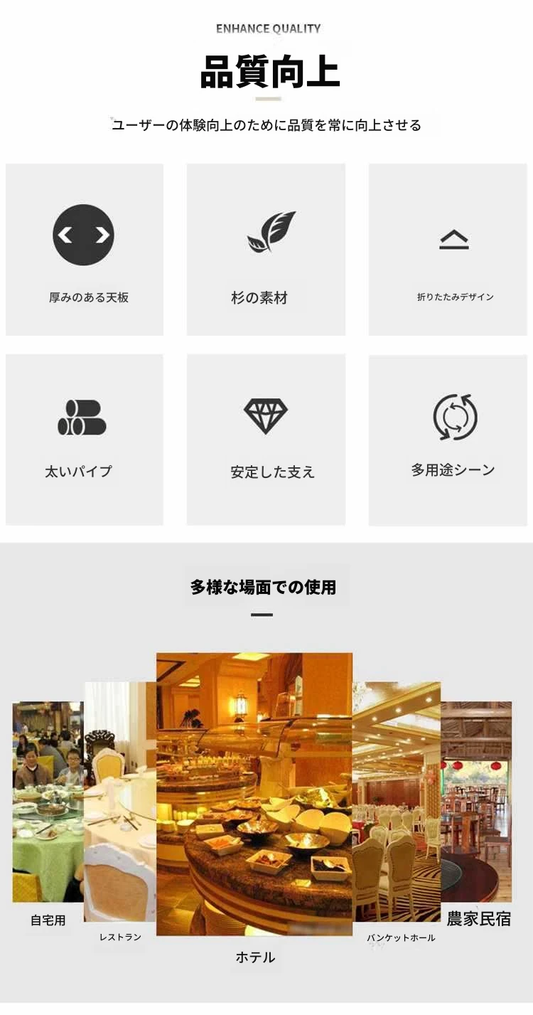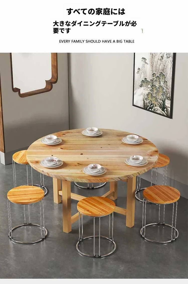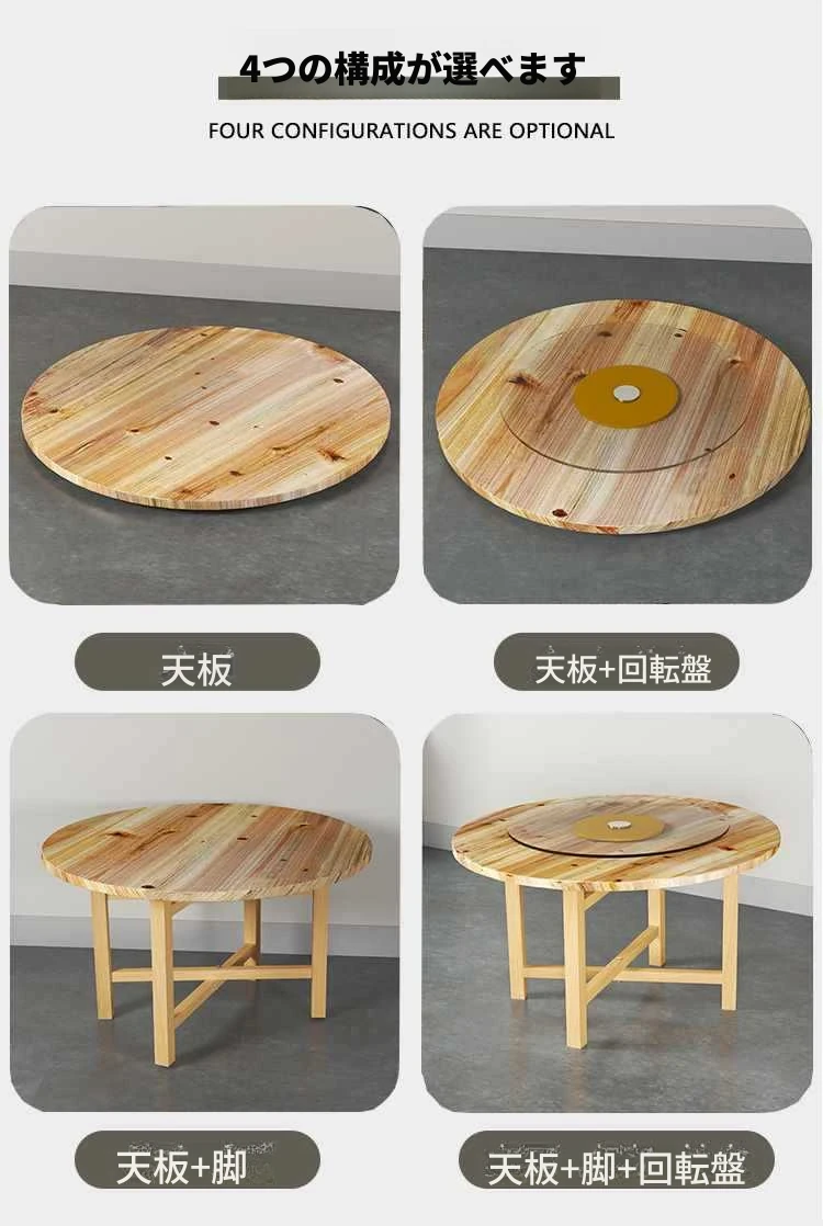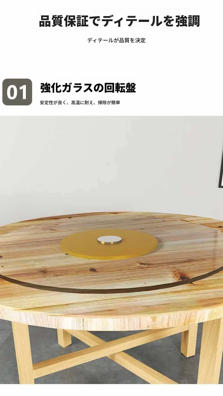 厚手作!実木製ラウンドダイニングテーブル&チェアセット、折りたたみ式で回転盤付き。ホテルやレストランに最適な大きなテーブル、夜食にもぴったり!