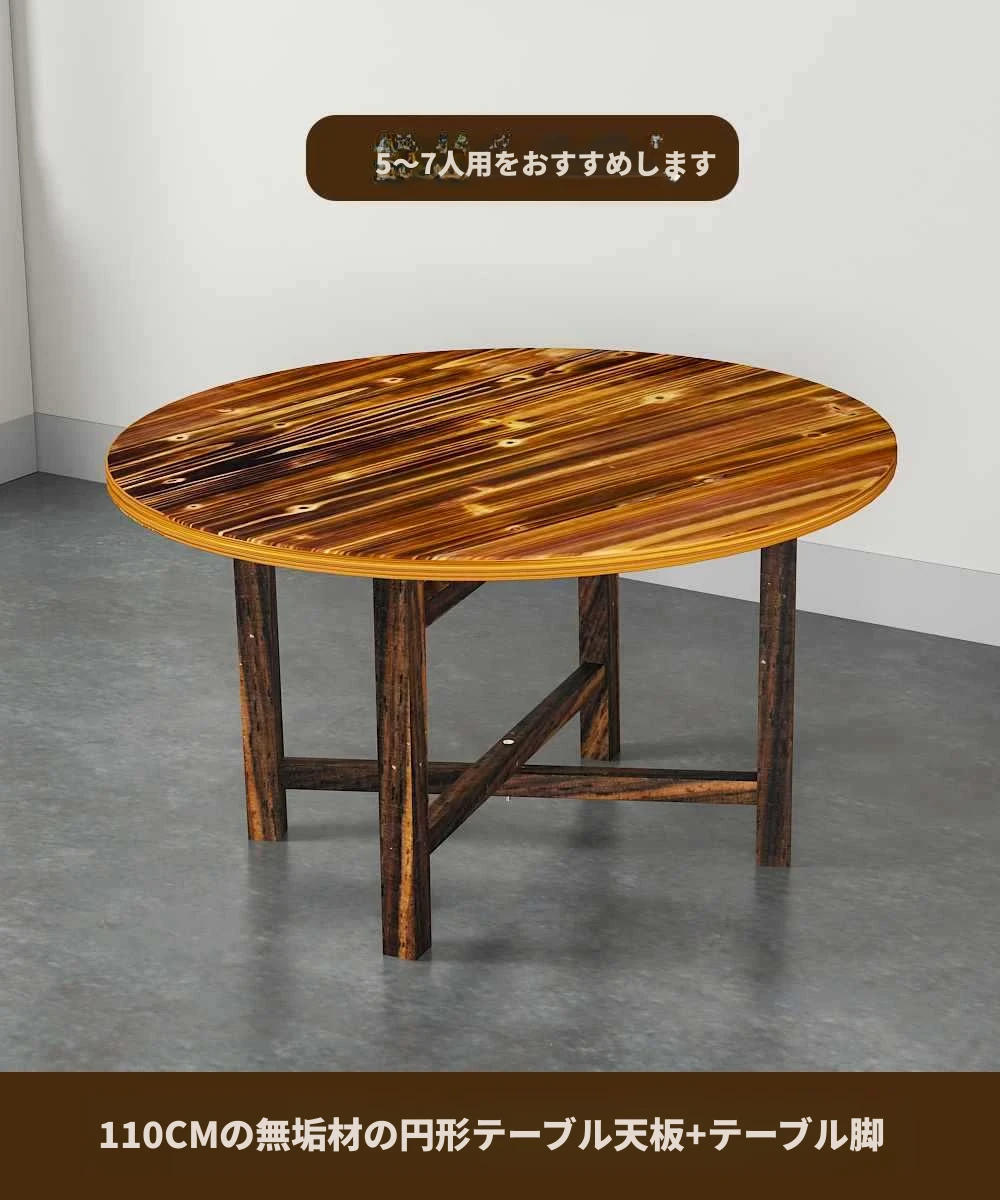 1.1メートル炭化実木テーブル天板+実木テーブル脚
