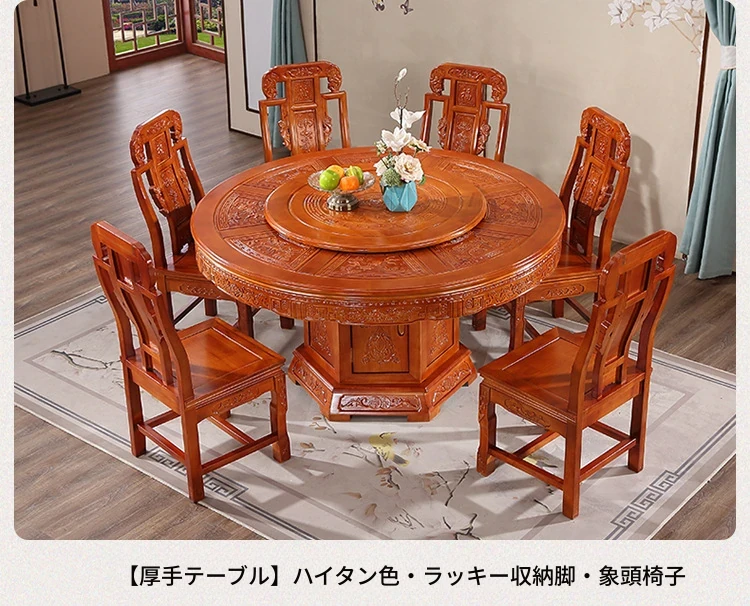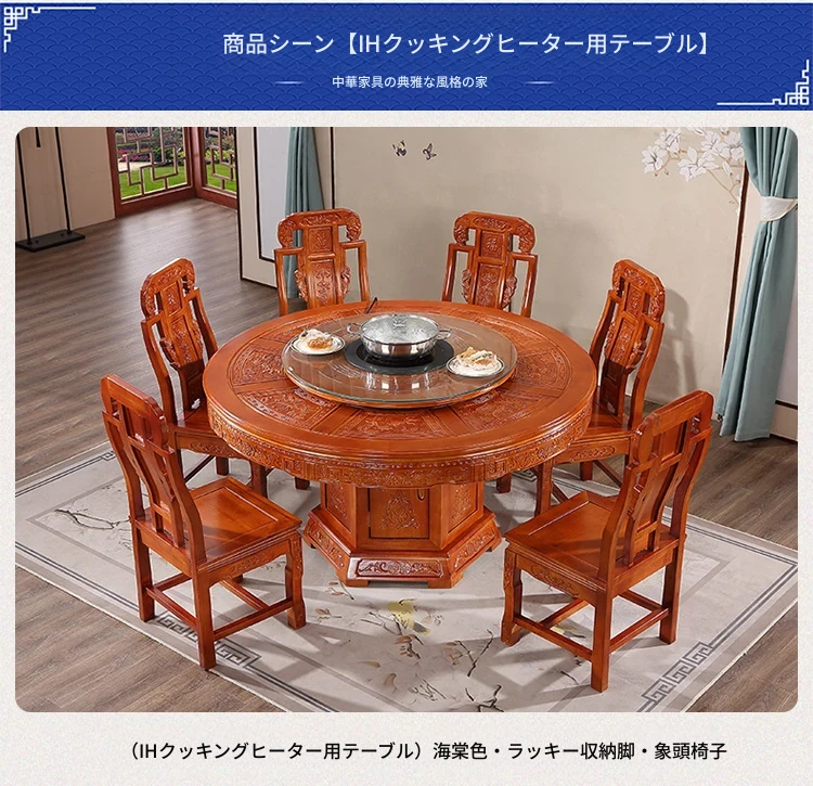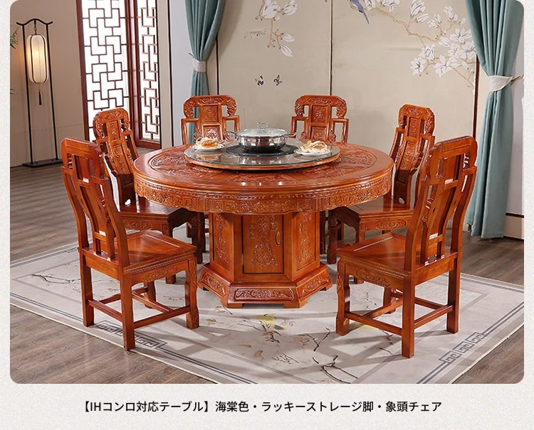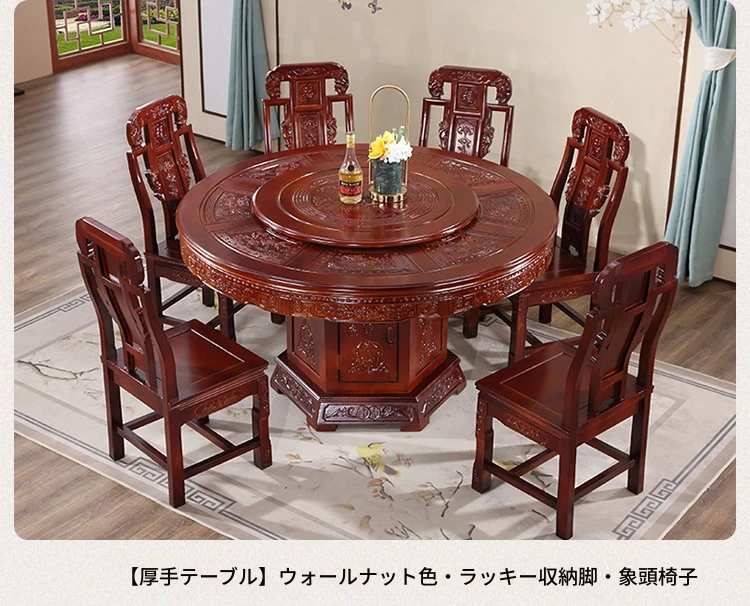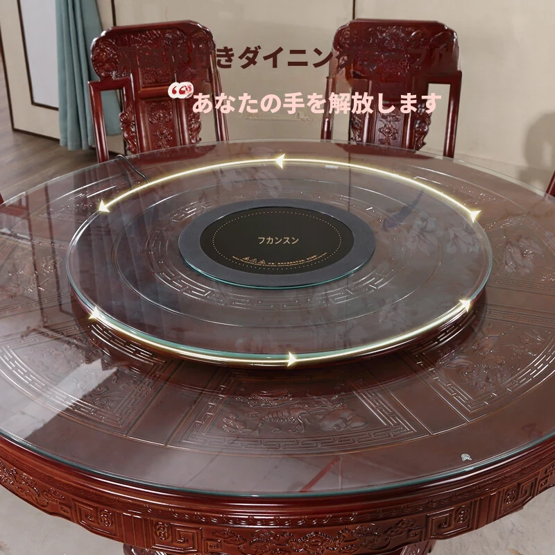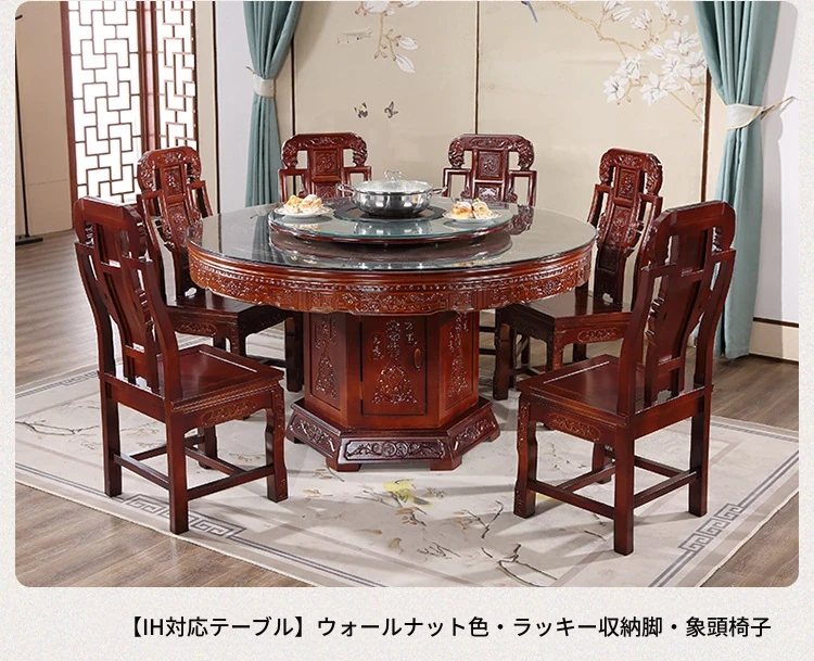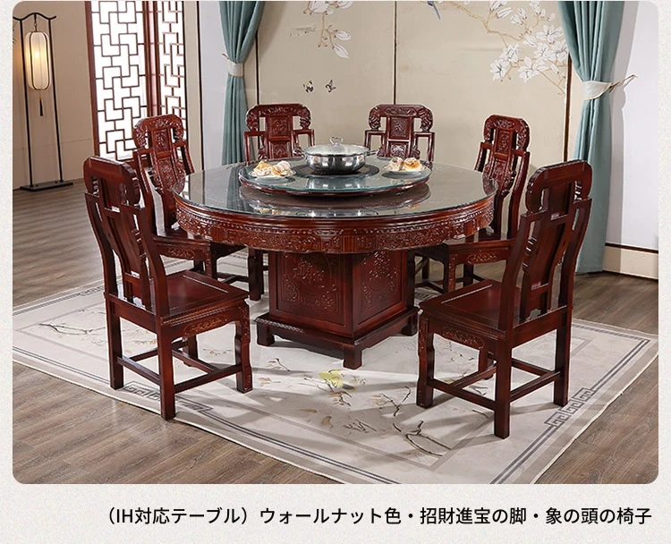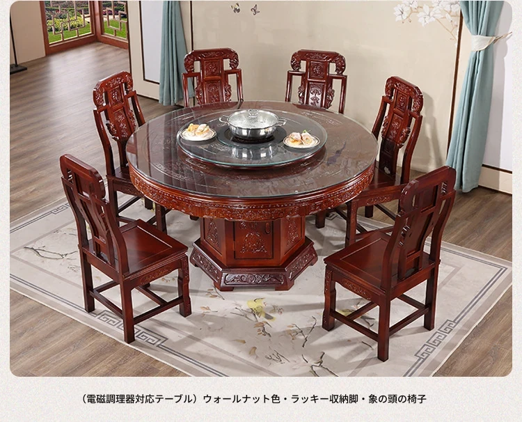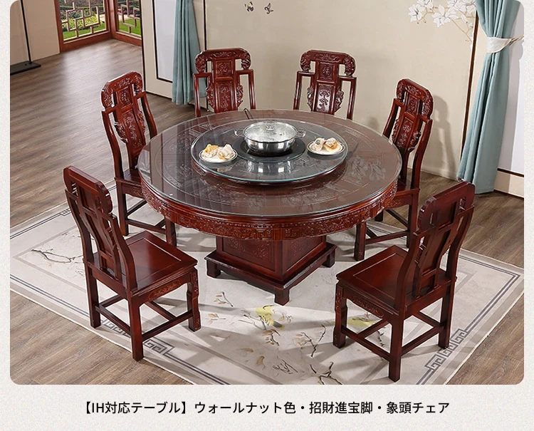 厚手タイプ1.2/1.3メートルIHコンロテーブル+6脚の象頭椅子(ガラス+回転盤付き)