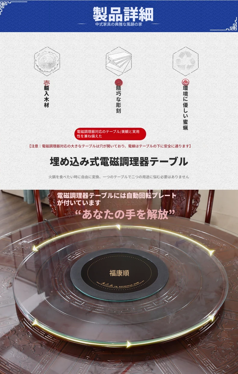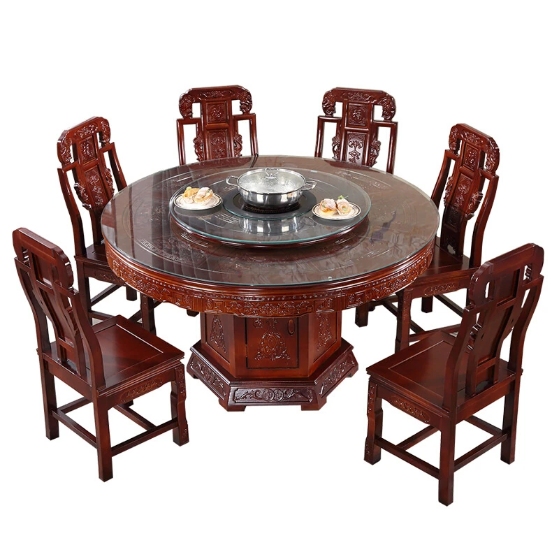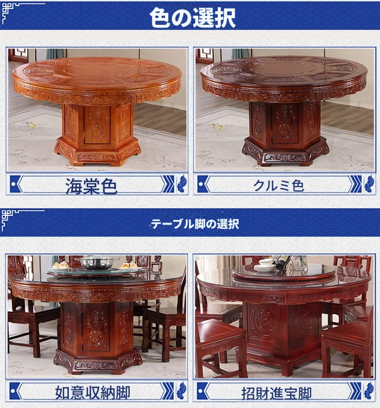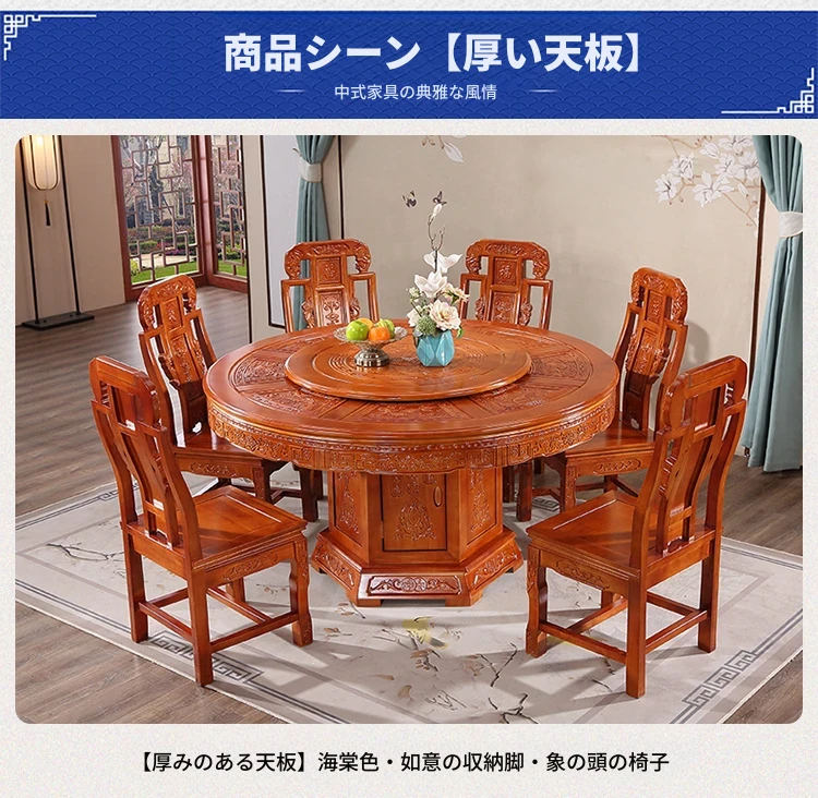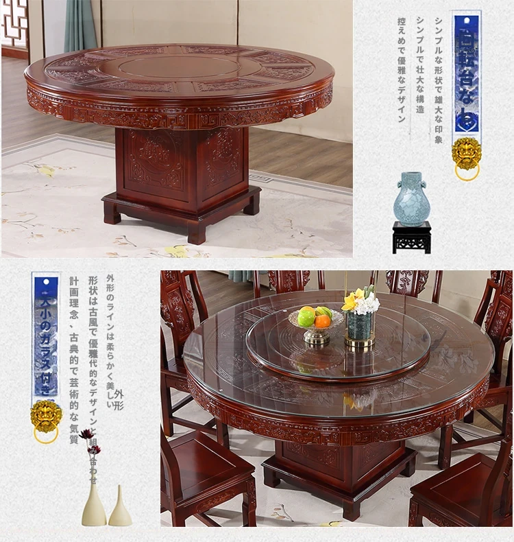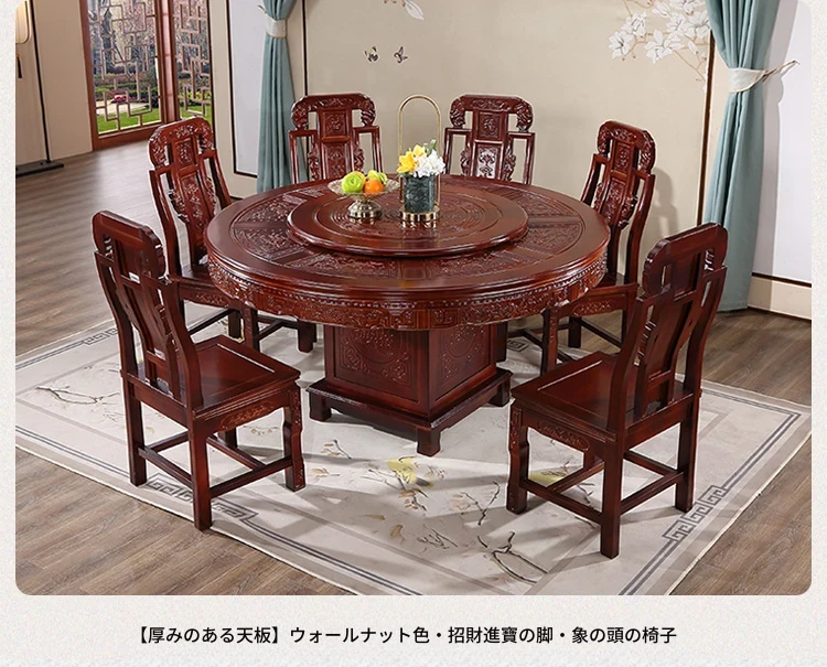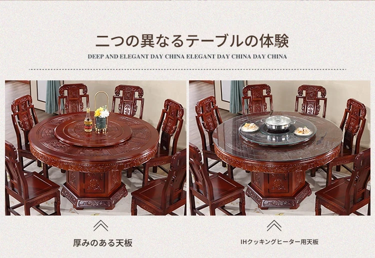 厚手タイプ1.2/1.3メートルIHコンロテーブル+6脚の象頭椅子(ガラス+回転盤付き)