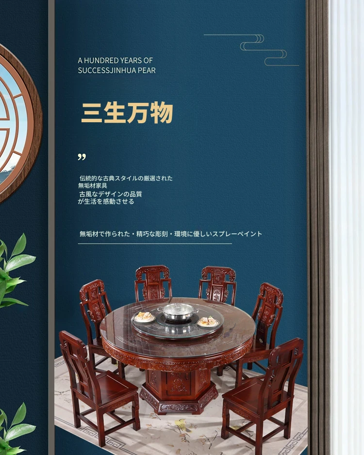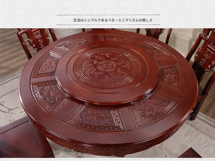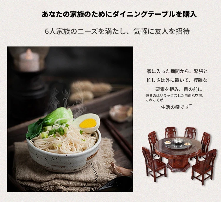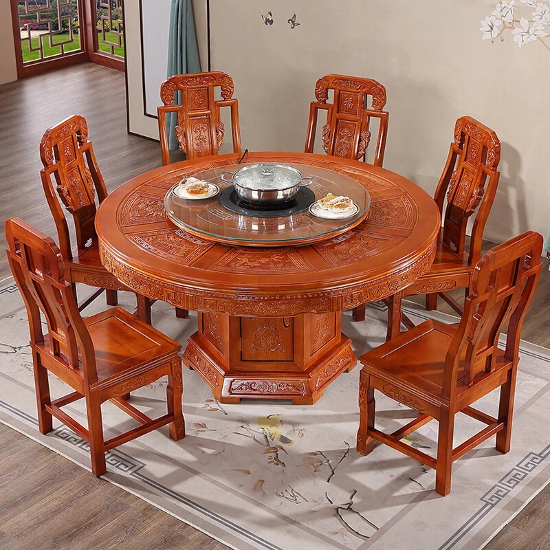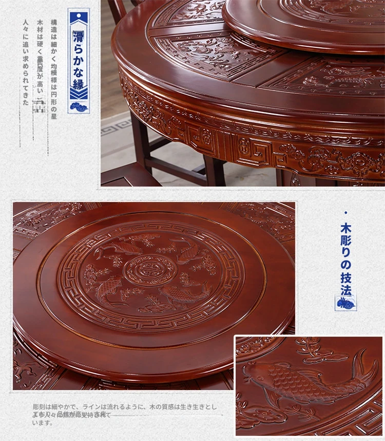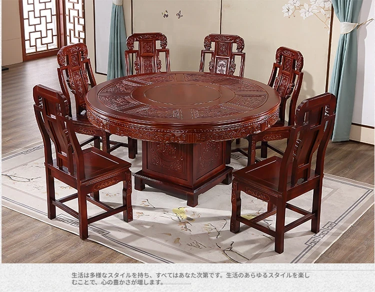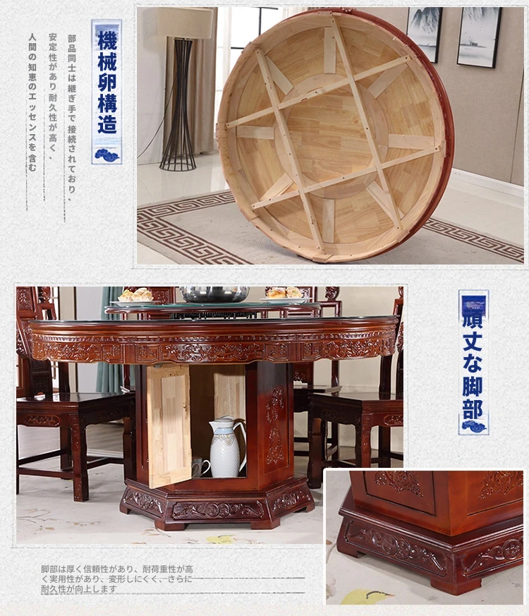 厚手タイプ1.2/1.3メートルIHコンロテーブル+6脚の象頭椅子(ガラス+回転盤付き)
