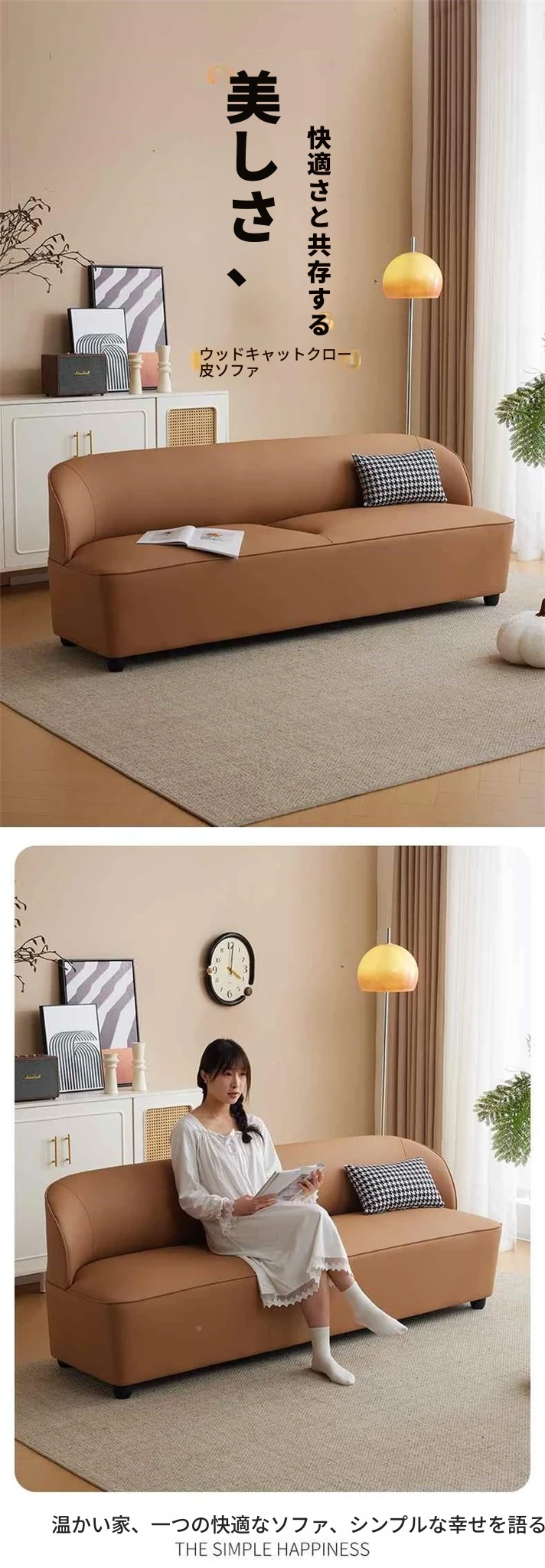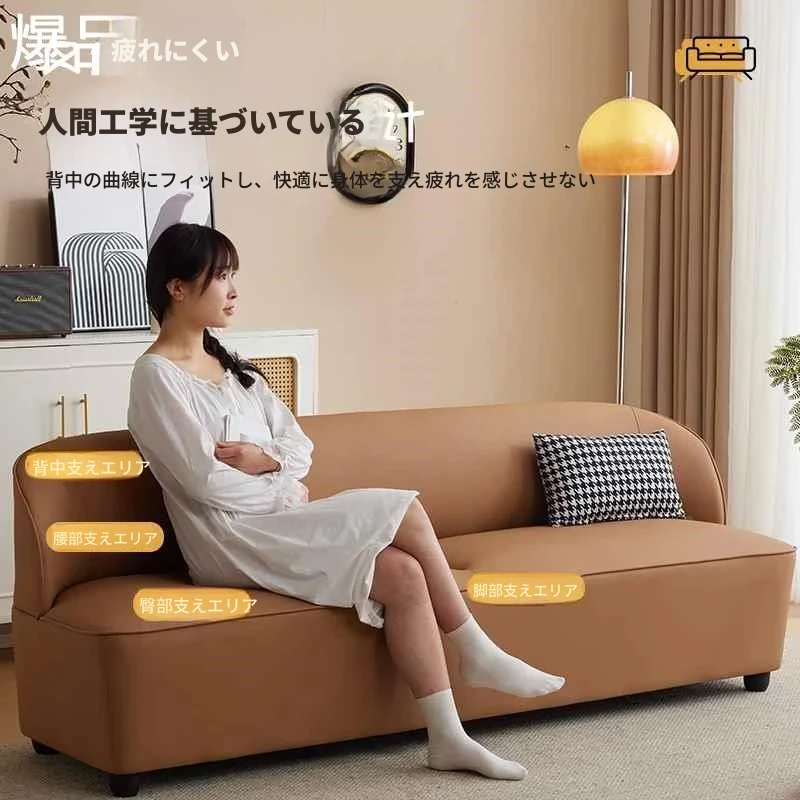 ミニマルデザインの北欧スタイル2人掛け・3人掛けソファ|小スペースにぴったりのT字型|カフェ、理容室、服装店にも最適なレザー&ファブリックコンビネーション!おしゃれな空間を演出します。