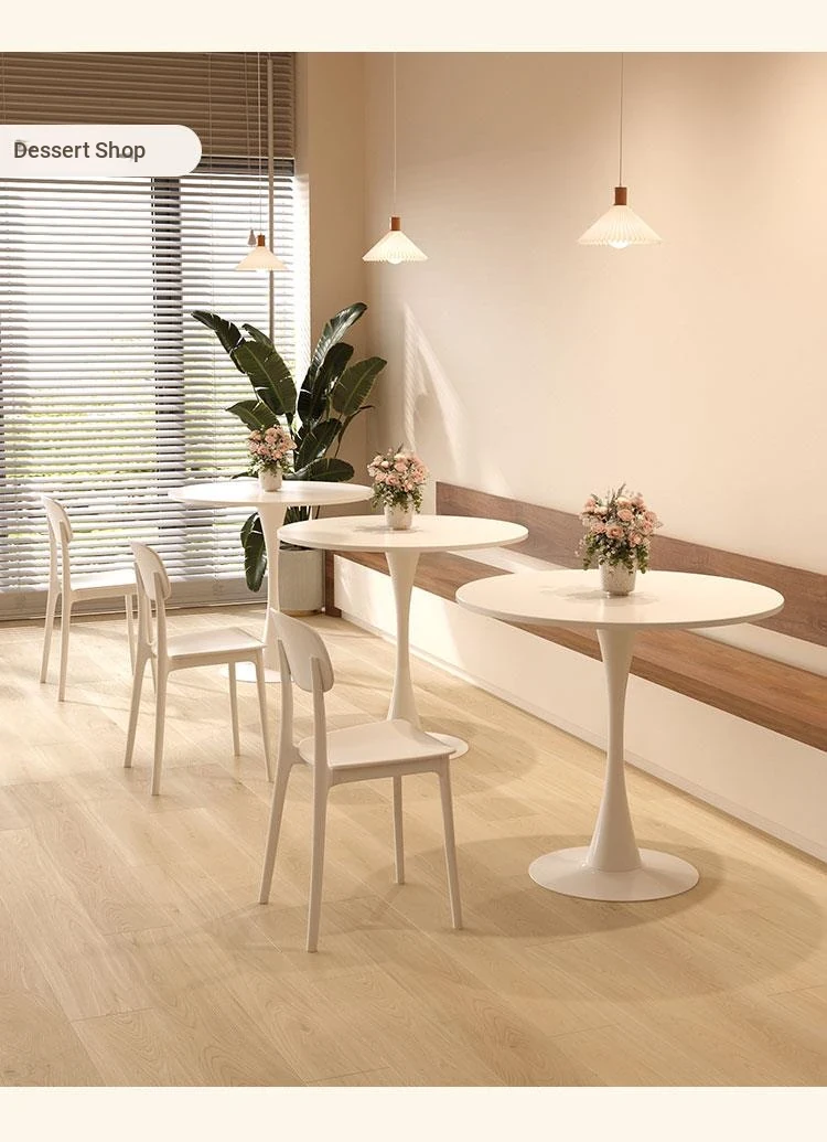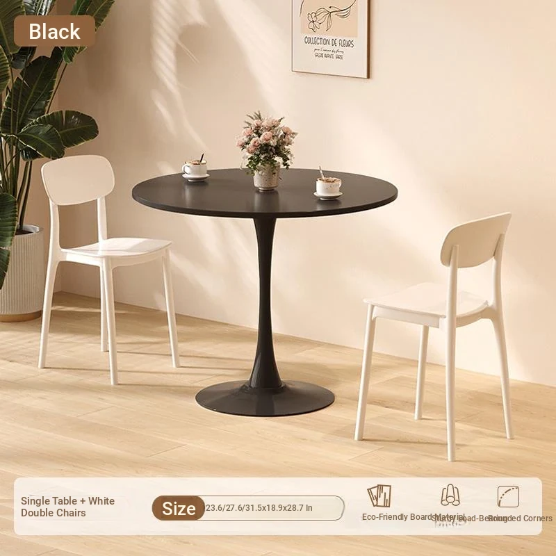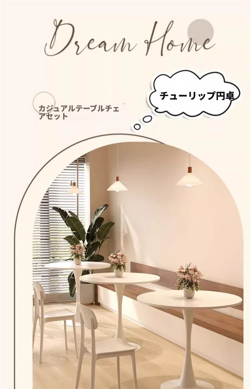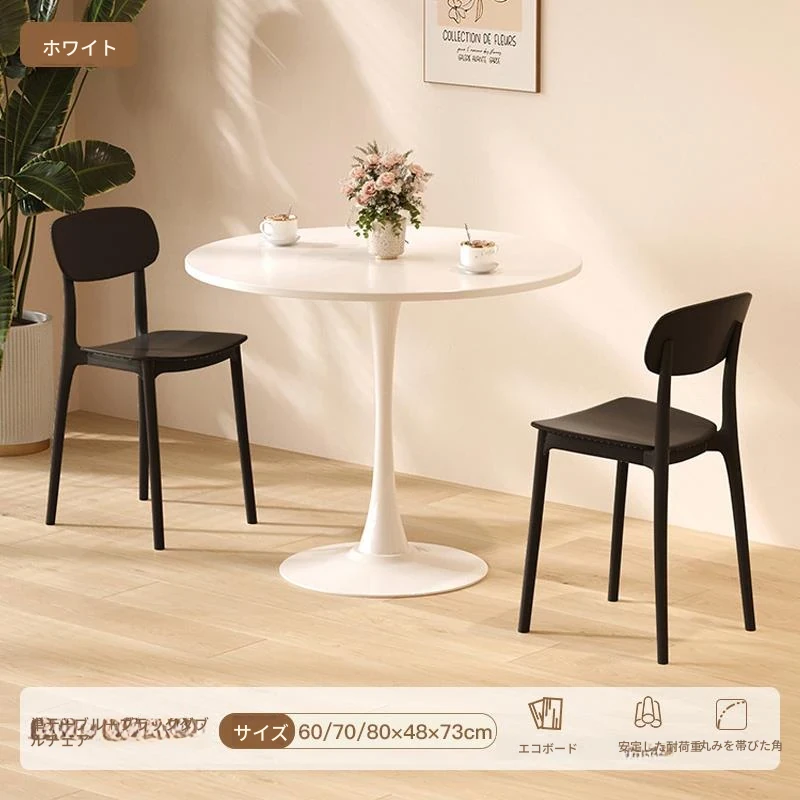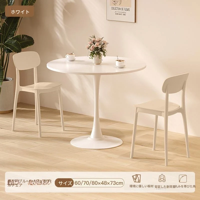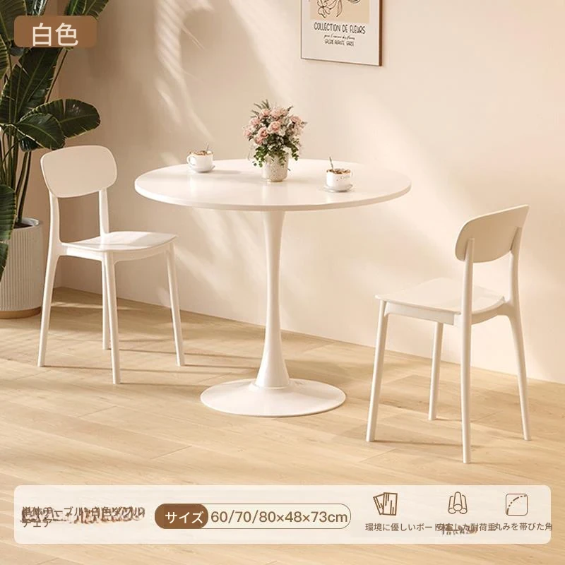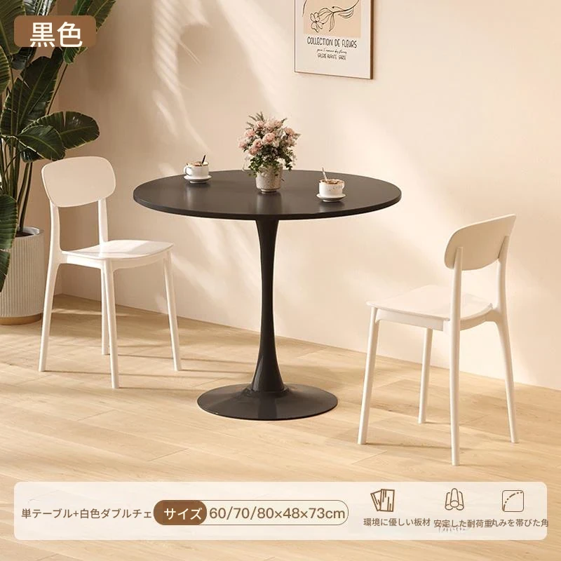 シンプルでおしゃれなカフェスタイルの商用テーブルセット!ミニマリストデザインの円形テーブルと椅子の組み合わせで、ティータイムを特別なものに。おしゃれなバルコニーや喫茶店に最適!