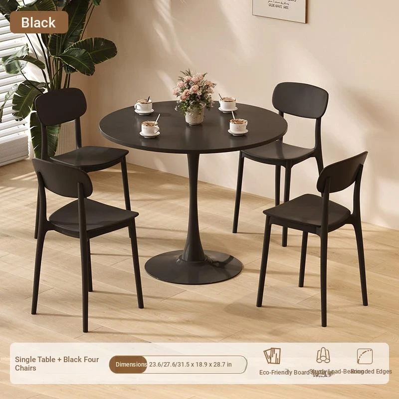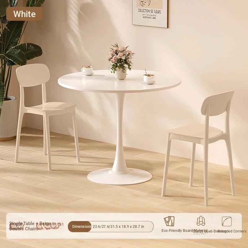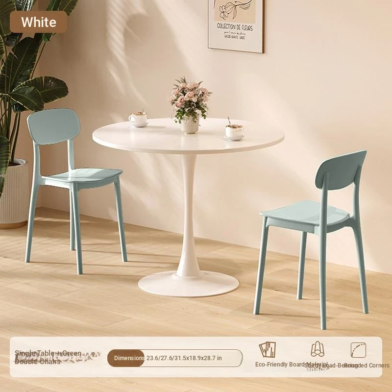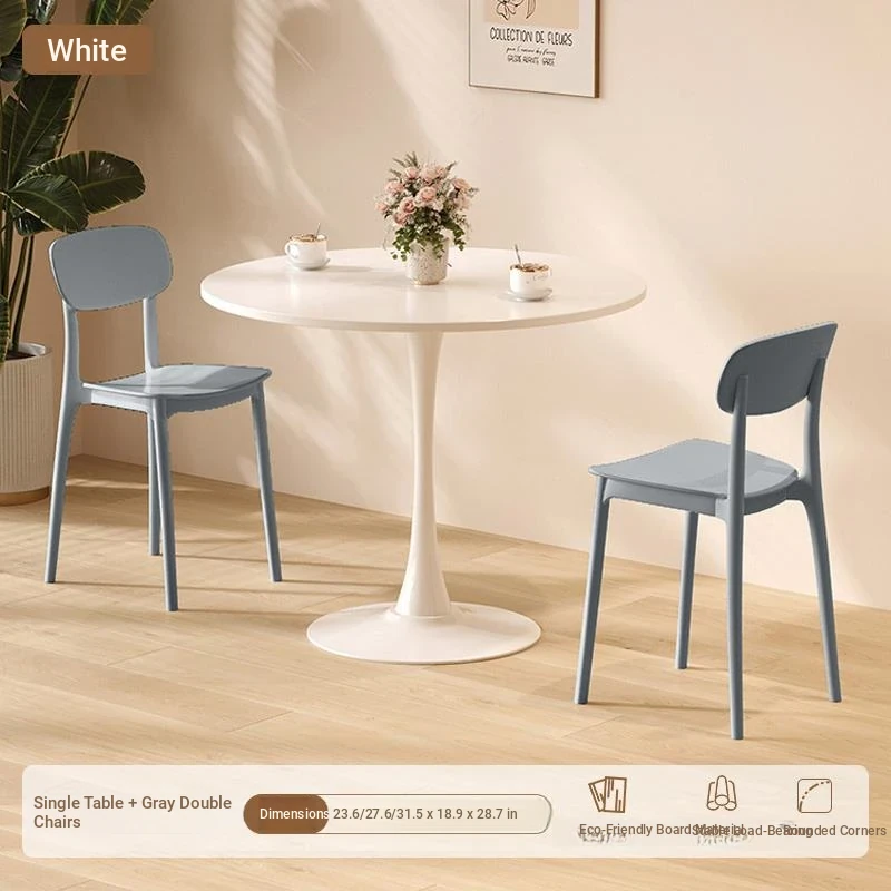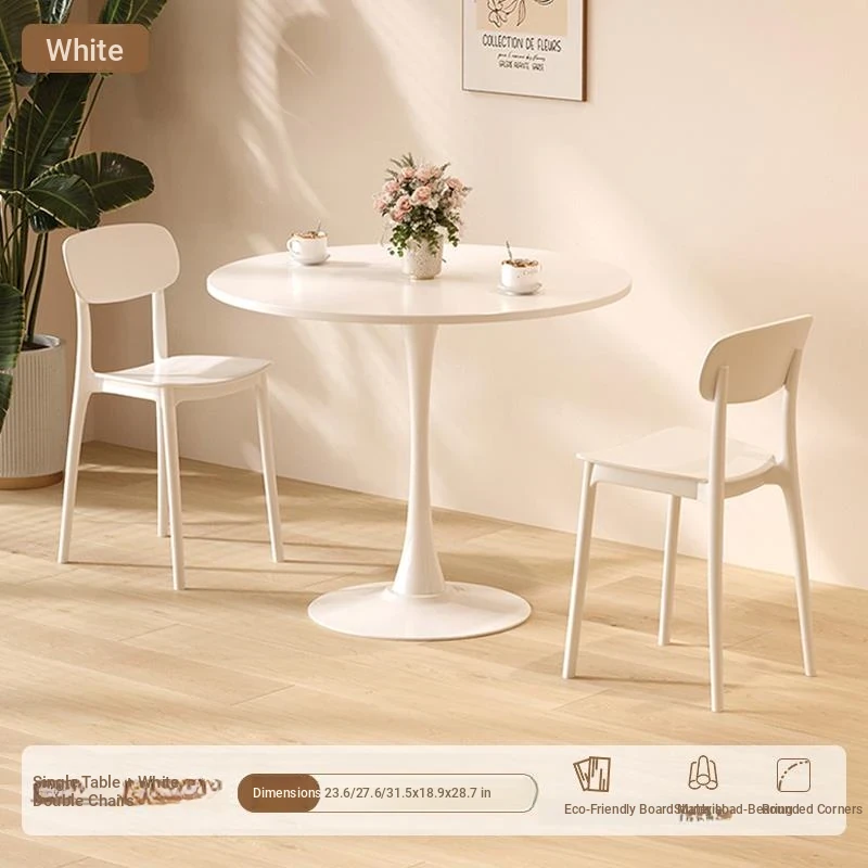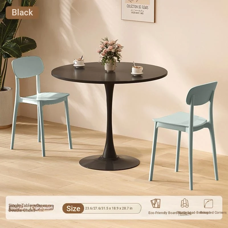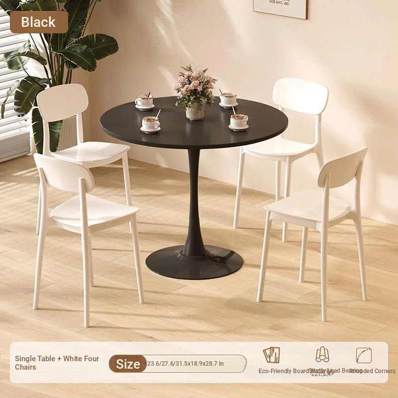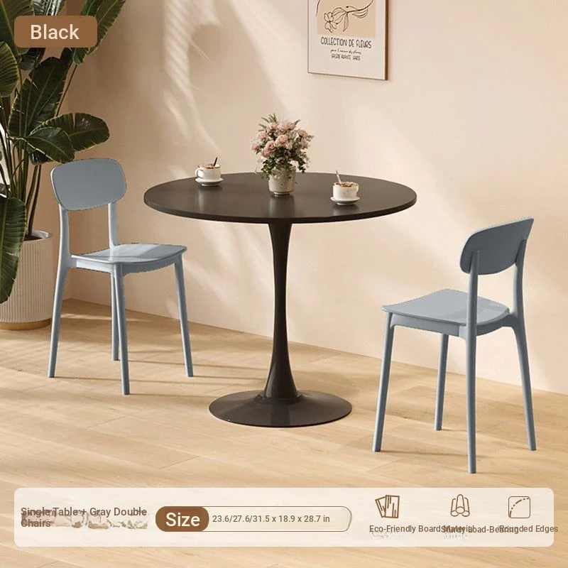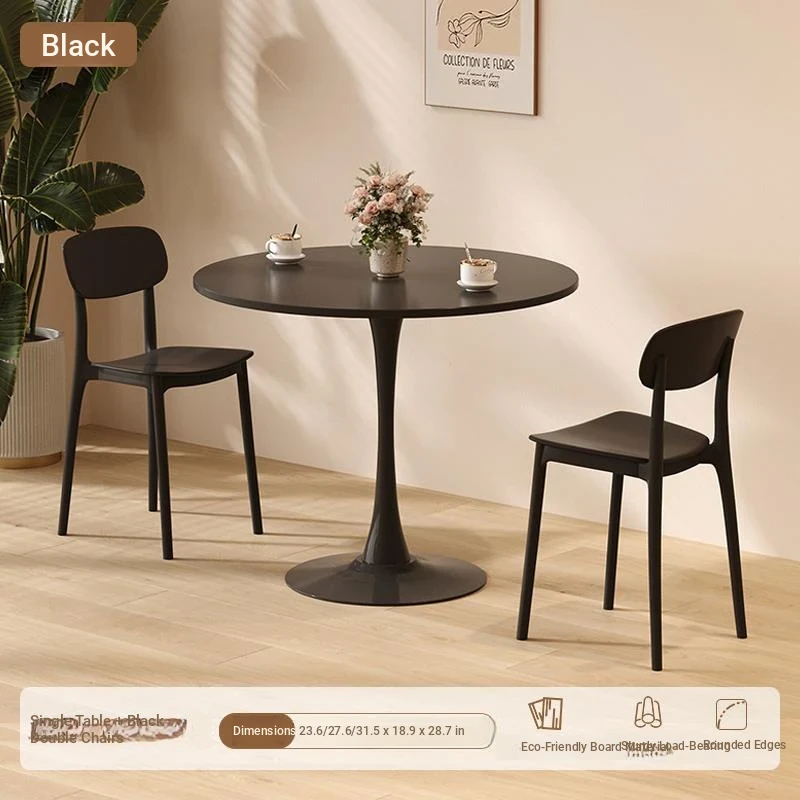 シンプルでおしゃれなカフェスタイルの商用テーブルセット!ミニマリストデザインの円形テーブルと椅子の組み合わせで、ティータイムを特別なものに。おしゃれなバルコニーや喫茶店に最適!