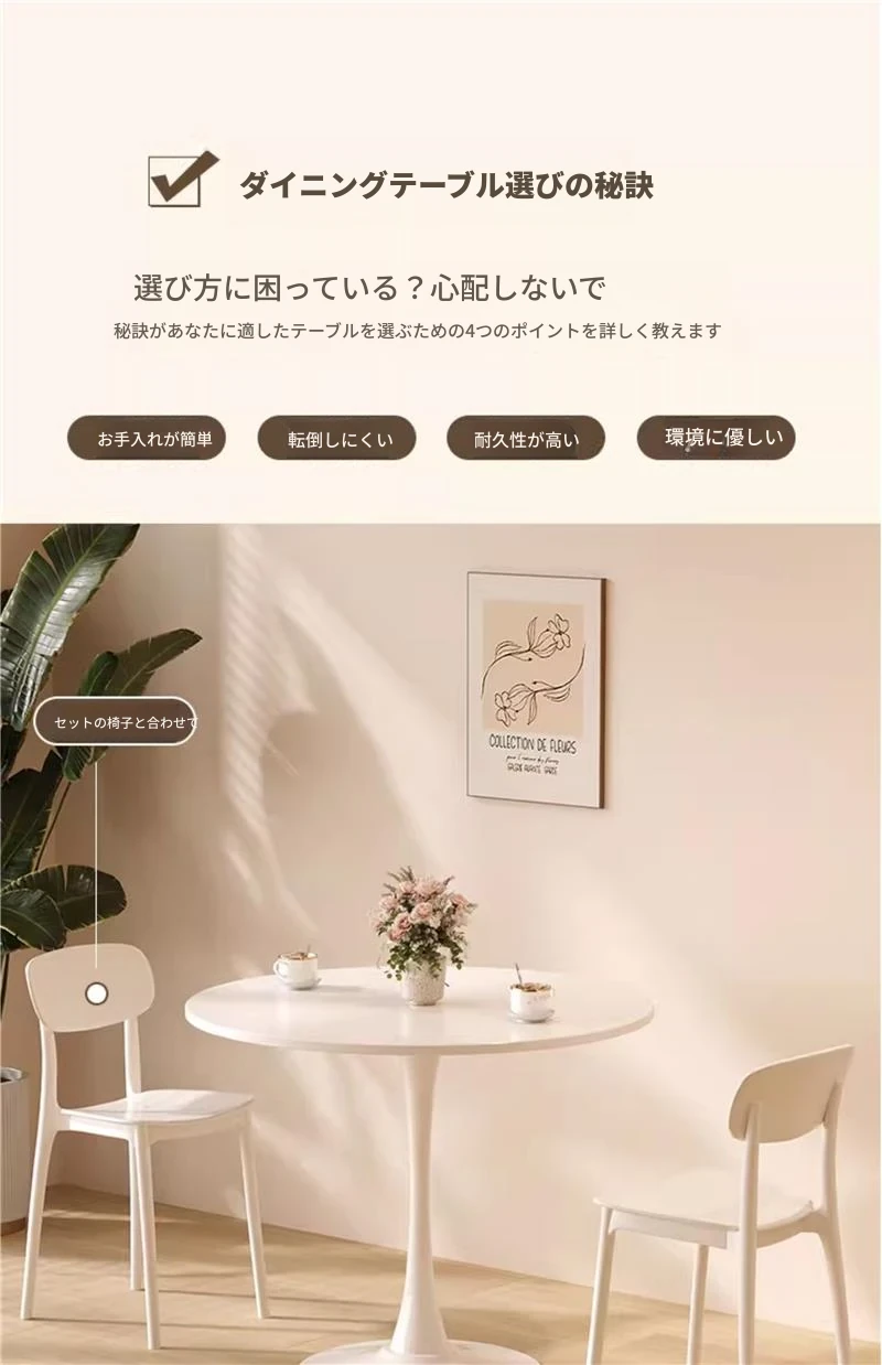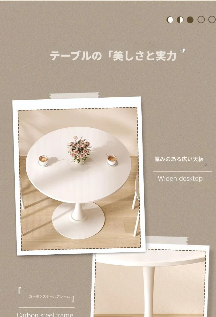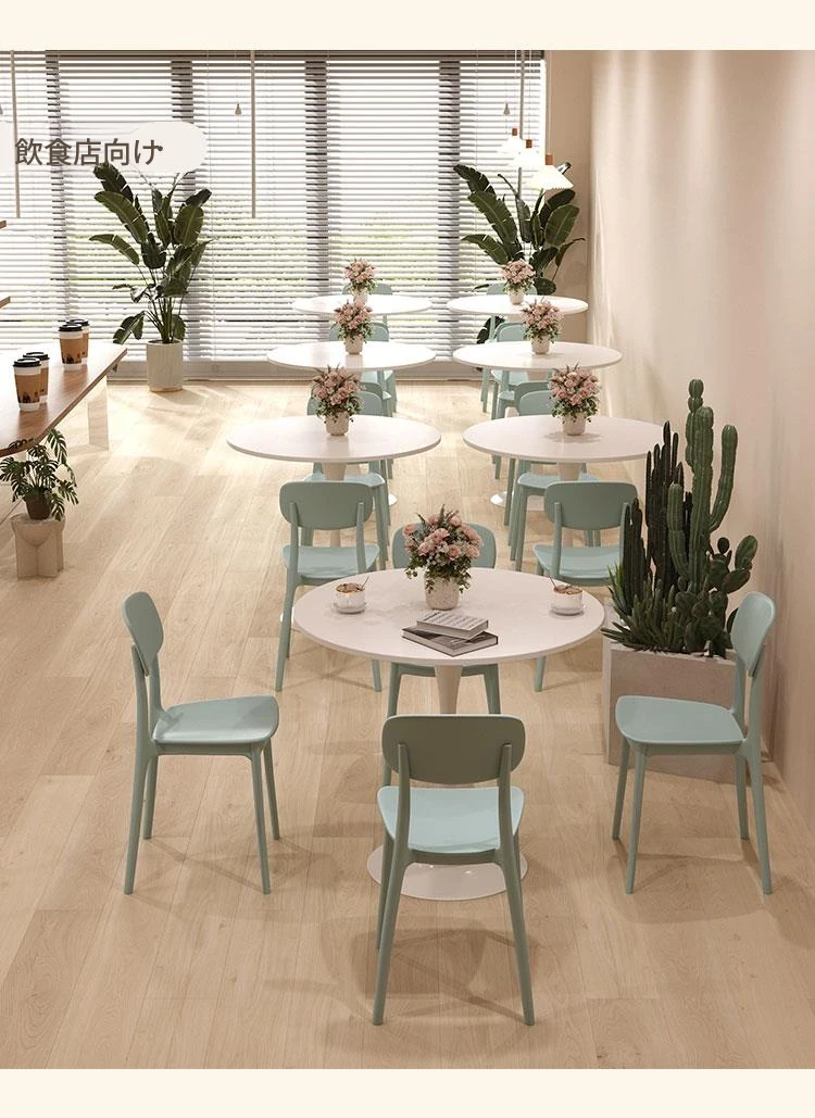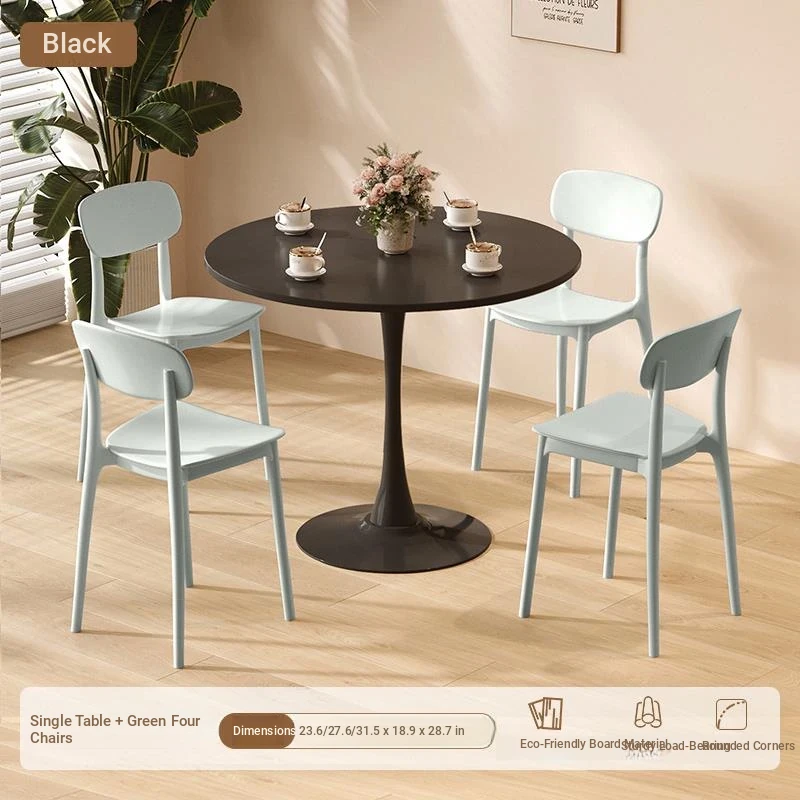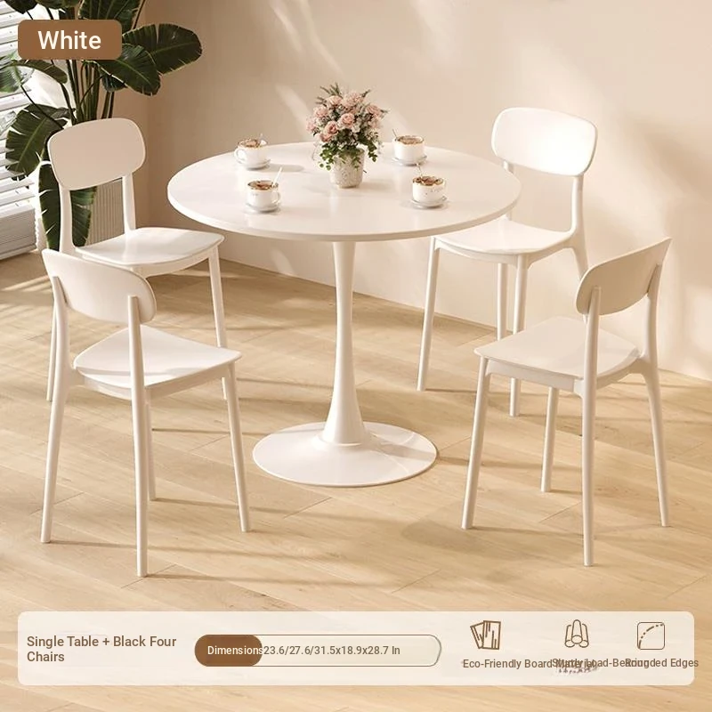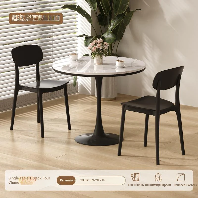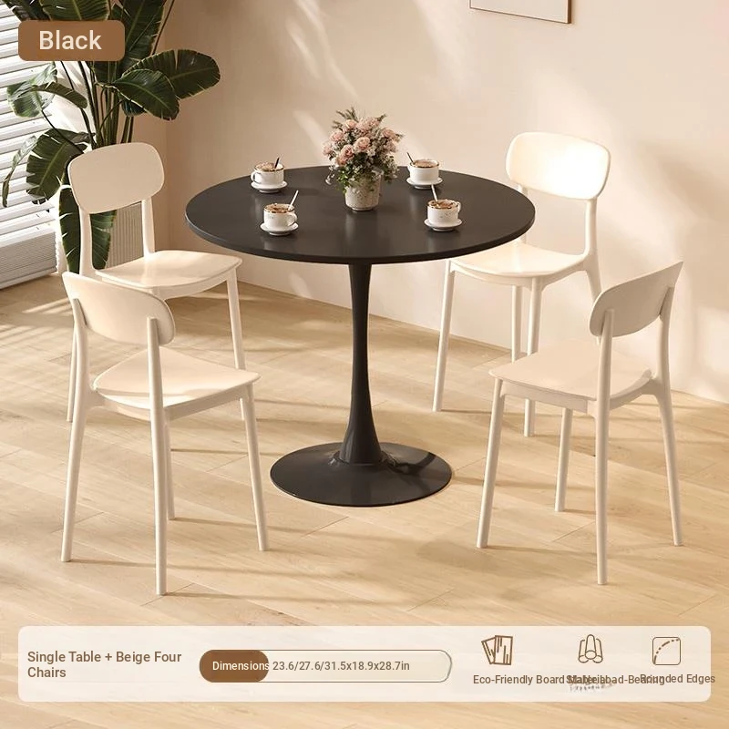 シンプルでおしゃれなカフェスタイルの商用テーブルセット!ミニマリストデザインの円形テーブルと椅子の組み合わせで、ティータイムを特別なものに。おしゃれなバルコニーや喫茶店に最適!