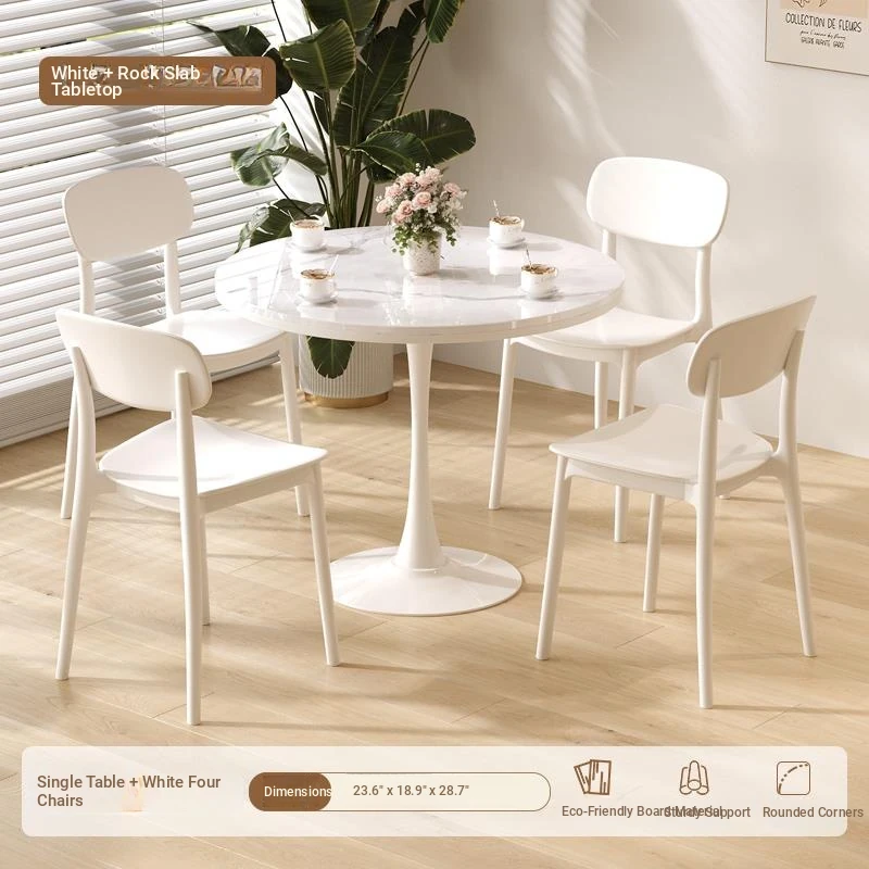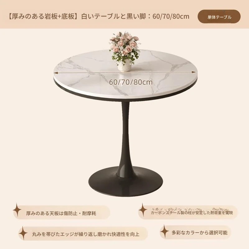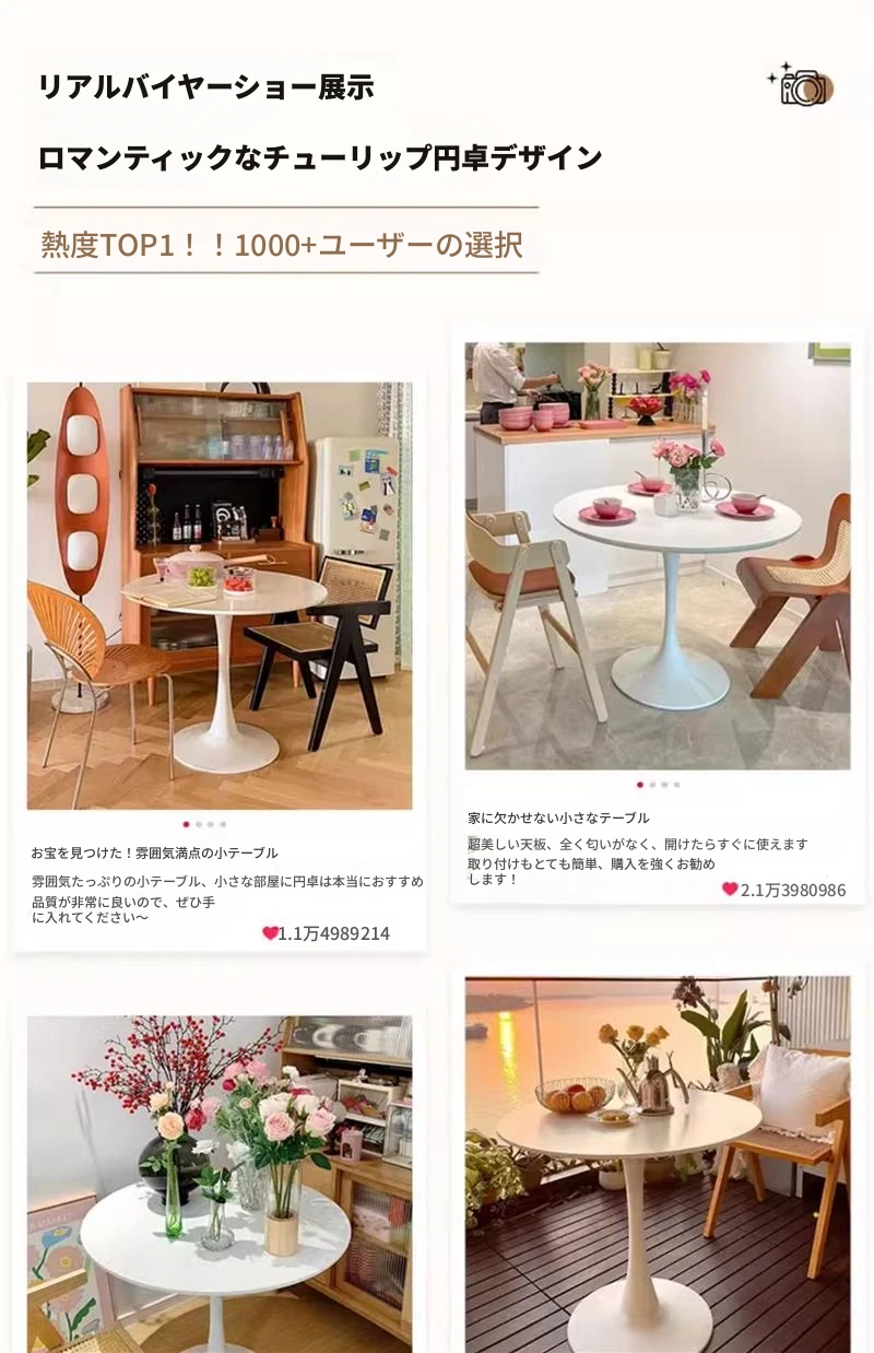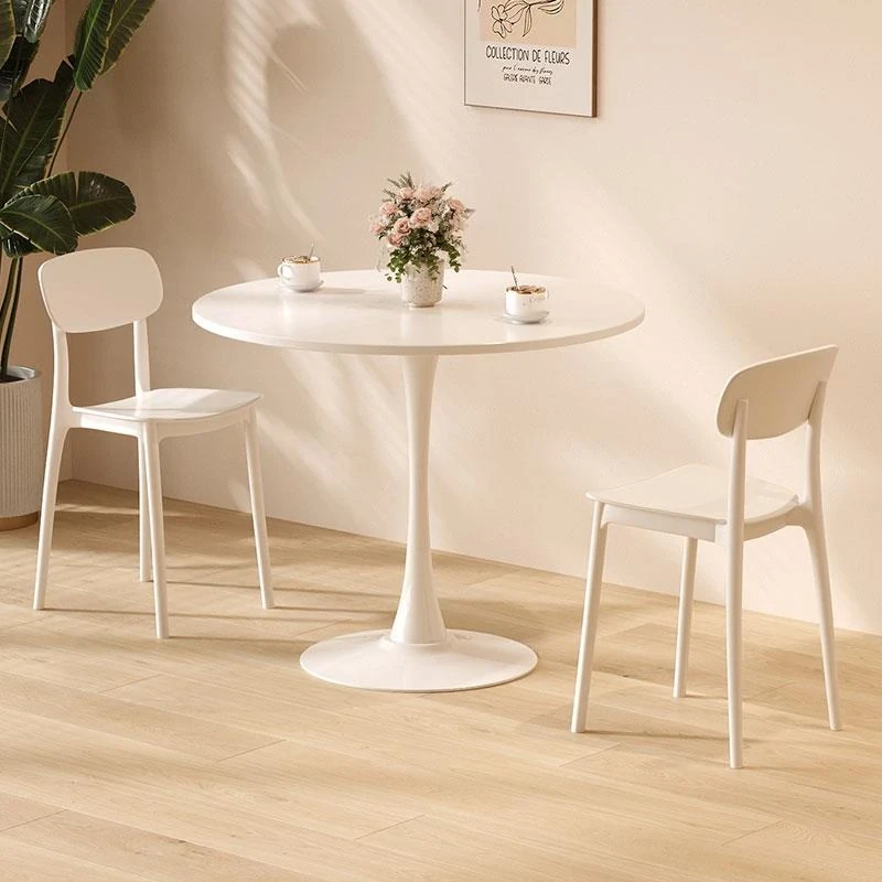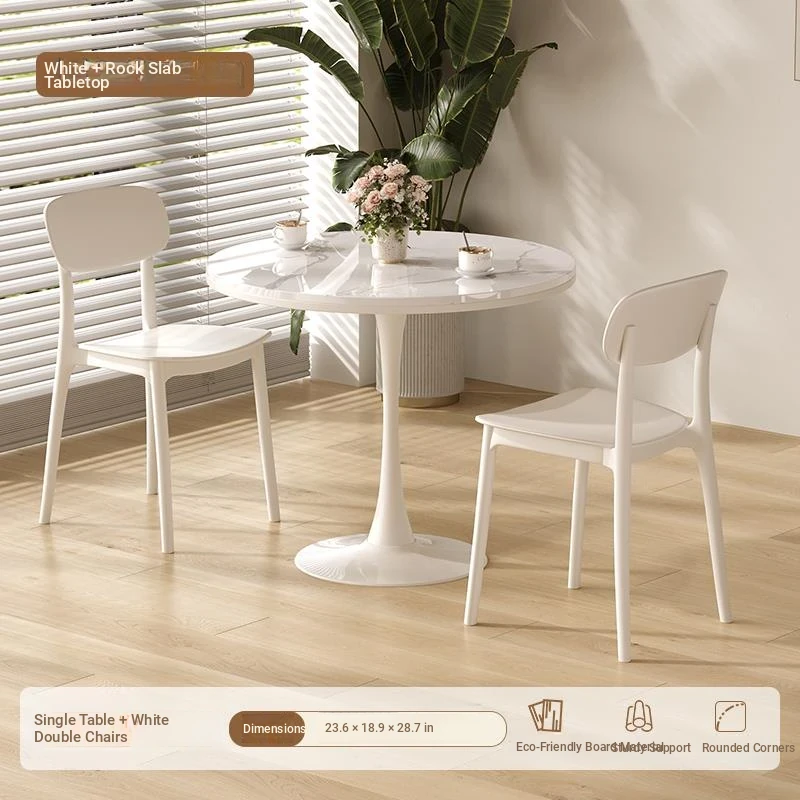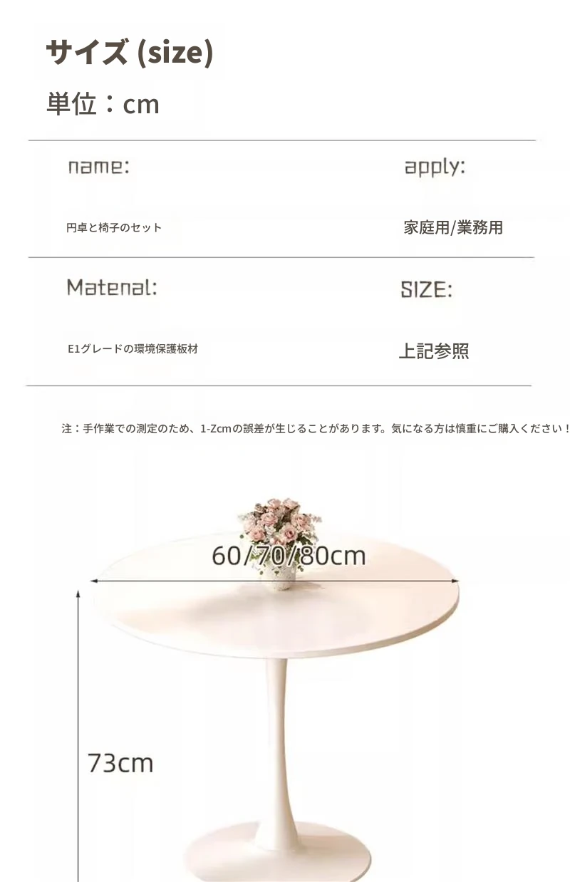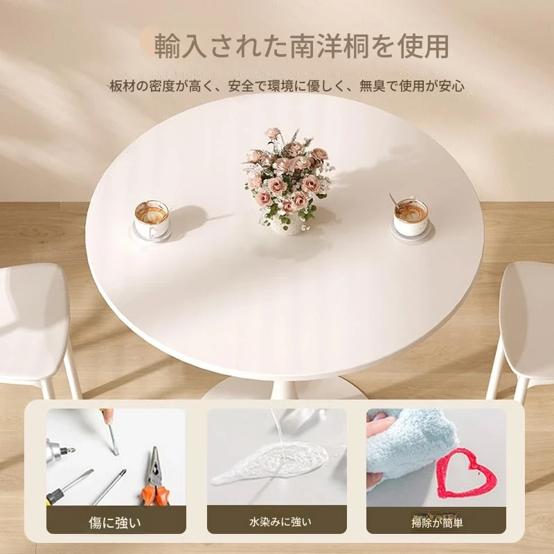 シンプルでおしゃれなカフェスタイルの商用テーブルセット!ミニマリストデザインの円形テーブルと椅子の組み合わせで、ティータイムを特別なものに。おしゃれなバルコニーや喫茶店に最適!