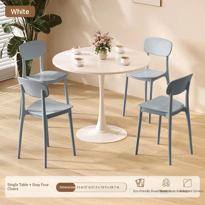 白テーブル+灰色椅子*4