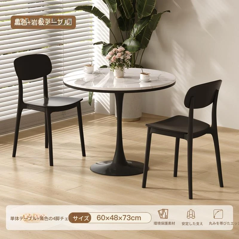 【厚手岩板+底板】白テーブル黒脚+4黒椅子