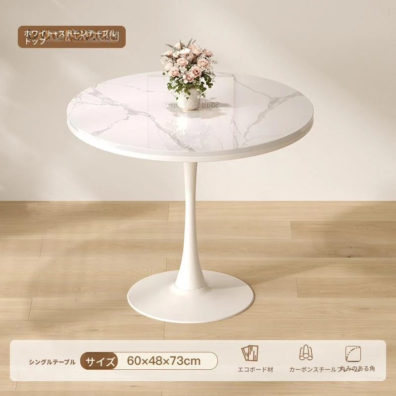 【厚手岩板+底板】白テーブル白脚+4白椅子