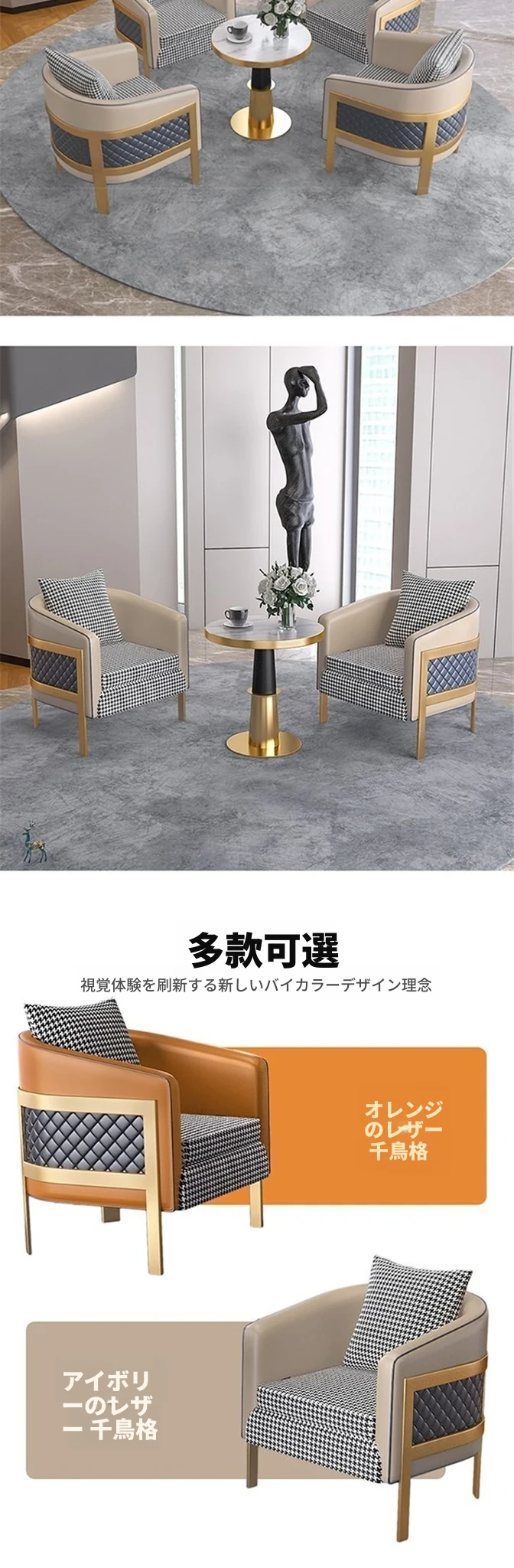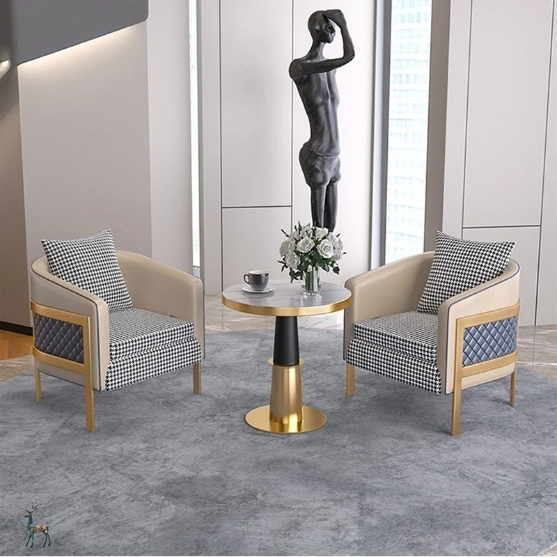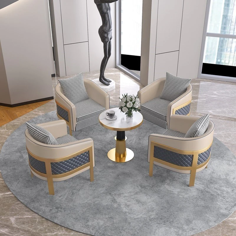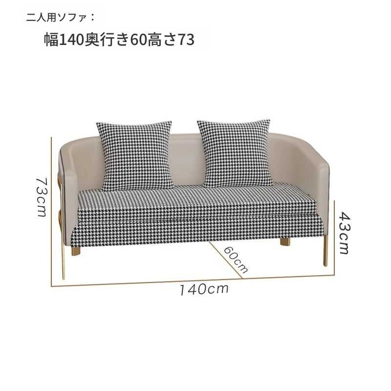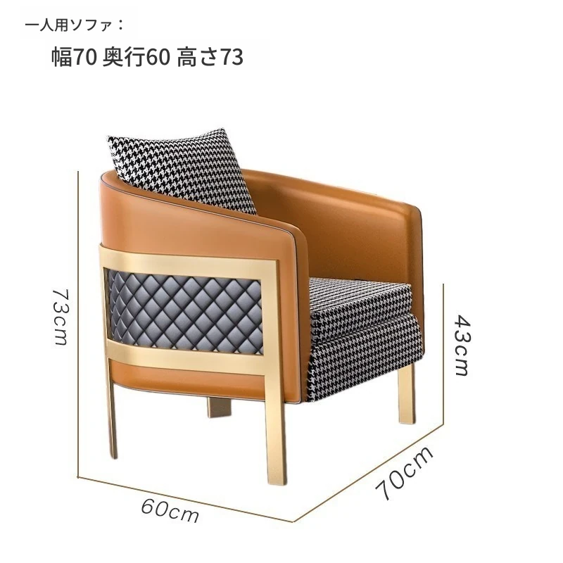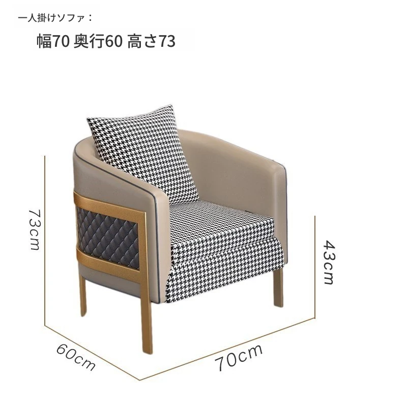 ラグジュアリーなモダン千鳥格デザインの一人掛けファブリックソファ - ホテル、カフェ、美容院に最適な接客&商談用レザーソファセット!快適さとスタイルを兼ね備えた理想の空間を演出します。