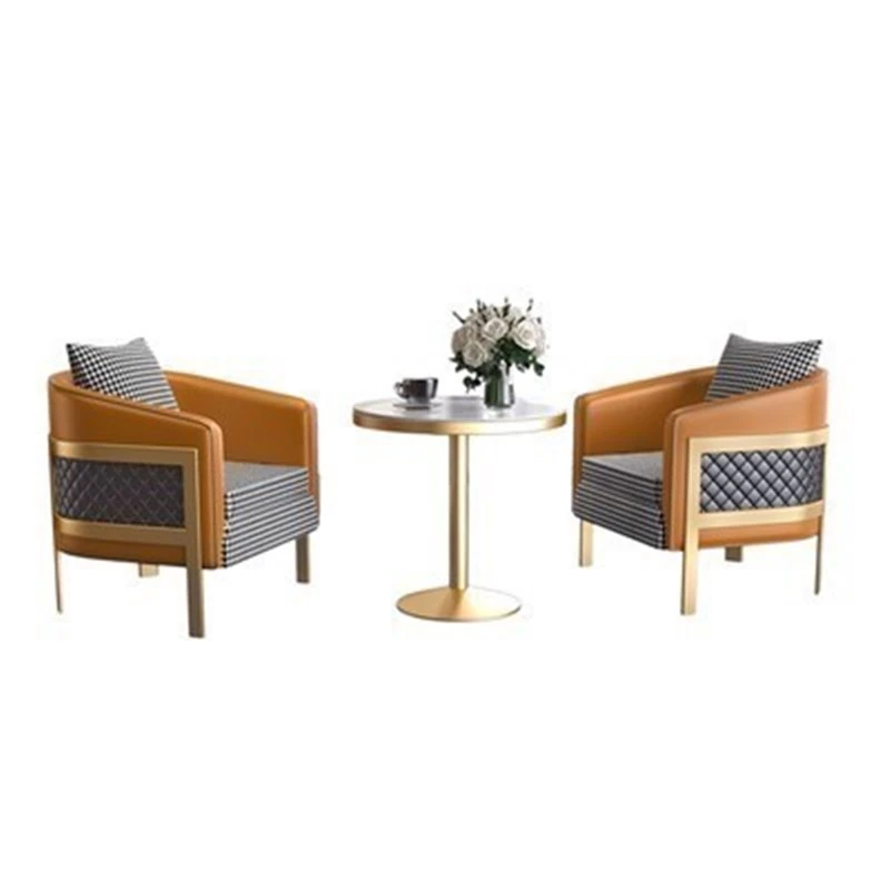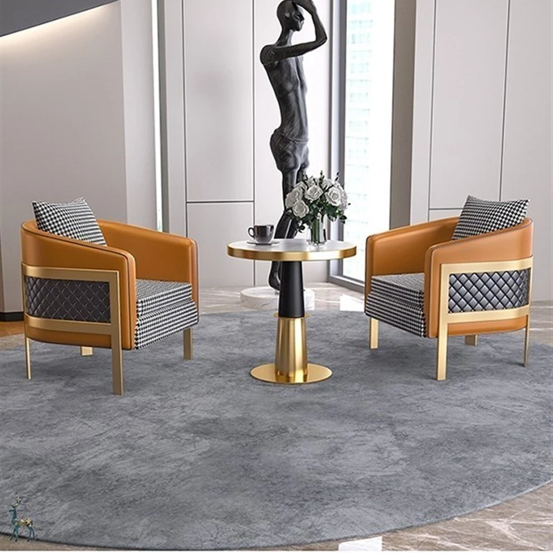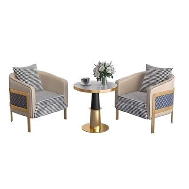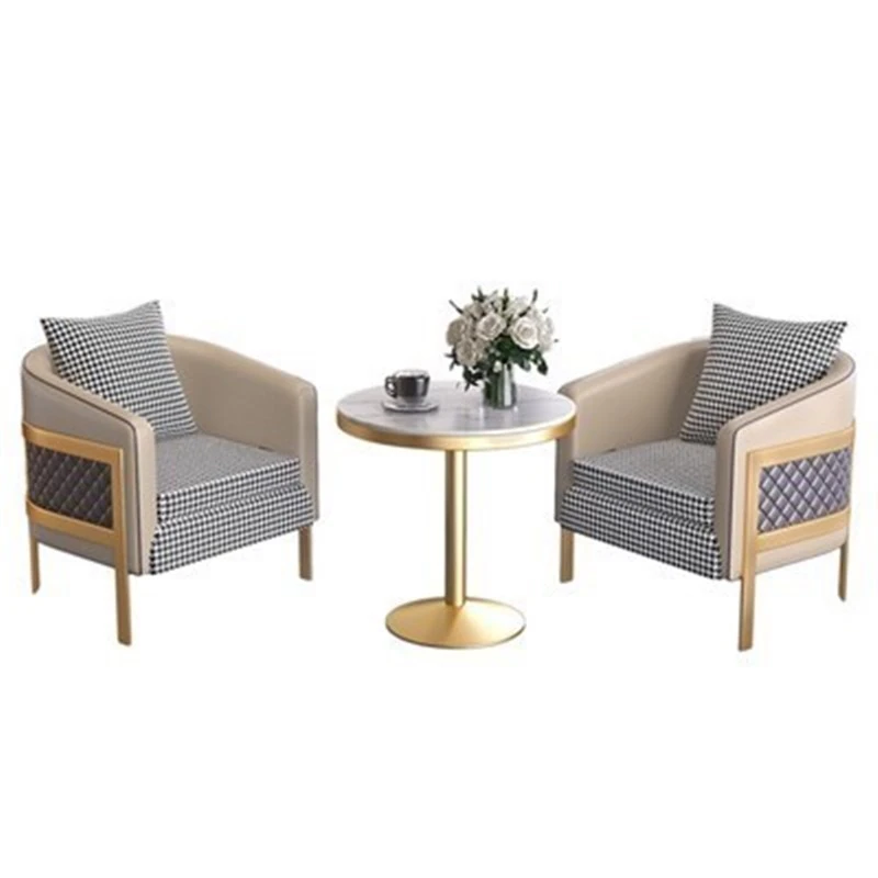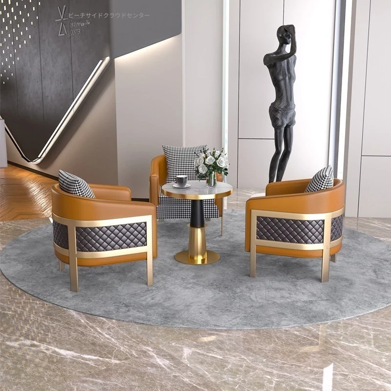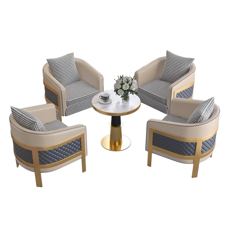 ラグジュアリーなモダン千鳥格デザインの一人掛けファブリックソファ - ホテル、カフェ、美容院に最適な接客&商談用レザーソファセット!快適さとスタイルを兼ね備えた理想の空間を演出します。
