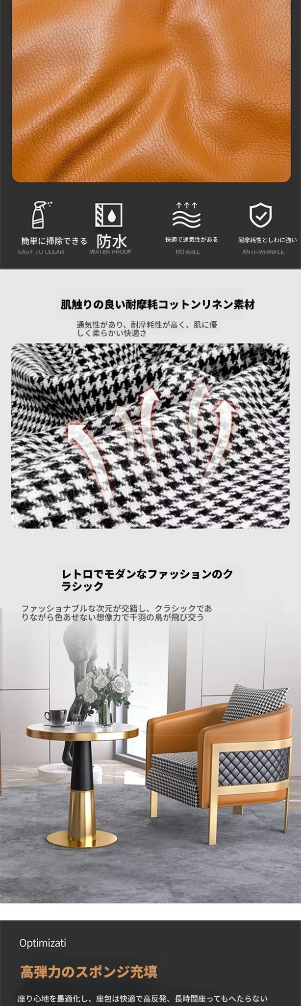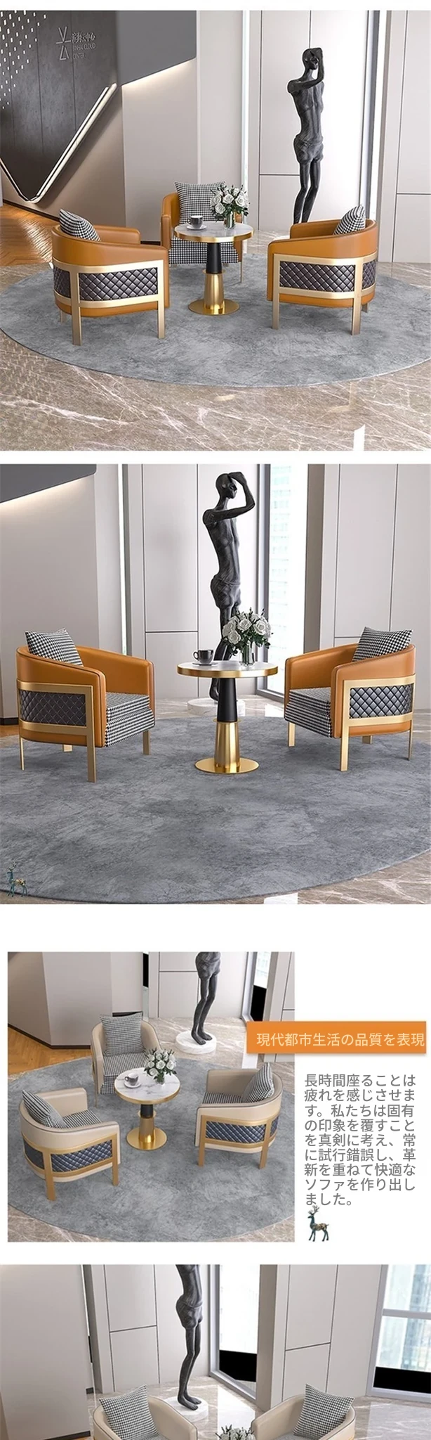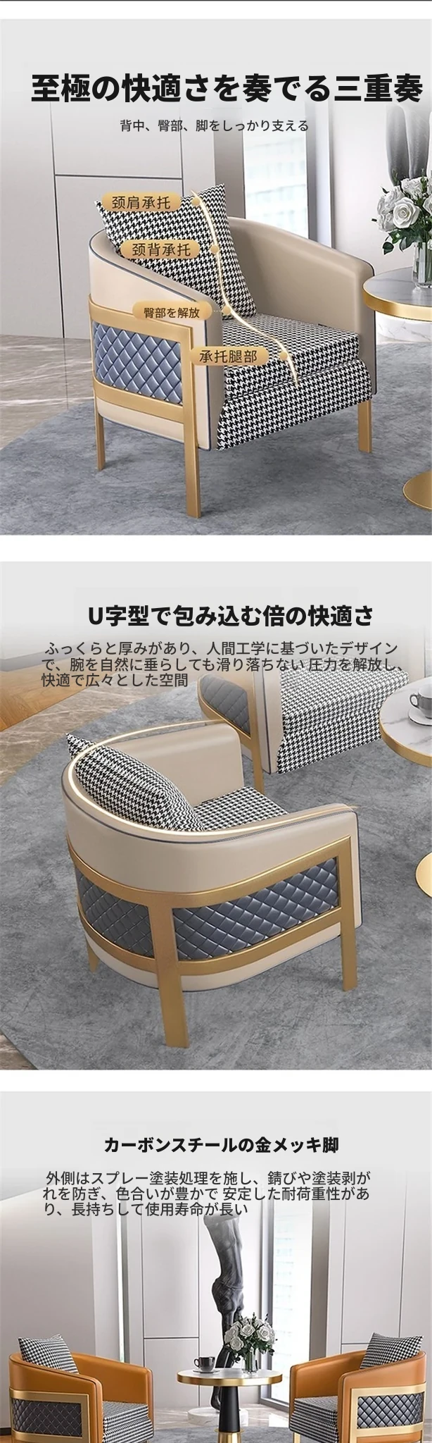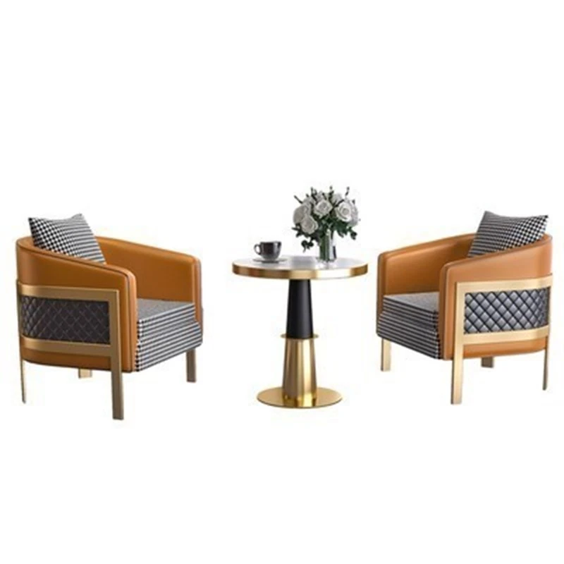 ラグジュアリーなモダン千鳥格デザインの一人掛けファブリックソファ - ホテル、カフェ、美容院に最適な接客&商談用レザーソファセット!快適さとスタイルを兼ね備えた理想の空間を演出します。